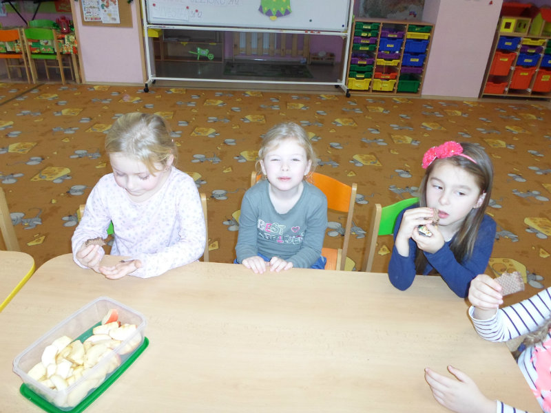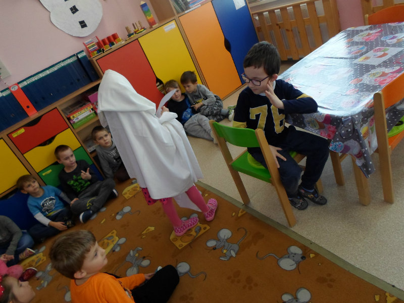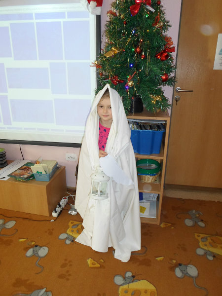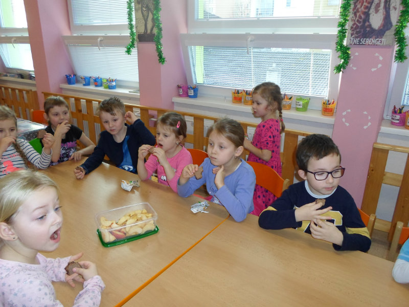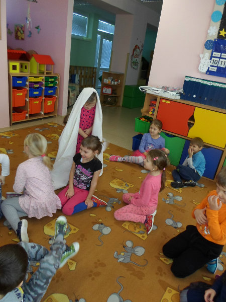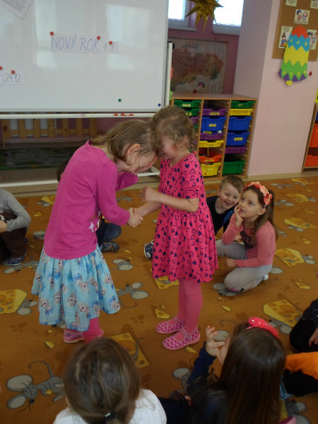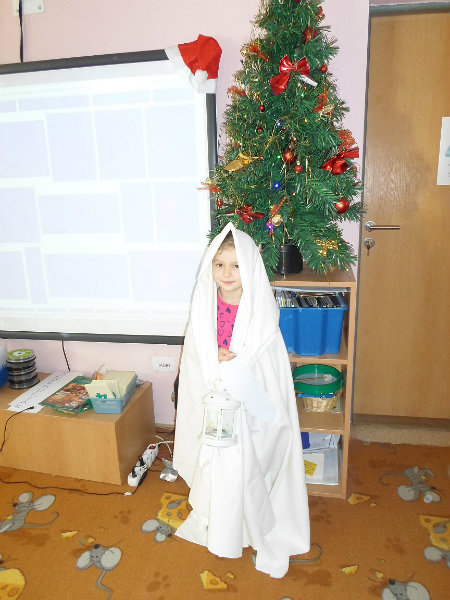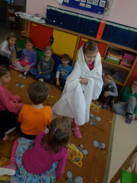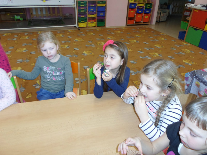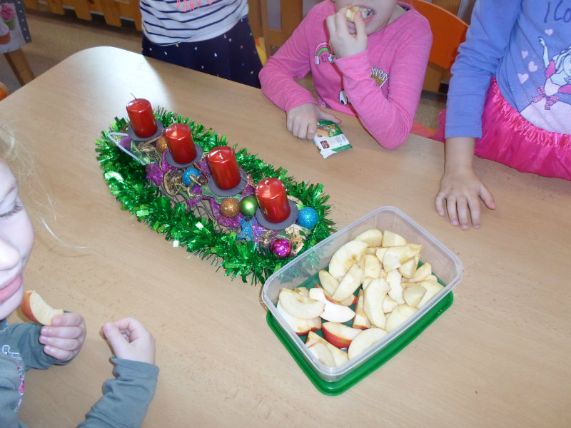 Tradíciu, ktorú ľudia dodržiavali na Luciu a s ktorou sme sa zoznámili na Gazdovskom dvore na Turej Lúke, sme si vyskúšali v MŠ, nakoľko máme v triede jednu Luciu. Zaspievali sme jej pieseň od Mira Jaroša Narodeniny, zagratulovali, zatancovali sme si s ňou. Spoločne sme si pripravili nepečený koláč. Na plech sme ukladali piškóty, na ne sme natierali jablkovú plnku a vrstvili. Vrch koláča sme ozdobili smotanou a horkou čokoládou. Potom sme spoločne hodovali a oslavovali Luckine meniny. Ona nám za odmenu, podľa tradície, zahalená do bielej plachty, povymetala všetky kúty v triede husím pierkom, aby vyhnala od nás zlé sily.