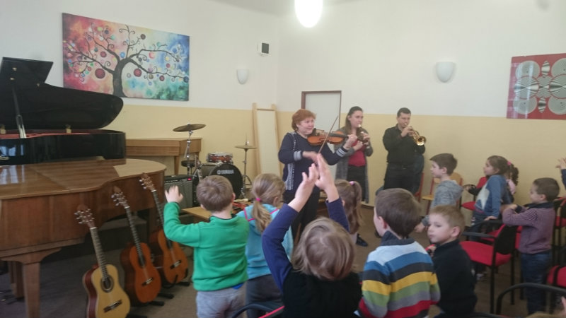V predškolskej 1. triede Usilovných včielok sa 7. marec 2018 niesol v znení hudby návštevou ZUŠ Stará Turá, kde mali deti možnosť poznávať rôzne hudobné nástroje,