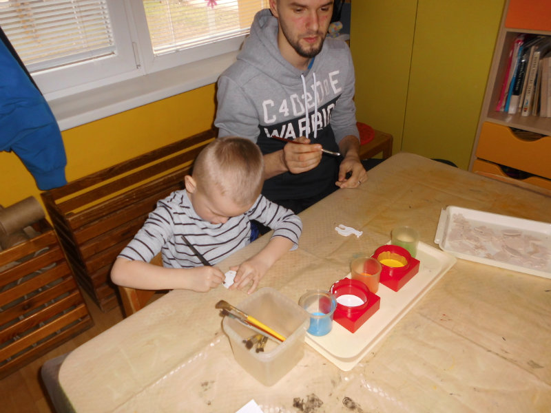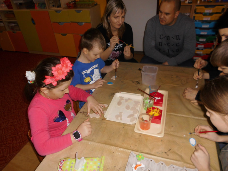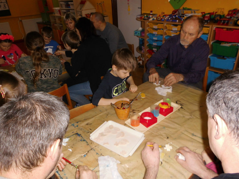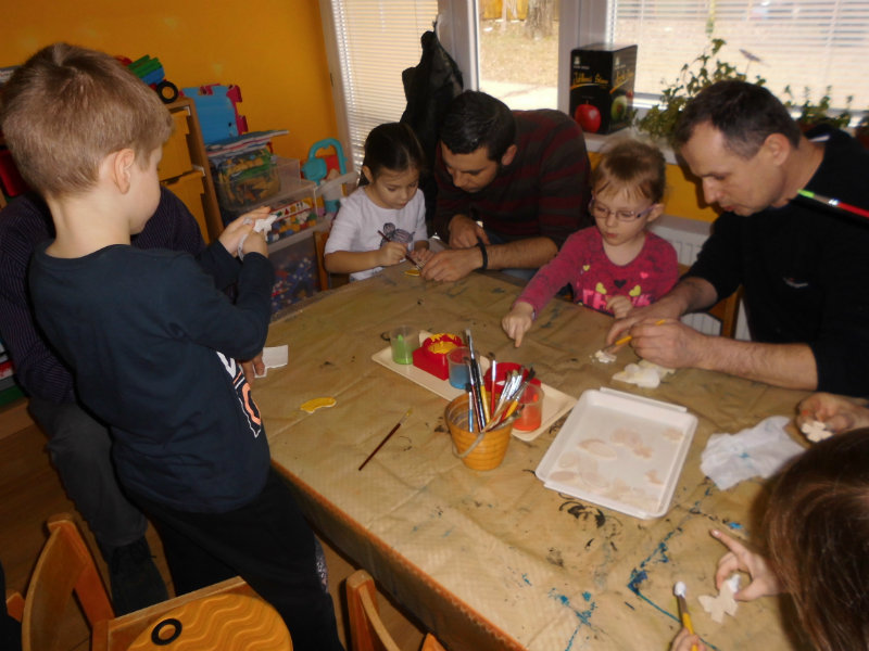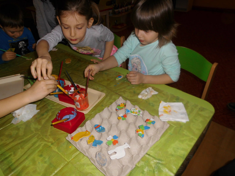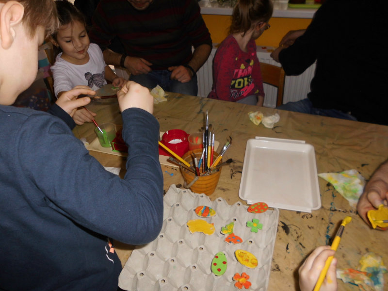 Počas týždňa deti s pani učiteľkami pripravili slané cesto a vykrajovali rôzne kvetinky, kuriatka, motýle, ktoré spolu s rodičmi namaľovali a dozdobili. Nakoniec pripevnili mašličku, a tak si mohli odniesť domov ozdôbky na skrášlenie izbičiek počas nadchádzajúcich sviatkov Veľkej noci.