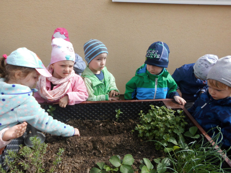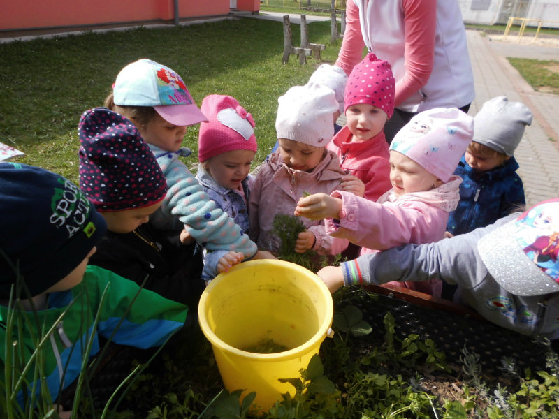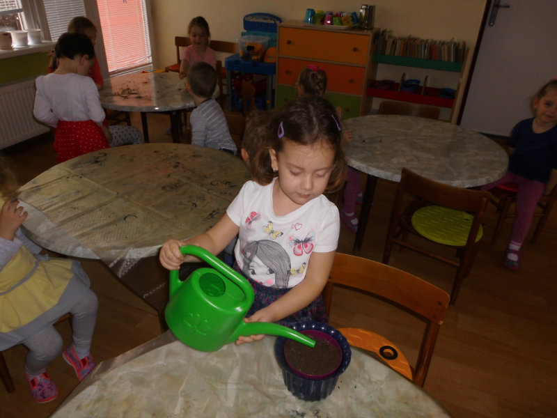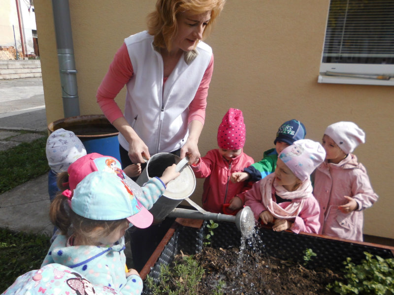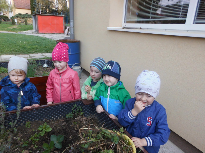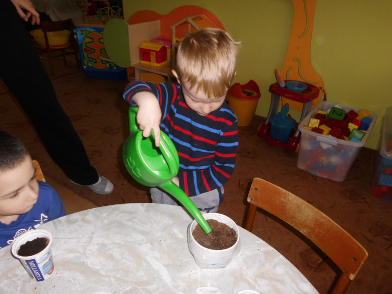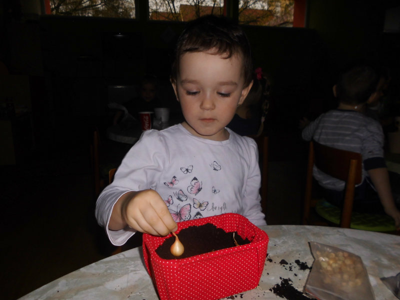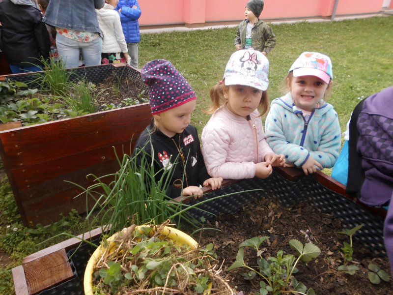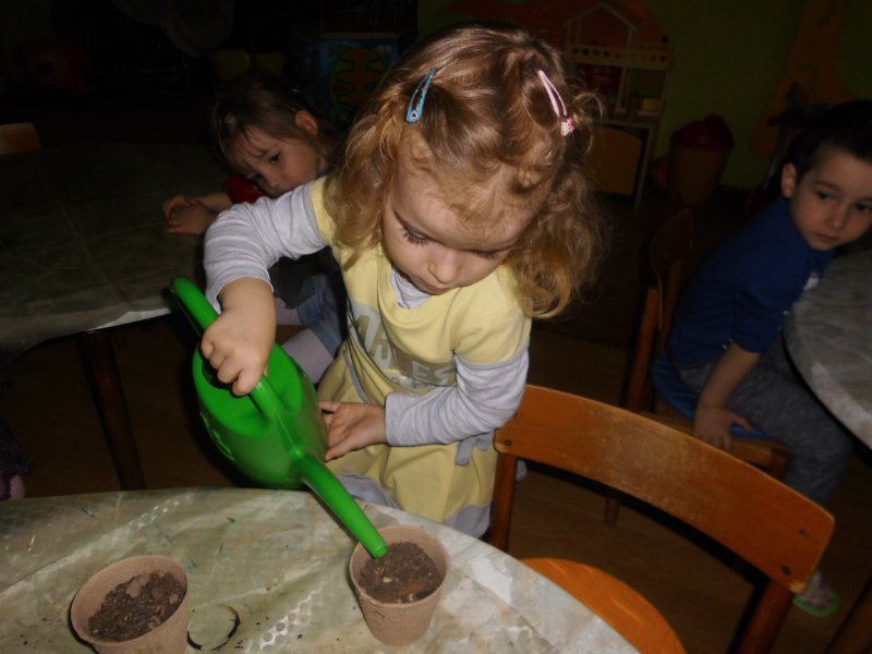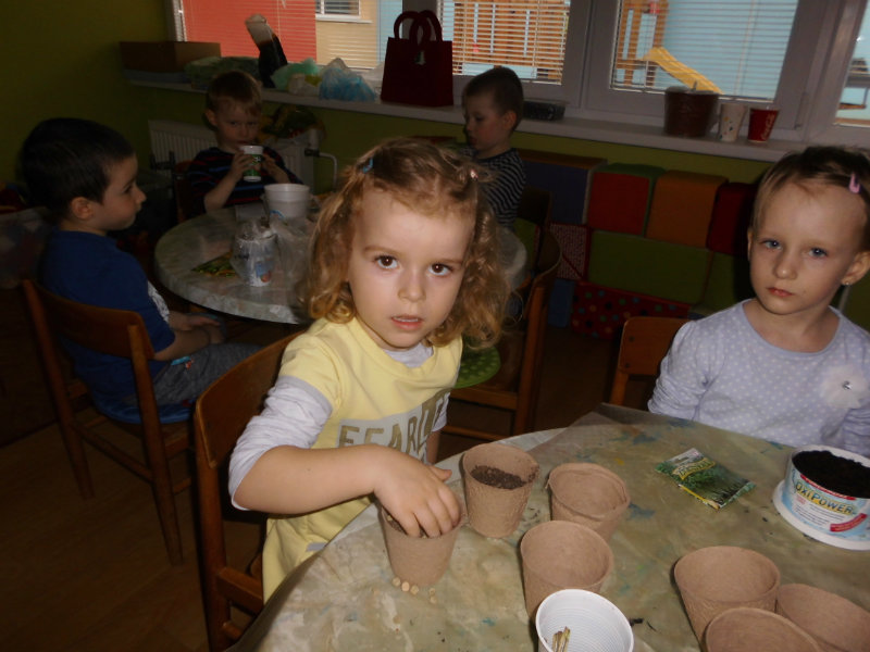 Prostredníctvom zážitkového učenia sme pôsobili na emocionálnu stránku detí pri sadení semienok a cibuliek prinesených z domova. Vyhrnuli sme si rukávy a stali sa na chvíľu malými záhradníkmi. Rastlinky denne sledujeme, polievame a tešíme sa ako nám rastú. Očistili sme si svoje políčko a zasadili samé zdravé dobroty : cibuľku, hrášok, pažítku a na potešenie sú pestrofarebné kvetinky. Už sa tešíme na úrodu.