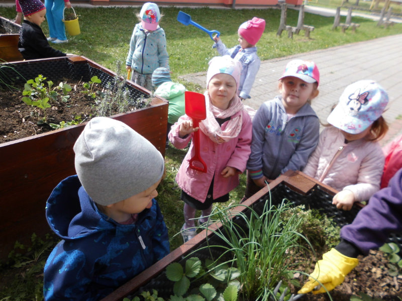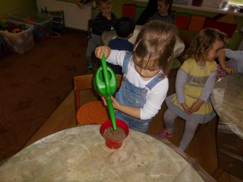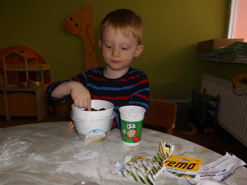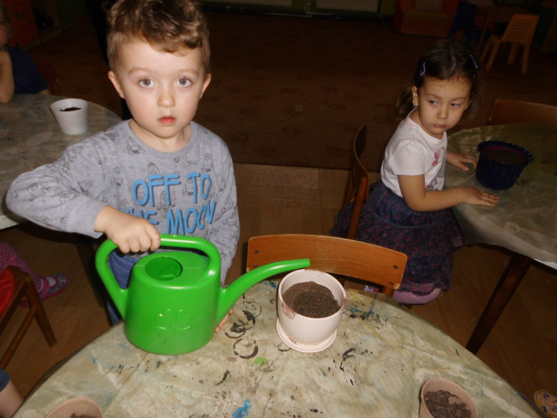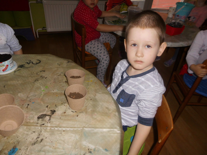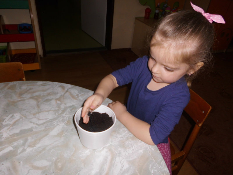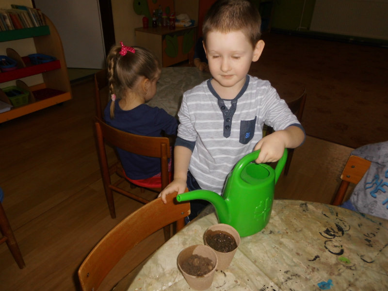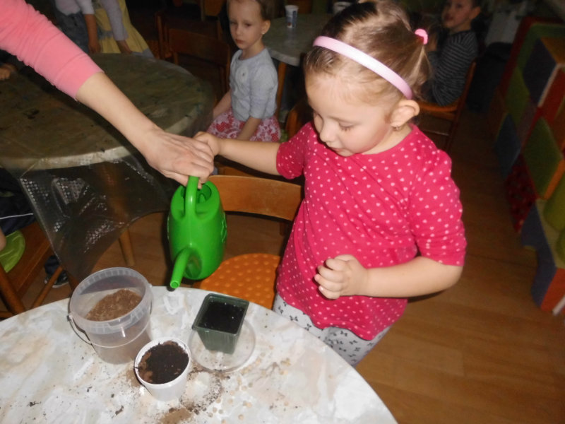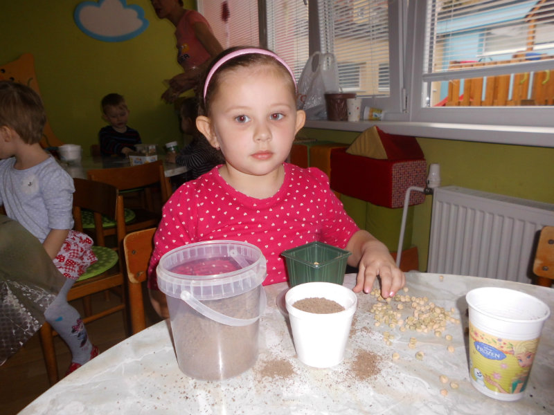Prostredníctvom zážitkového učenia sme pôsobili na emocionálnu stránku detí pri sadení semienok a cibuliek prinesených z domova. Vyhrnuli sme si rukávy a stali sa na chvíľu malými záhradníkmi. Rastlinky denne sledujeme, polievame a tešíme sa ako nám rastú. Očistili sme si svoje políčko a zasadili samé zdravé dobroty : cibuľku, hrášok, pažítku a na potešenie sú pestrofarebné kvetinky. Už sa tešíme na úrodu.