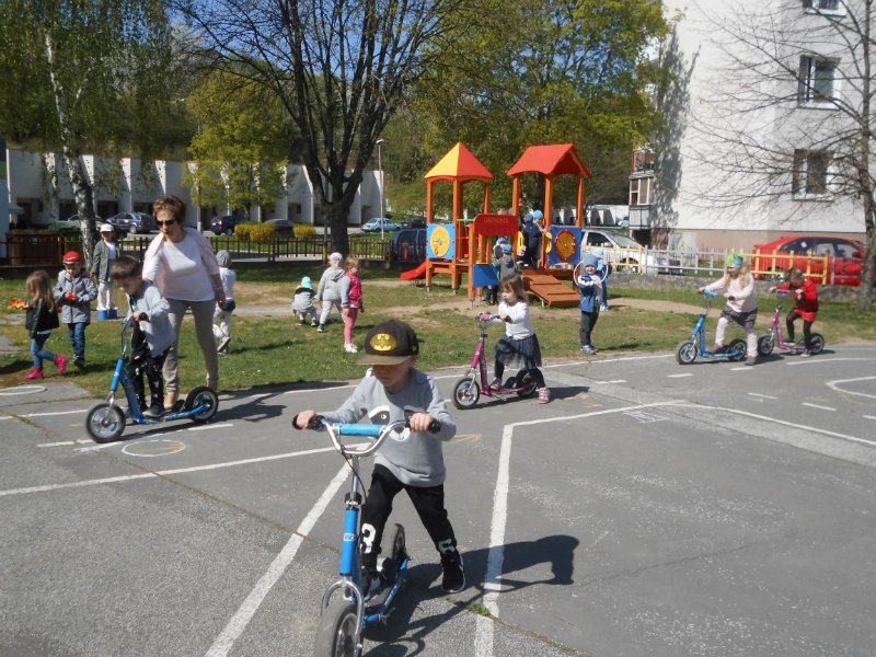 Počas týždňa 16.4. - 20.4.2018 sme si rozprávali o dopravných prostriedkoch, základných pravidlách na ceste i na chodníku. Navštívili sme dopravné ihrisko. Doma sme s oteckami a s mamičkami vyrobili dopravné prostriedky z rozličného odpadu. Ako sme sa s touto témou popasovali, môžete vidieť na fotkách.
