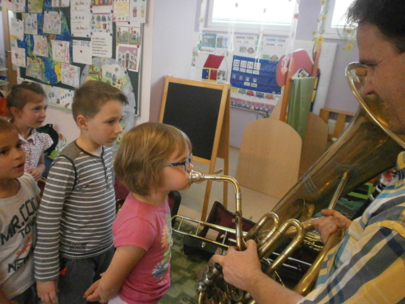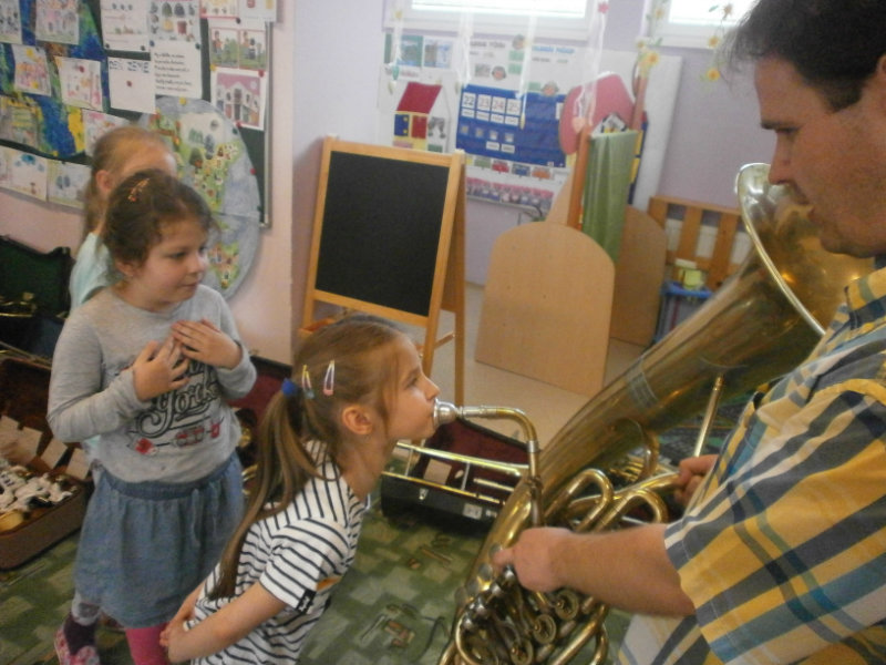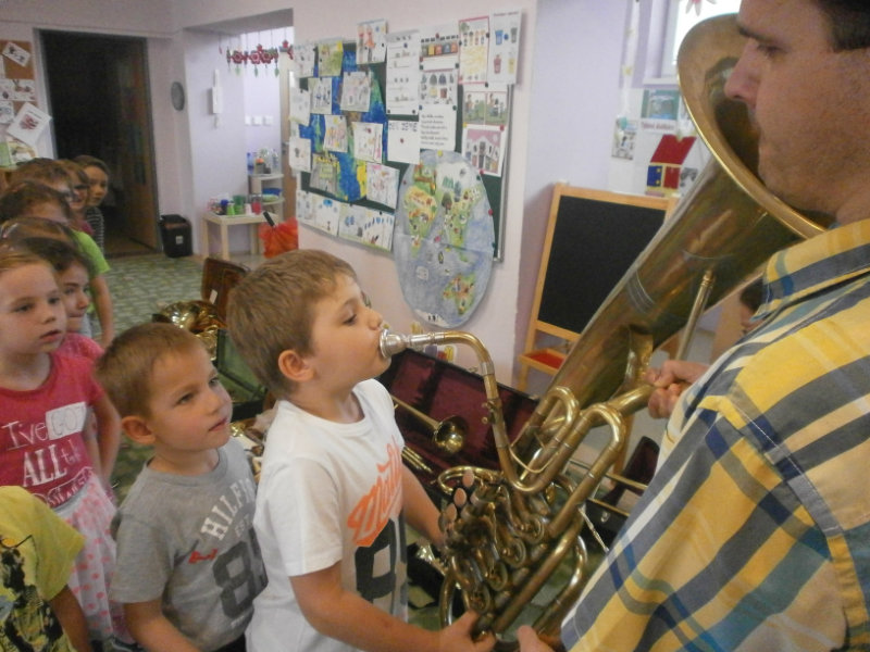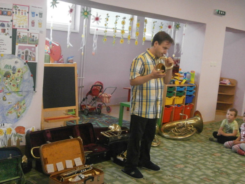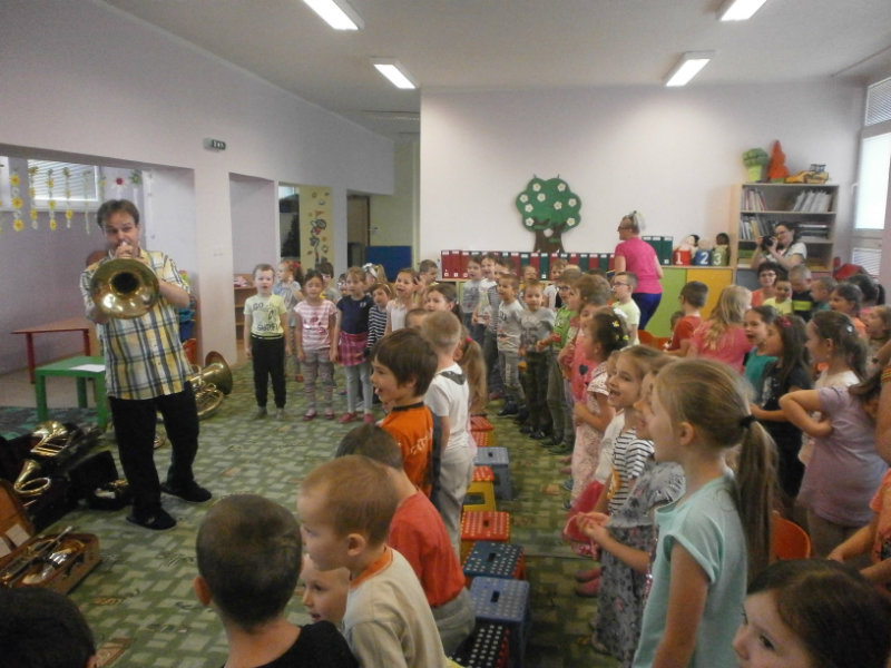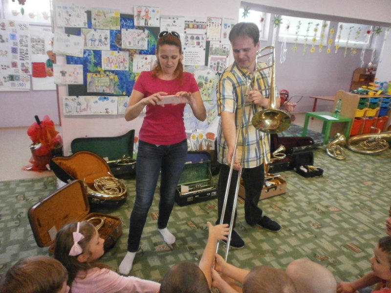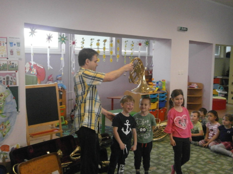 Hudobné dopoludnie s dychovými hudobnými nástrojmi v podaní hudobníka p. Romana Ondrejku bolo pre všetkých predškolákov dňa 25. apríla 2018 veľkým zážitkom.