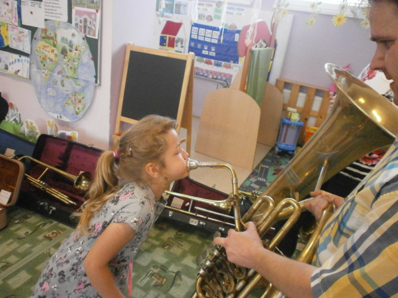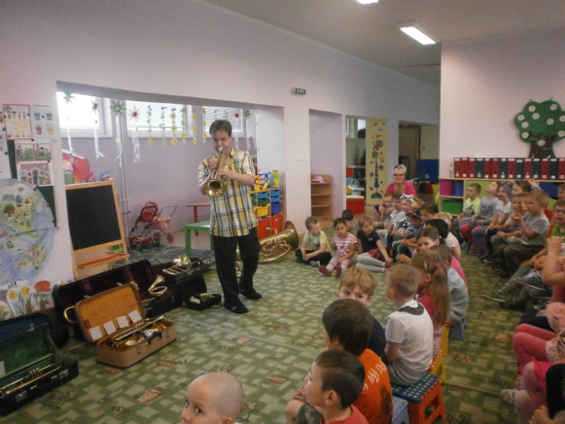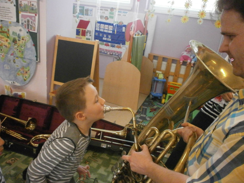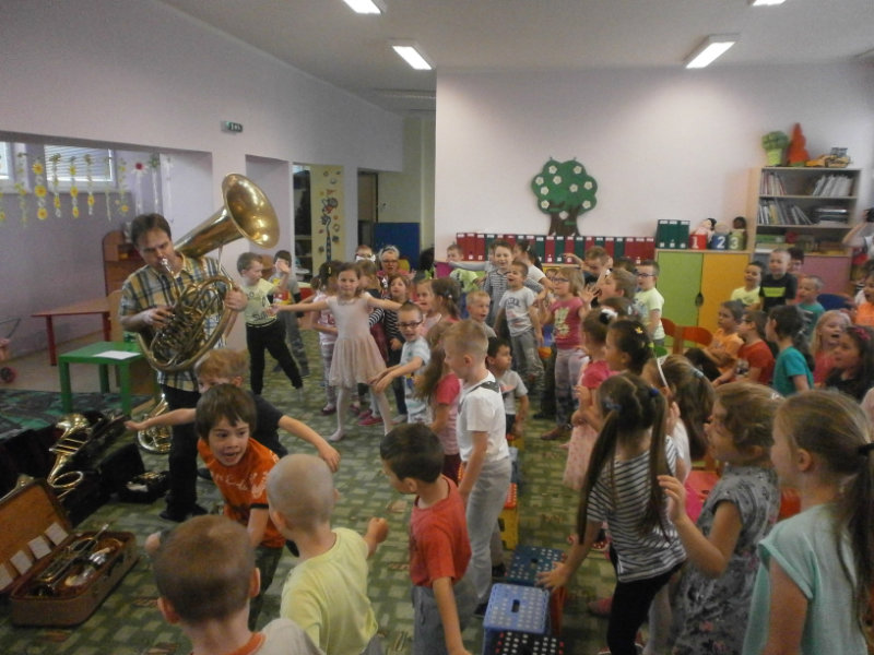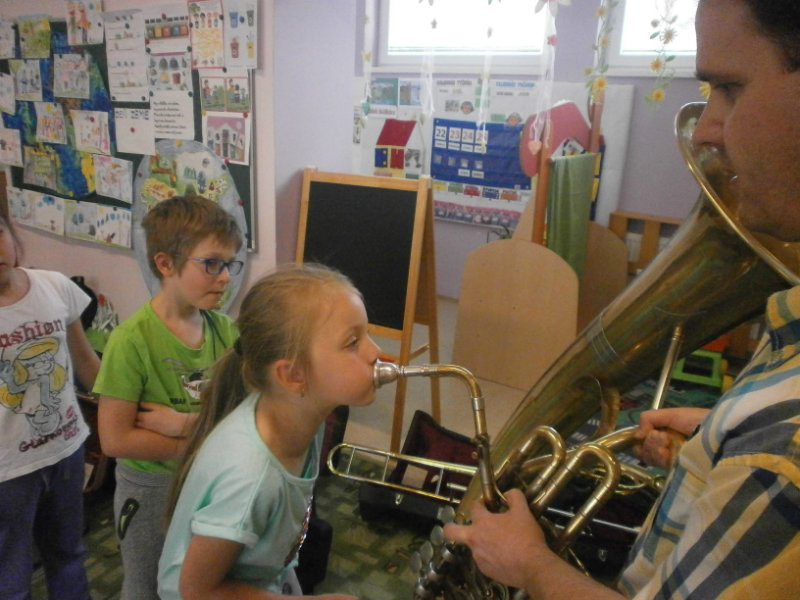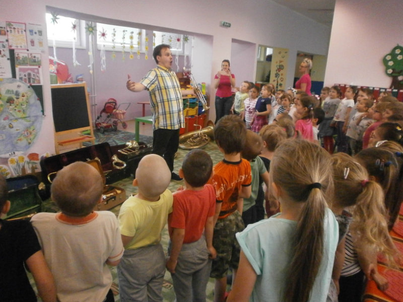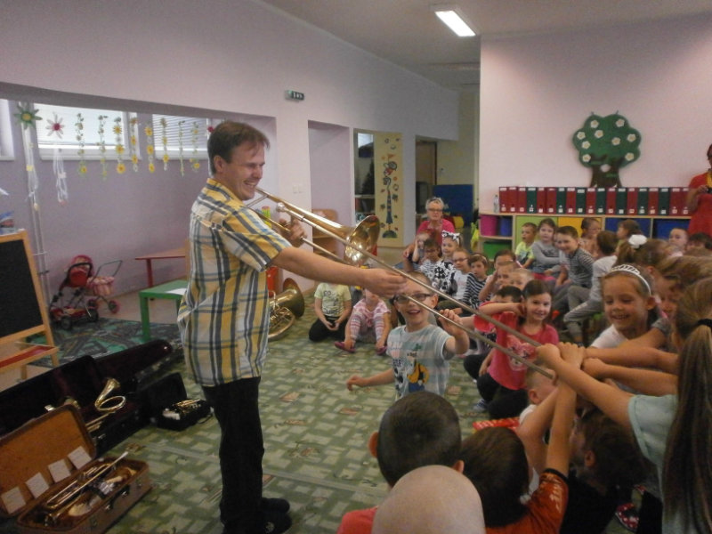 Hudobné dopoludnie s dychovými hudobnými nástrojmi v podaní hudobníka p. Romana Ondrejku bolo pre všetkých predškolákov dňa 25. apríla 2018 veľkým zážitkom.