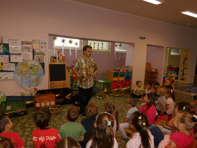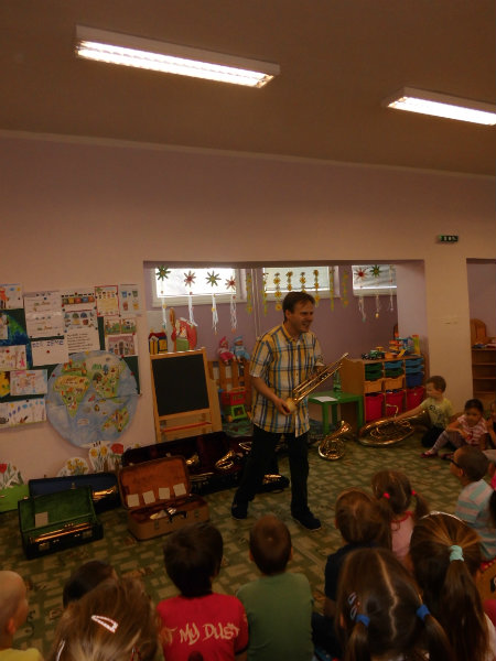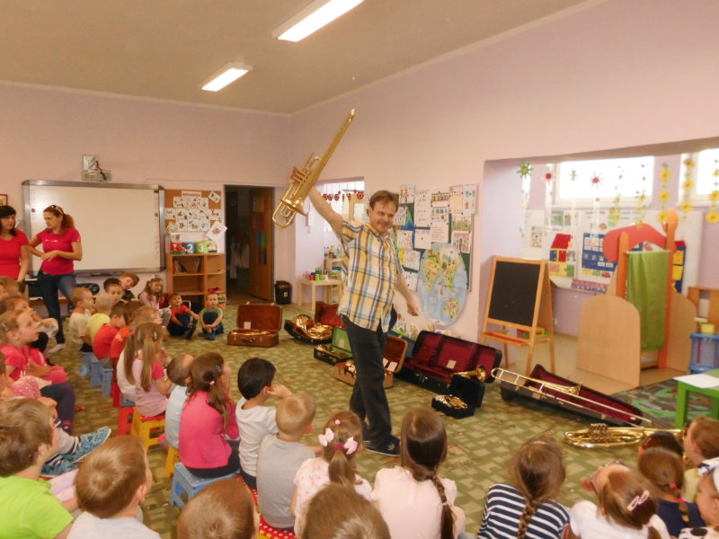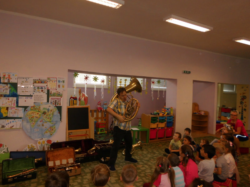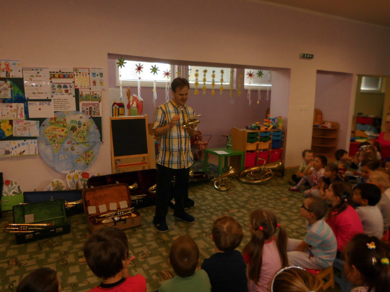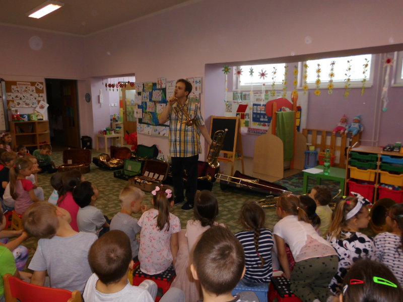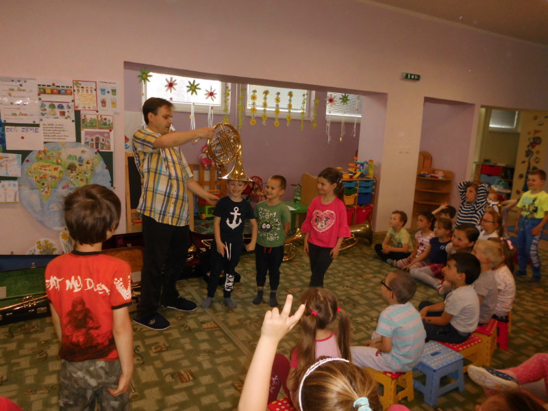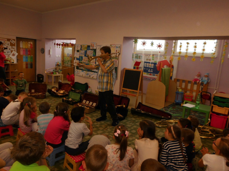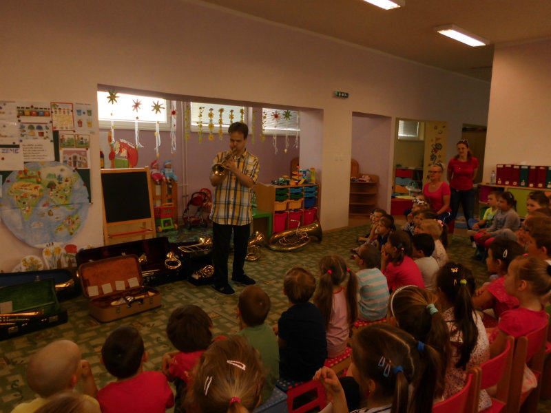 Medzi predškolákov zavítal 25.4.2018 umelec na dychové hudobné nástroje pán Ondrejka Účinkoval sám, ale veľmi zaujímavo a pútavo, s bohatým balíkom dychových hudobných nástrojov zo svojej zbierky. Deti mali možnosť ich nielen počuť, ale i ohmatať, ba dokonca si na nich aj zahrať. Vďaka za poučný výchovný koncert odznela veľkým detským aplauzom a poďakovanie od pani učiteľky.