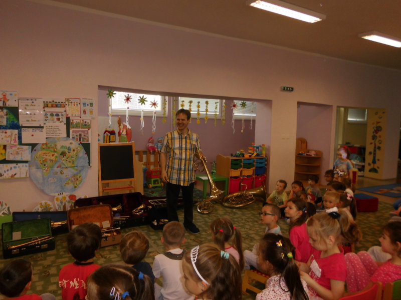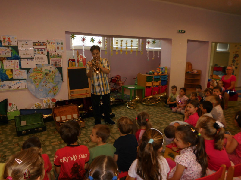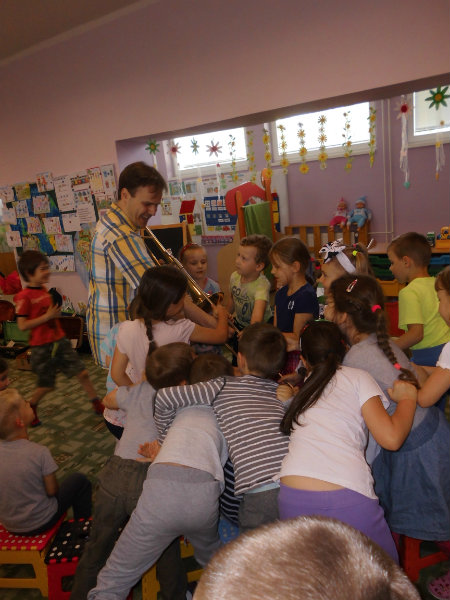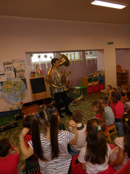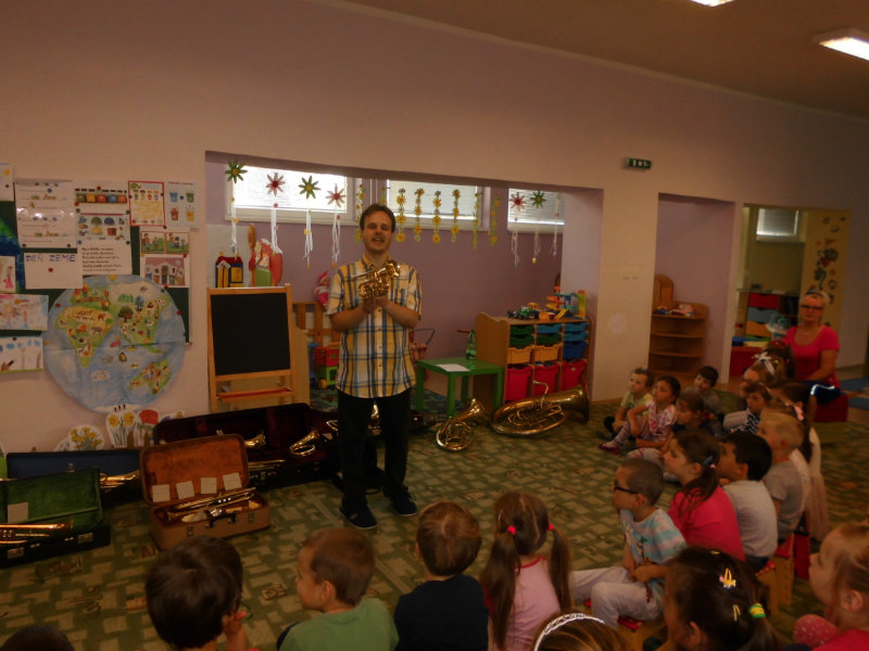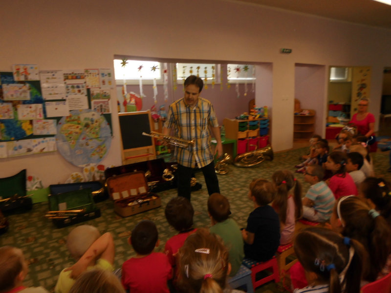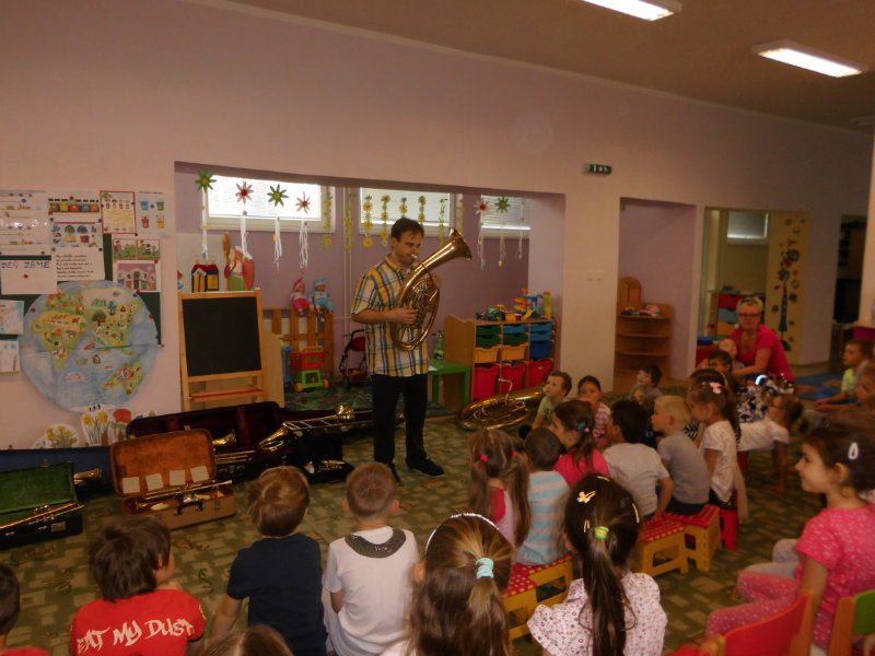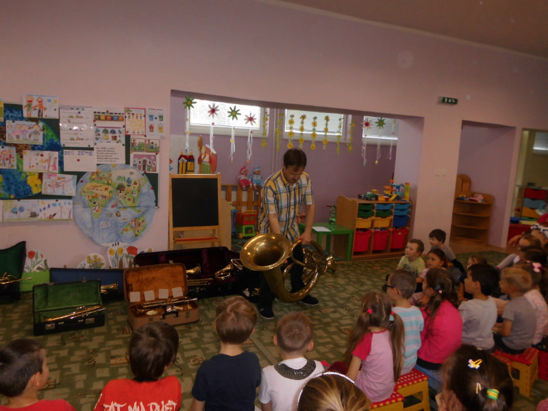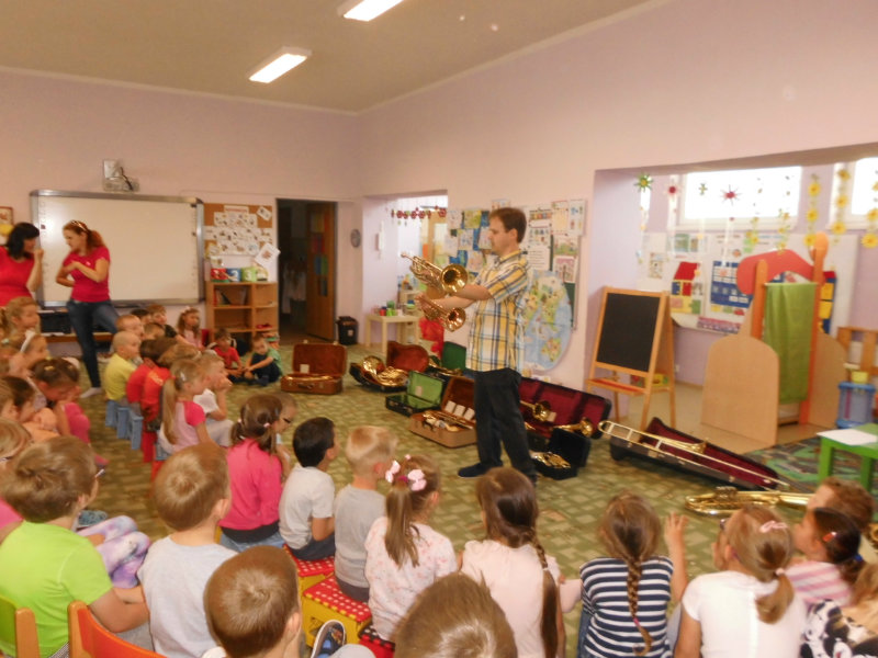 Medzi predškolákov zavítal 25.4.2018 umelec na dychové hudobné nástroje pán Ondrejka Účinkoval sám, ale veľmi zaujímavo a pútavo, s bohatým balíkom dychových hudobných nástrojov zo svojej zbierky. Deti mali možnosť ich nielen počuť, ale i ohmatať, ba dokonca si na nich aj zahrať. Vďaka za poučný výchovný koncert odznela veľkým detským aplauzom a poďakovanie od pani učiteľky.