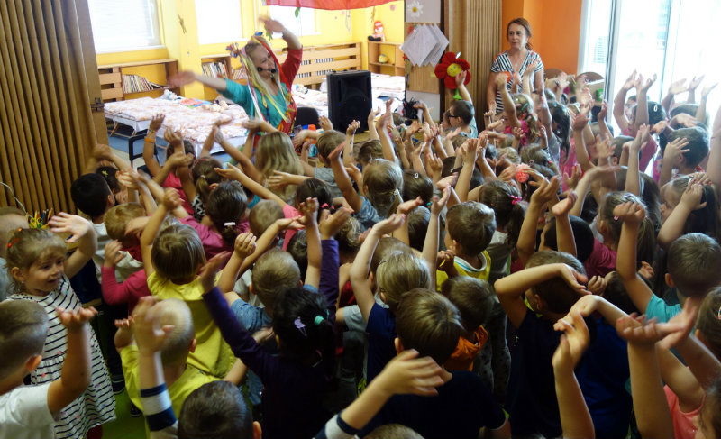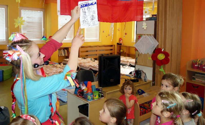 Speváčka Simsalala navštívila Materskú školu s programom "Ako nám beží čas", kde deti prostredníctvom hádaniek a piesní postupne previedla celým rokom - od "Zelenej Jari" až po "Bielu Zimu". Jej melodické a rytmické pesničky spojené s originálnymi tancami a hrou na rytmické nástroje sa deťom veľmi páčili, pretože boli zároveň súčasťou programu. A nielen hrou na hudobné nástroje sa deti zapojili do programu. Najviac sa zabávali pri jej veselých piesňach v spoločnom tanci so Simsalou.