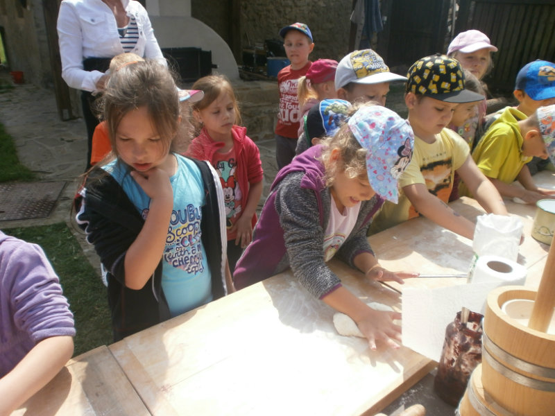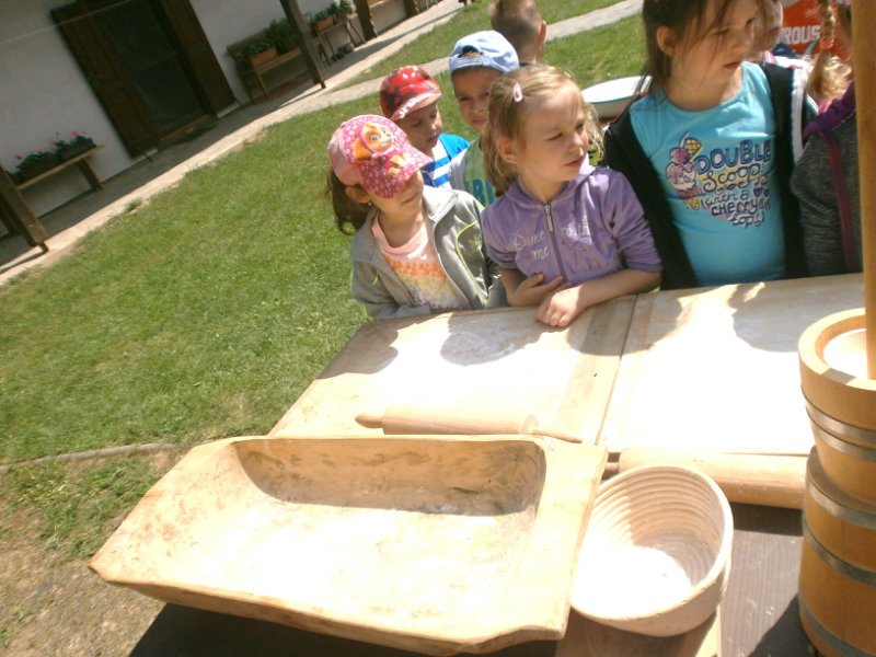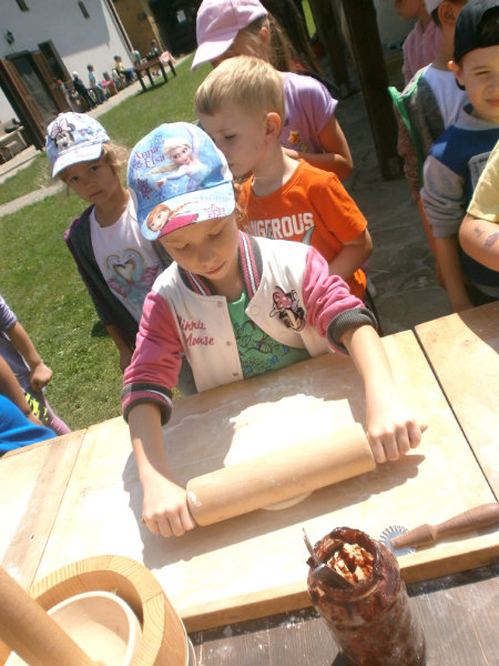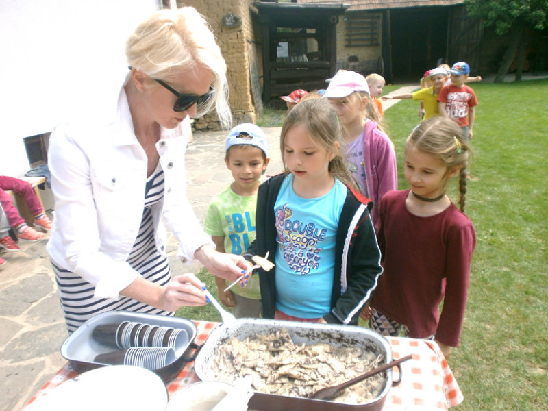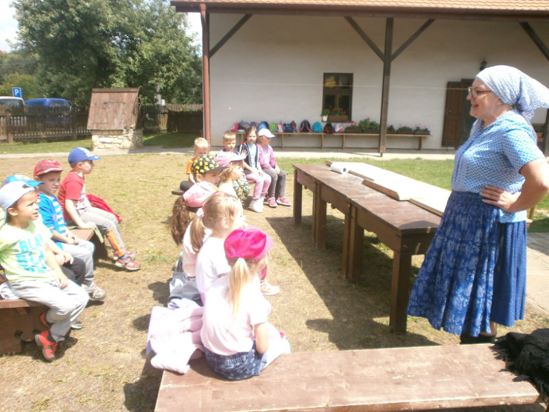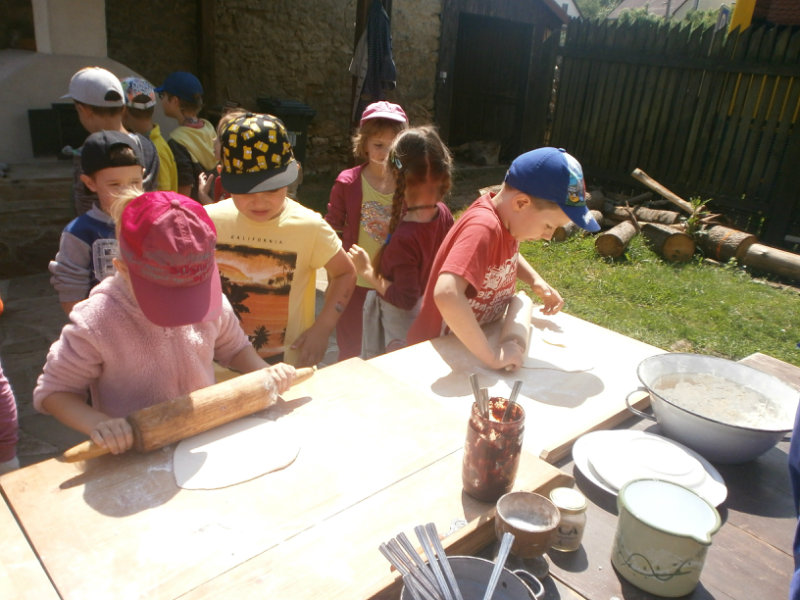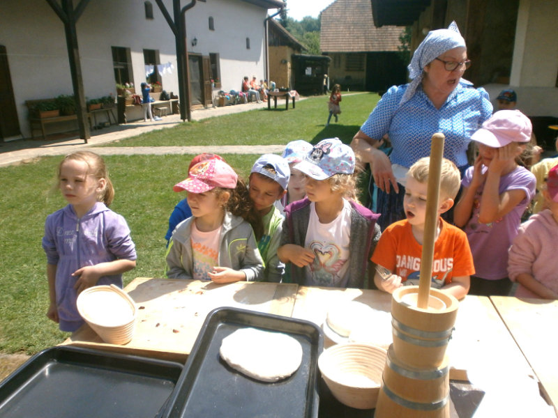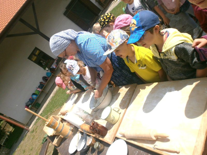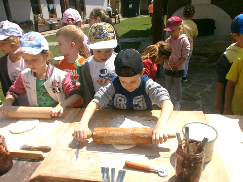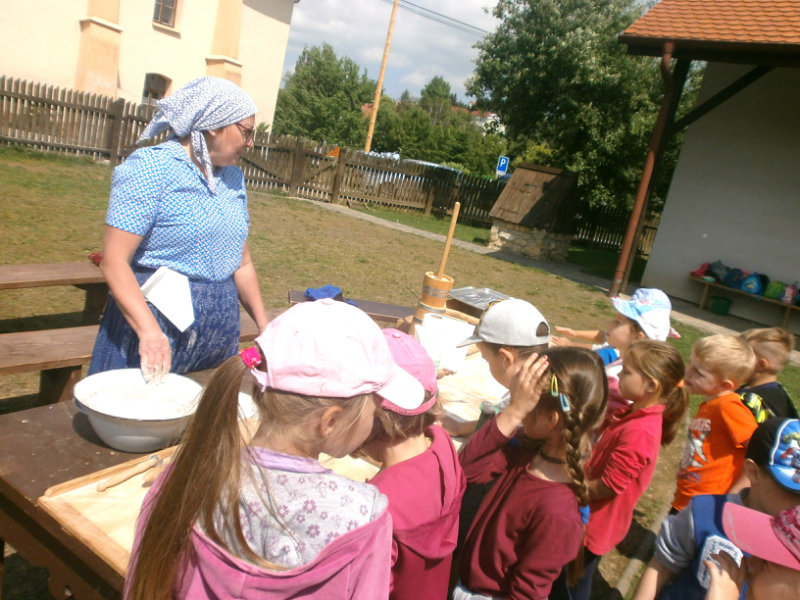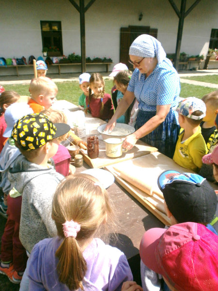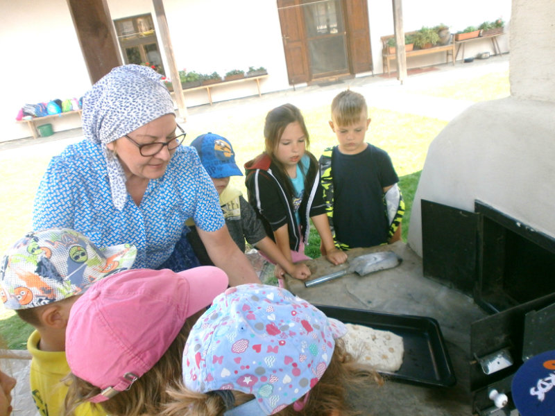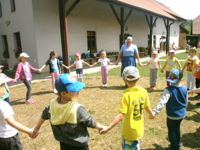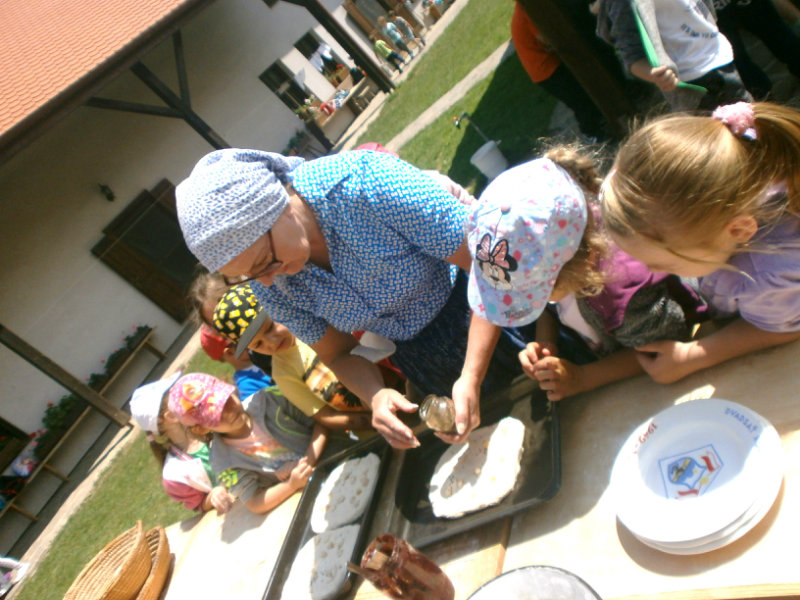 Gazdovský dvor v Turej Lúke sme s našimi predškolákmi Usilovnými včielkami navštívili 22.mája 2018 . Počasie nám prialo a na gazdovskom dvore nás privítala gazdiná s gazdom, ktorí pre nás pripravili zážitkové učenie s pracovnou a ochutnávacou časťou varením ragionálnych jedál, ako sú lekvárové perky, či domáci chlebík a slaninkové posúchy. Deti usilovne miesili, vaľkali, plnili dobrôtky lekvárom, sledovali, ako sa kedysi piekol v peci chlieb a samozrejme v závere si na svojich vlastnoručne pripravených jedlách pochutnali. A aby bolo veselo gazda nám zahral na harmonike známe ľudovky, na ktoré si za spevu s hudbou všetky deti spoločne s gazdinou zatancovali.