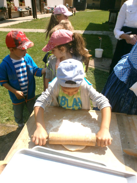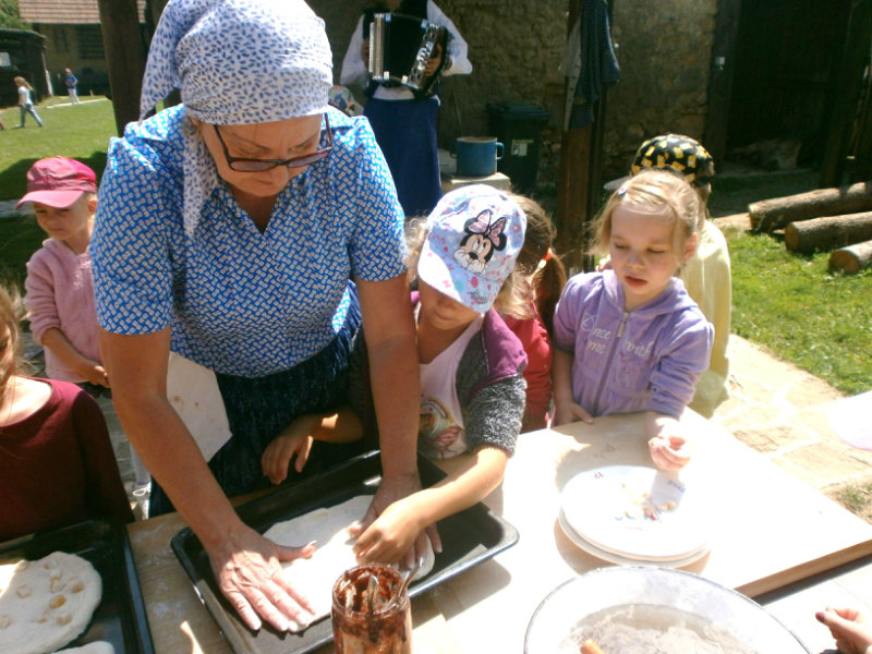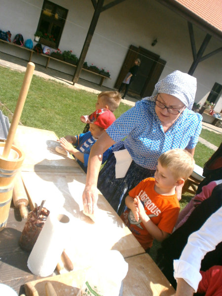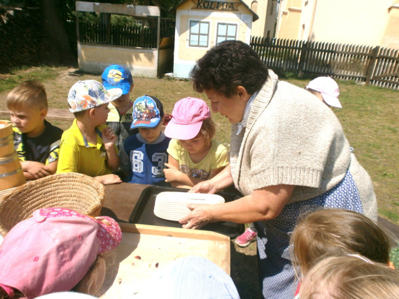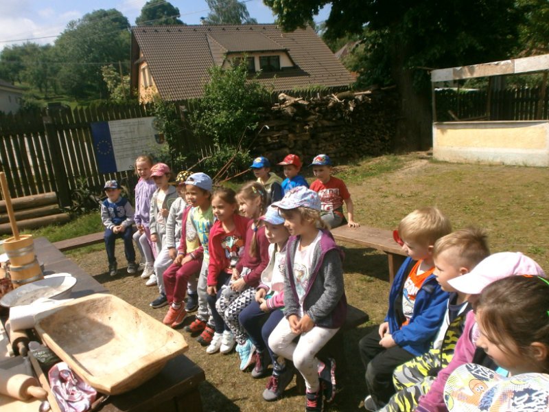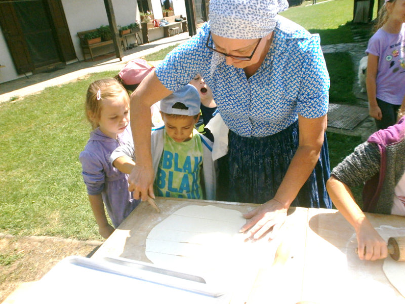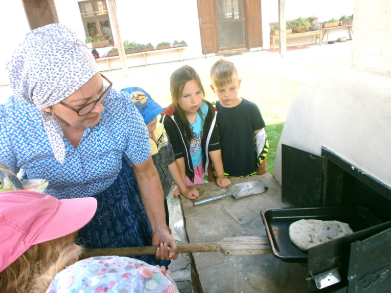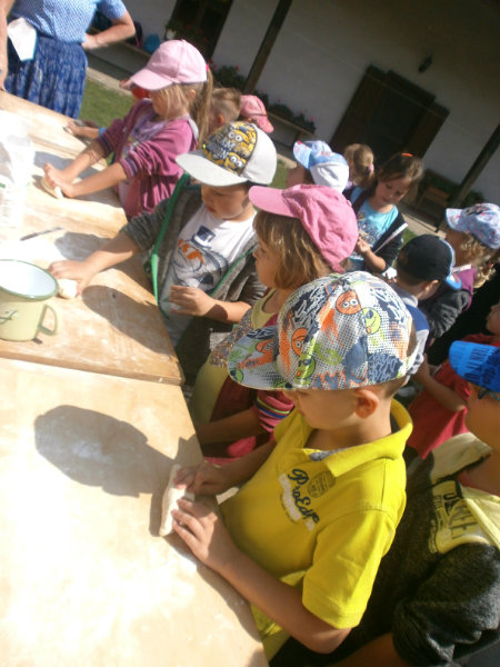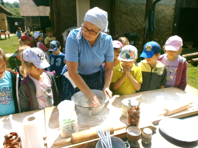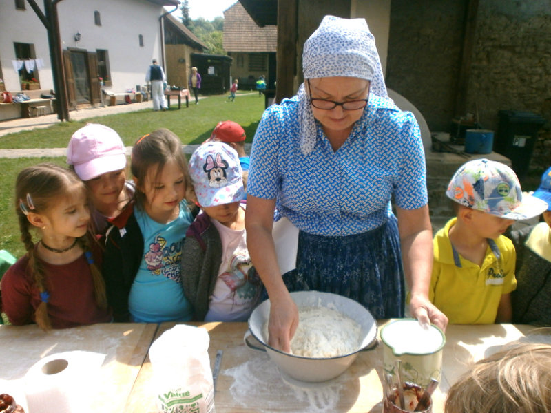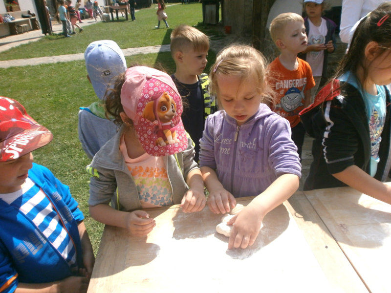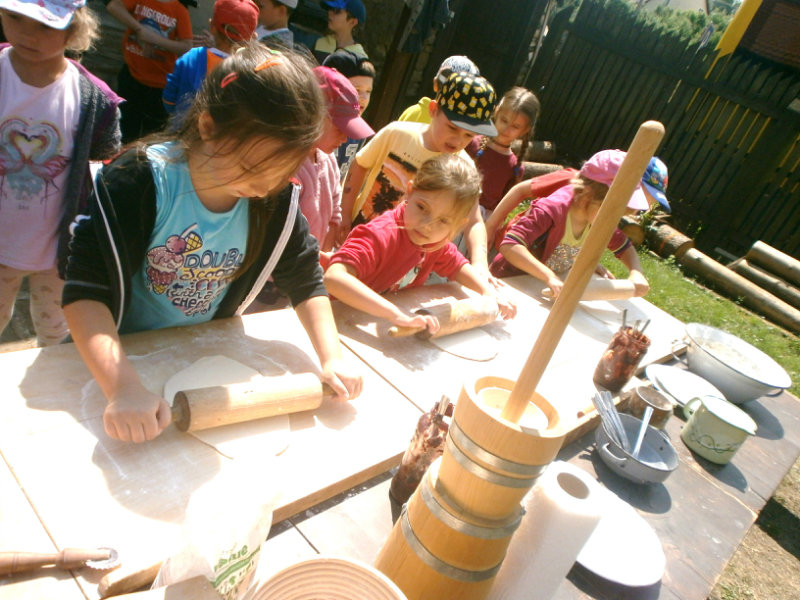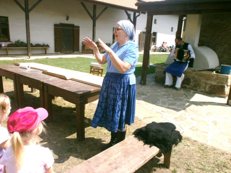 Gazdovský dvor v Turej Lúke sme s našimi predškolákmi Usilovnými včielkami navštívili 22.mája 2018 . Počasie nám prialo a na gazdovskom dvore nás privítala gazdiná s gazdom, ktorí pre nás pripravili zážitkové učenie s pracovnou a ochutnávacou časťou varením ragionálnych jedál, ako sú lekvárové perky, či domáci chlebík a slaninkové posúchy. Deti usilovne miesili, vaľkali, plnili dobrôtky lekvárom, sledovali, ako sa kedysi piekol v peci chlieb a samozrejme v závere si na svojich vlastnoručne pripravených jedlách pochutnali. A aby bolo veselo gazda nám zahral na harmonike známe ľudovky, na ktoré si za spevu s hudbou všetky deti spoločne s gazdinou zatancovali.