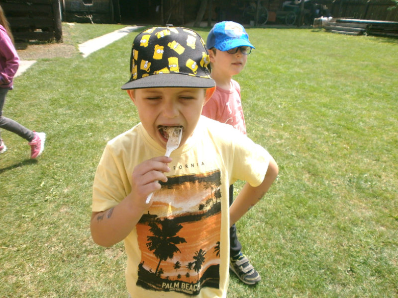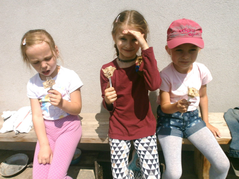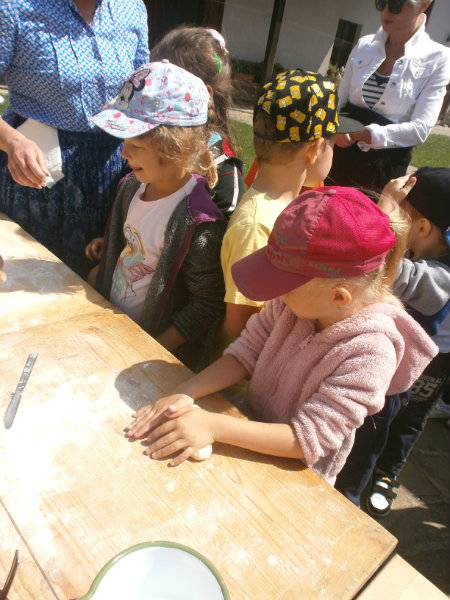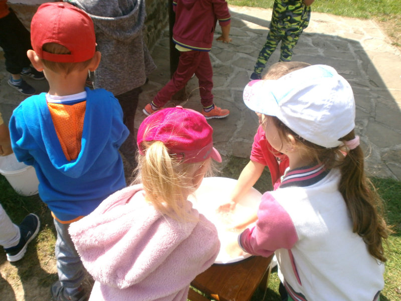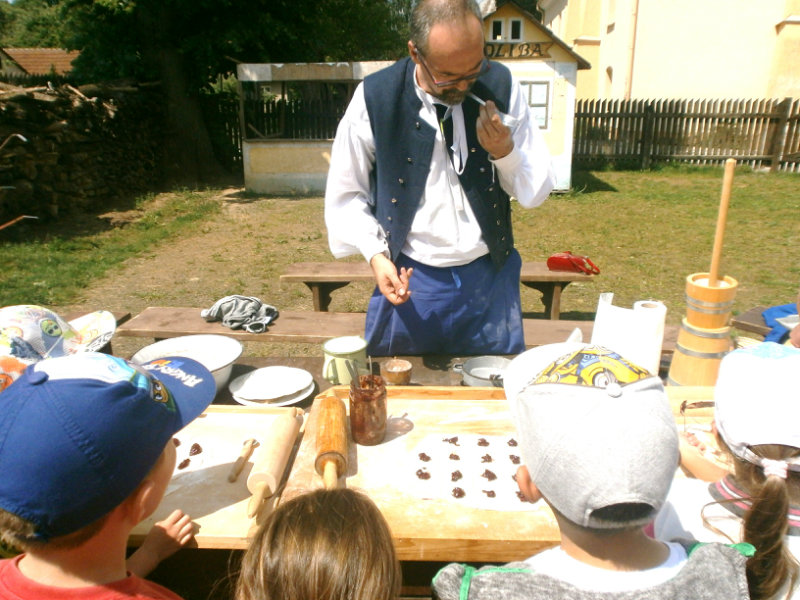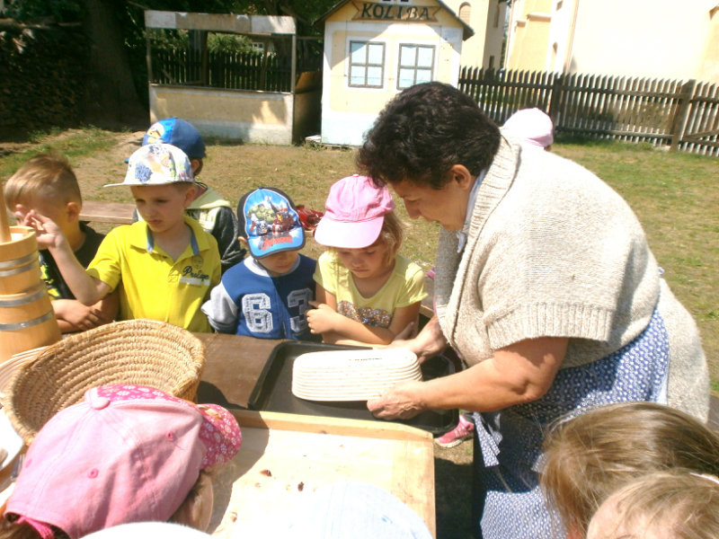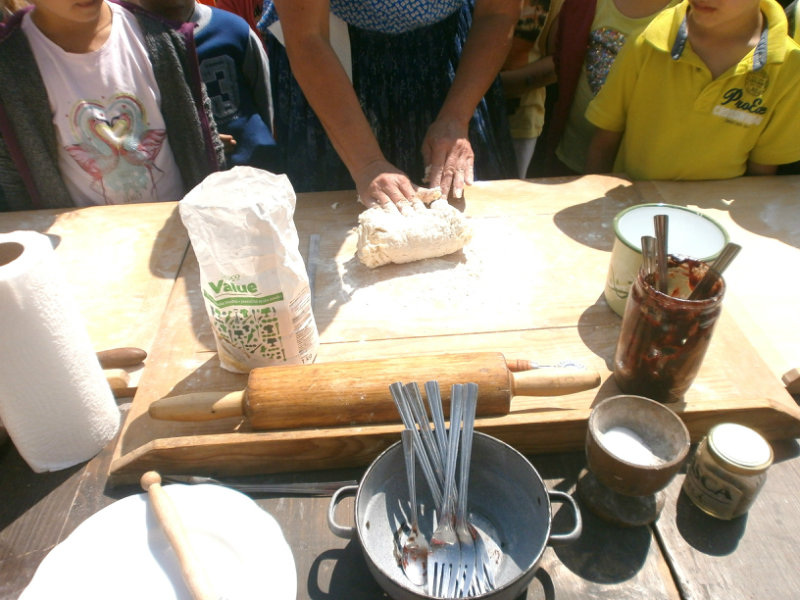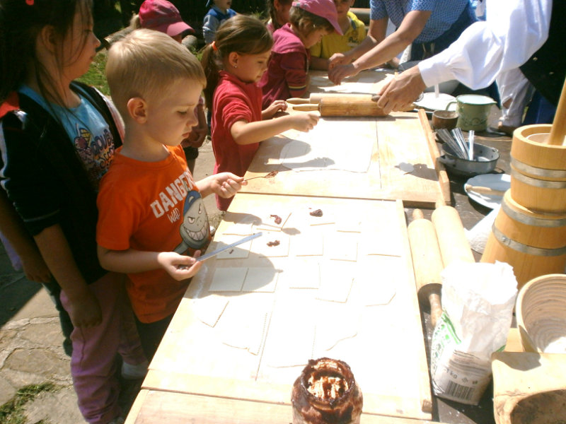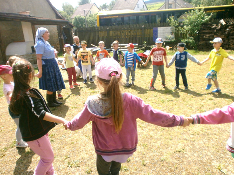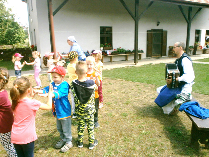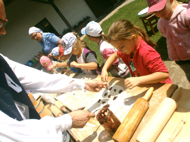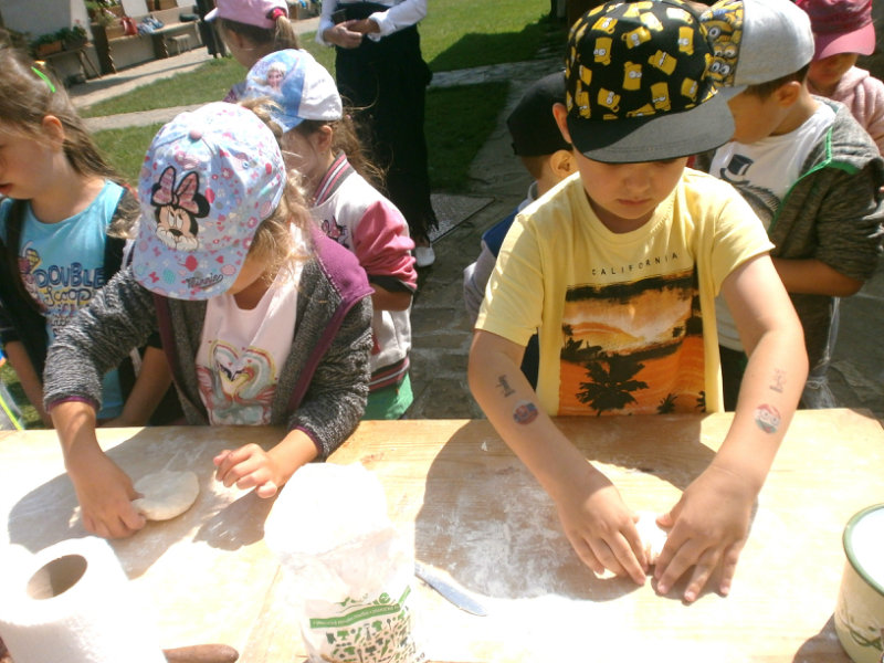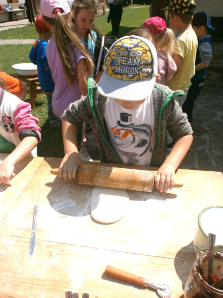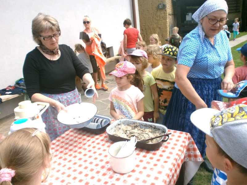 Gazdovský dvor v Turej Lúke sme s našimi predškolákmi Usilovnými včielkami navštívili 22.mája 2018 . Počasie nám prialo a na gazdovskom dvore nás privítala gazdiná s gazdom, ktorí pre nás pripravili zážitkové učenie s pracovnou a ochutnávacou časťou varením ragionálnych jedál, ako sú lekvárové perky, či domáci chlebík a slaninkové posúchy. Deti usilovne miesili, vaľkali, plnili dobrôtky lekvárom, sledovali, ako sa kedysi piekol v peci chlieb a samozrejme v závere si na svojich vlastnoručne pripravených jedlách pochutnali. A aby bolo veselo gazda nám zahral na harmonike známe ľudovky, na ktoré si za spevu s hudbou všetky deti spoločne s gazdinou zatancovali.