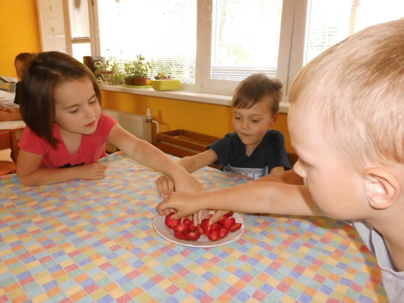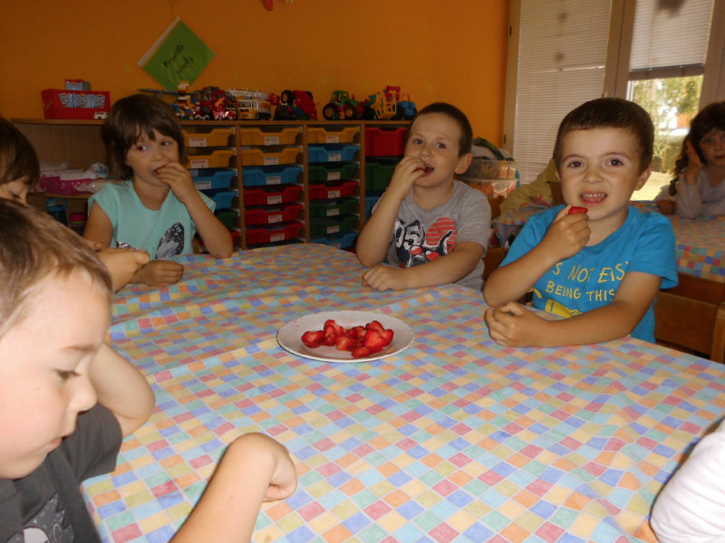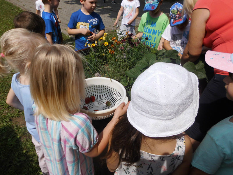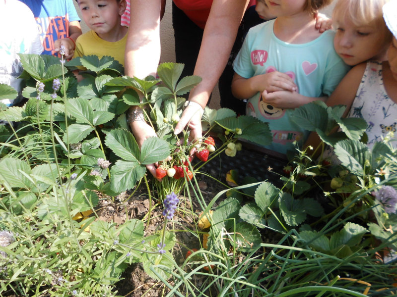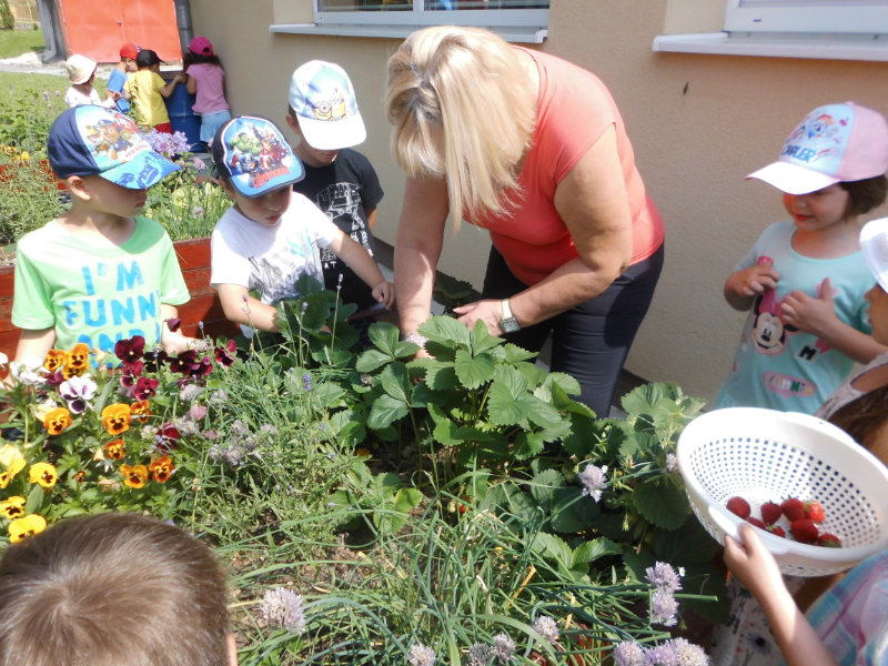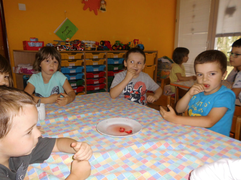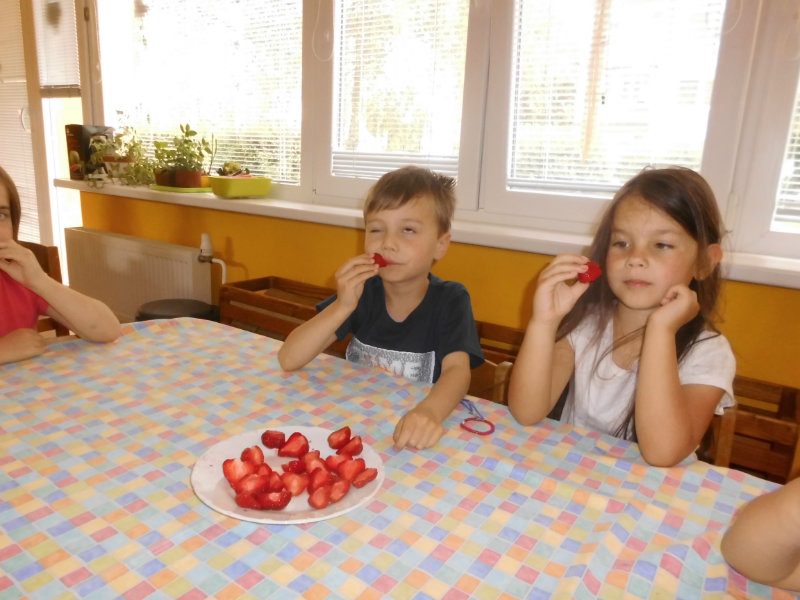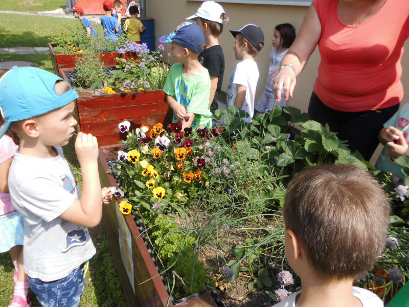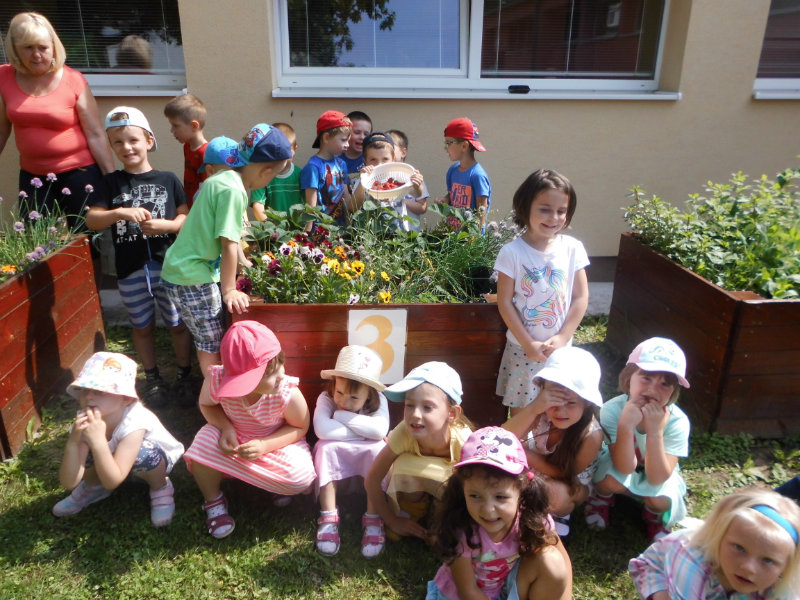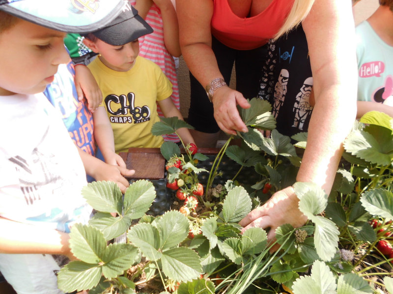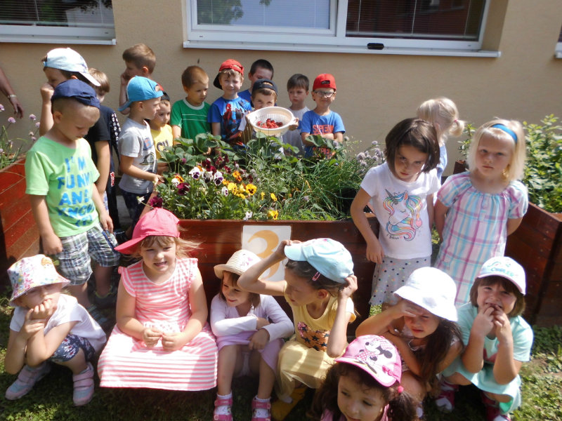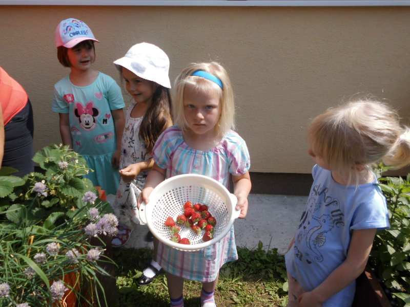 Starostlivosť o pridelený záhon priniesla svoje ovocie. Zakvitli farebné sirôtky, dozreli sladké jahody, vyrástla petržlenová vňať, cibuľky a tiež bylinky. Všetko, čo sa z našej malej záhradky dalo jesť sme ochutnali , no najviac nám chutili jahody.