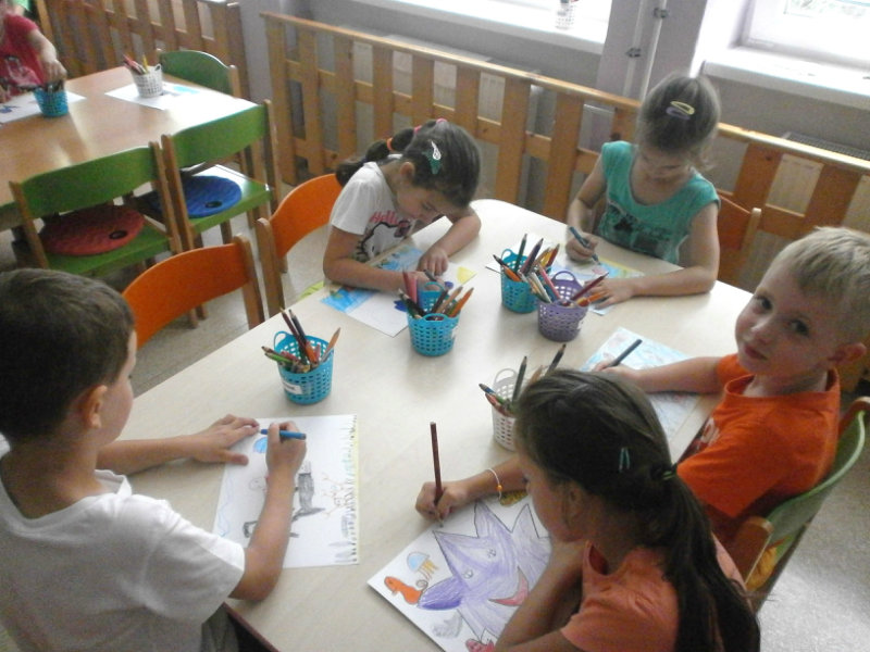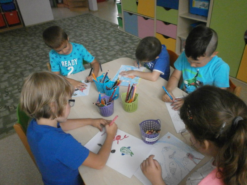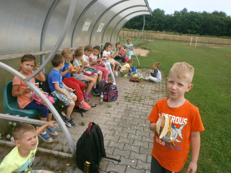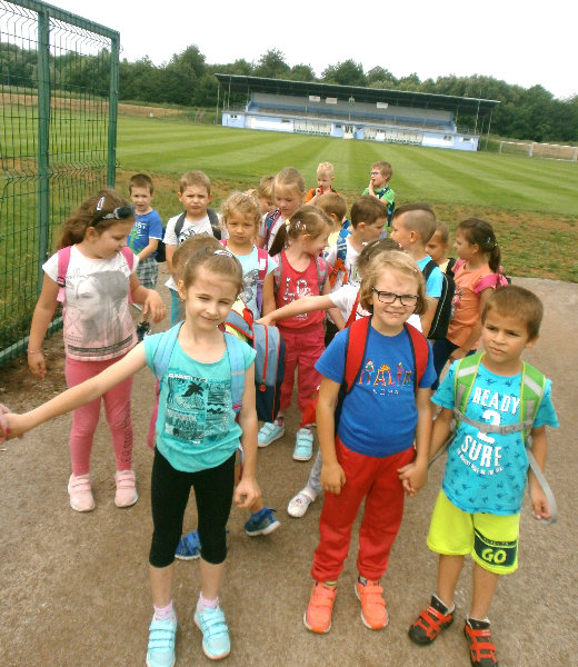 V mesiaci jún 2018 Usilovné včielky absolvovali ako správni predškoláci turistickú vychádzku . Pre hroziaci dážď sme si vybrali kratšiu trasu na štadión , kde sme si zašportovali a následne nabrali veľa nových síl formou občerstvenia, ktoré si deti priniesli v batôžkoch. Nezabudli sme preskúmať turanský potok, ktorý sme pozorovali zblízka, pretože témou týždňa bola Voda a jej tajomstvá. Po vydarenej turistike deti s veľkým záujmom kreslili vodný svet. Z hotových prác sme si vytvorili výtvarnú galériu v priestoroch našej šatne.