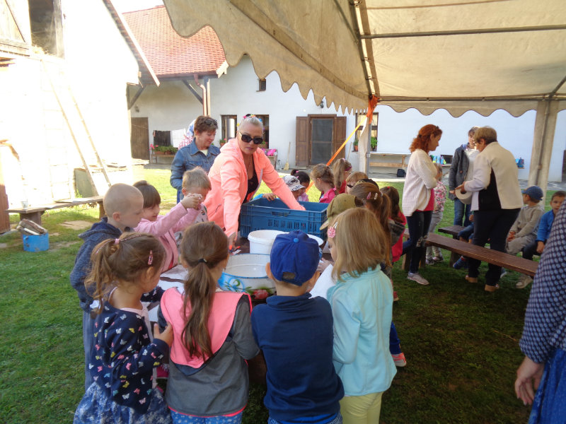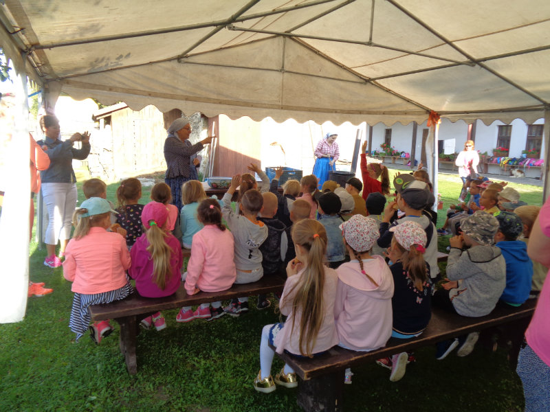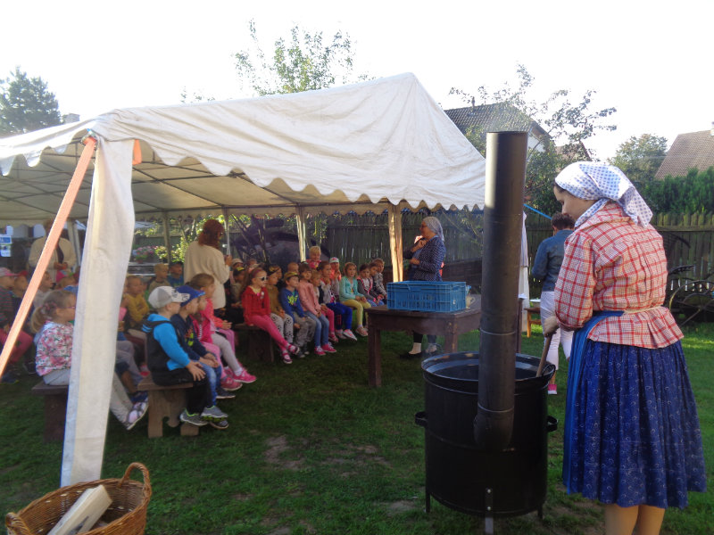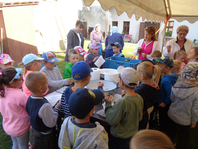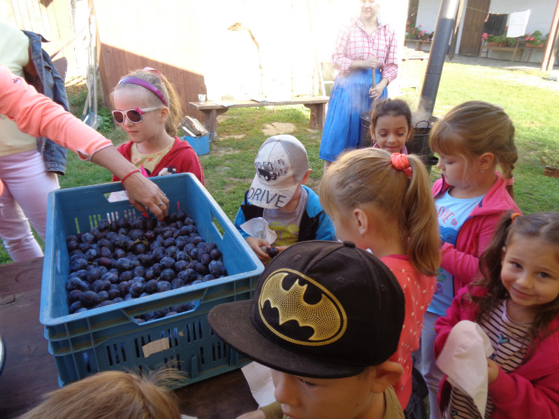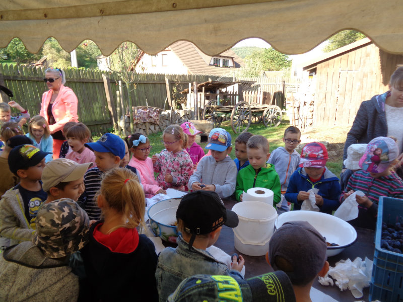 Dňa 13.9.2018 sa predškoláci z tried 4,5,6 z MŠ na ul. Komenského zúčastnili exkurzie v Gazdovskom dvore Turá Lúka, kde sa zoznámili s postupom varenia slivkového lekváru, mali možnosť pripraviť i ochutnať zopár šťavnatých sliviek, či zatancovať si s gazdinami podľa myjavských ľudových piesní.Ďakujeme za príjemne prežité dopoludnie.