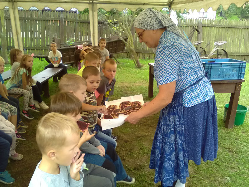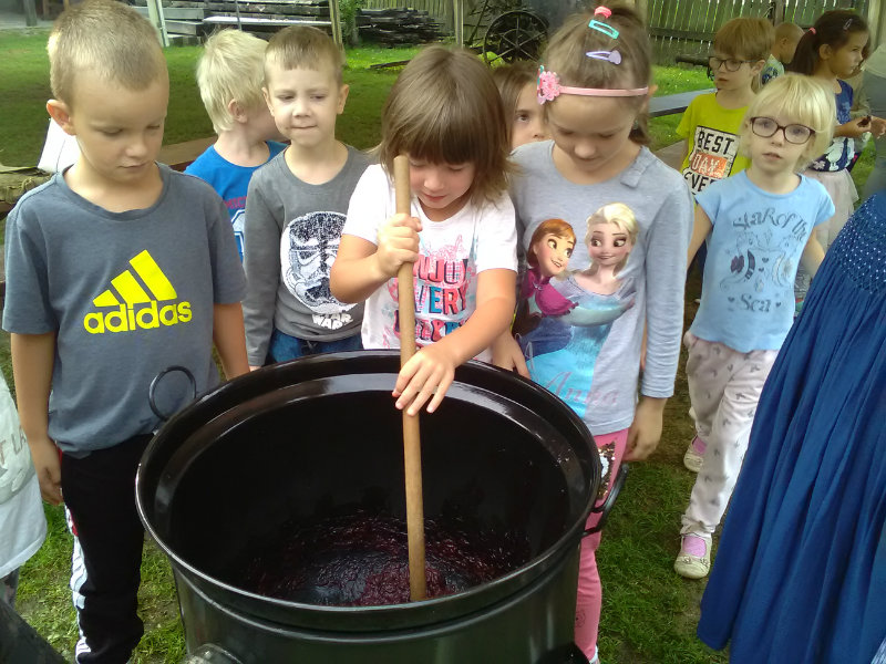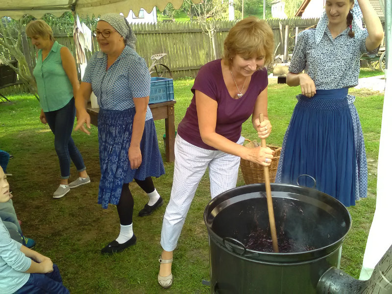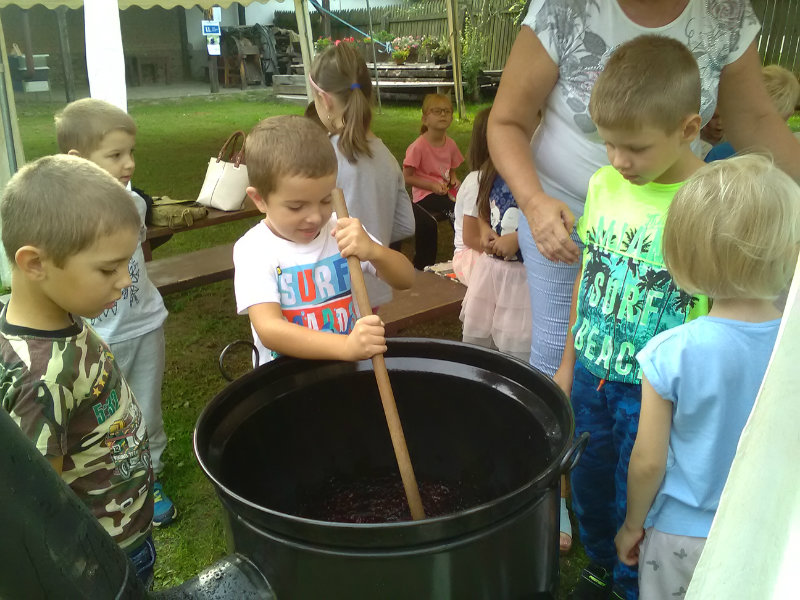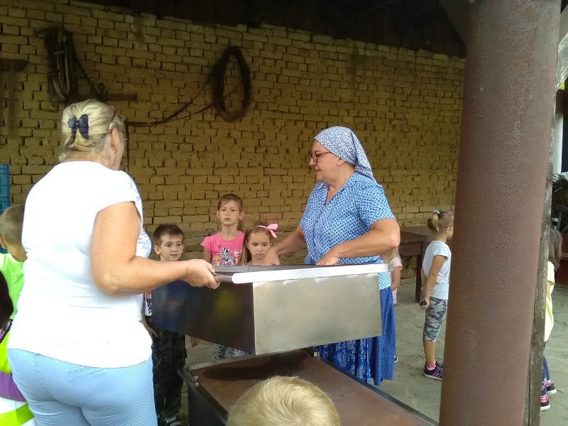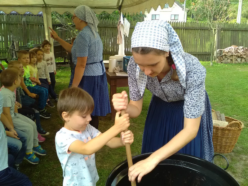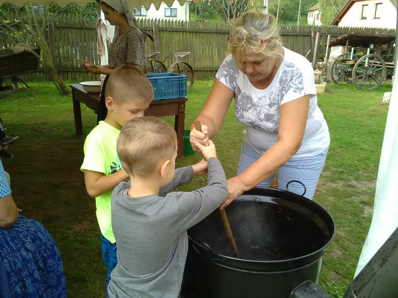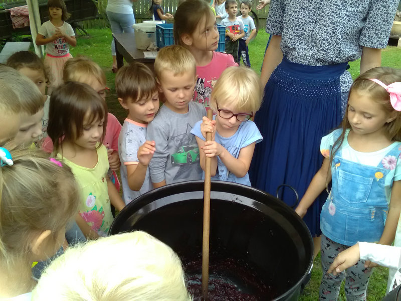 Dňa 14.9.2018 sme boli na exkurzii na Gazdovskom dvore. Veľmi nás zaujali tety rozprávaním o varení slivkového lekváru, nástrojoch, používaných pri tejto práci, čo sme si i samy vyskúšali. Čo sme si navarili, to sme i zjedli, pochutili sme si na sladučkom lekvárovom chlebíku. Naučili sme sa novú ľudovú pieseň a tanček,a s dobrou náladou sme sa vrátili do materskej školy.