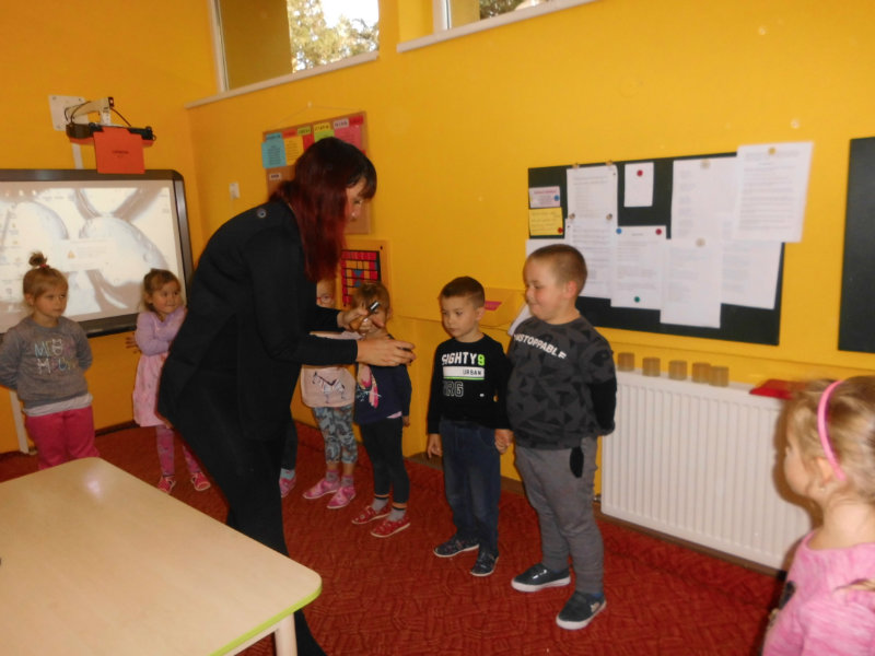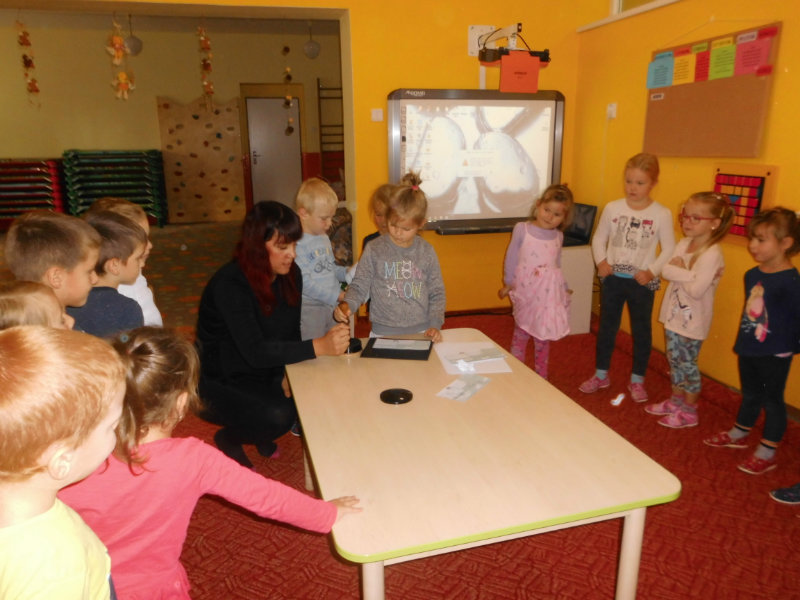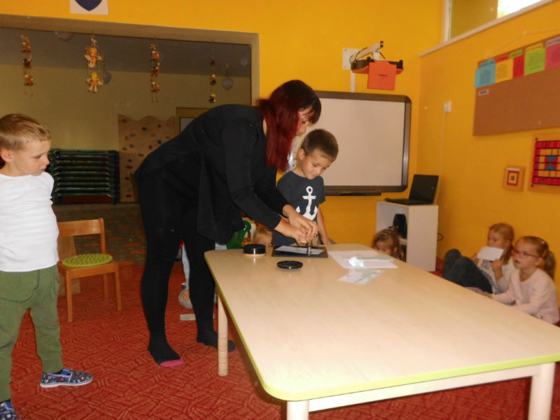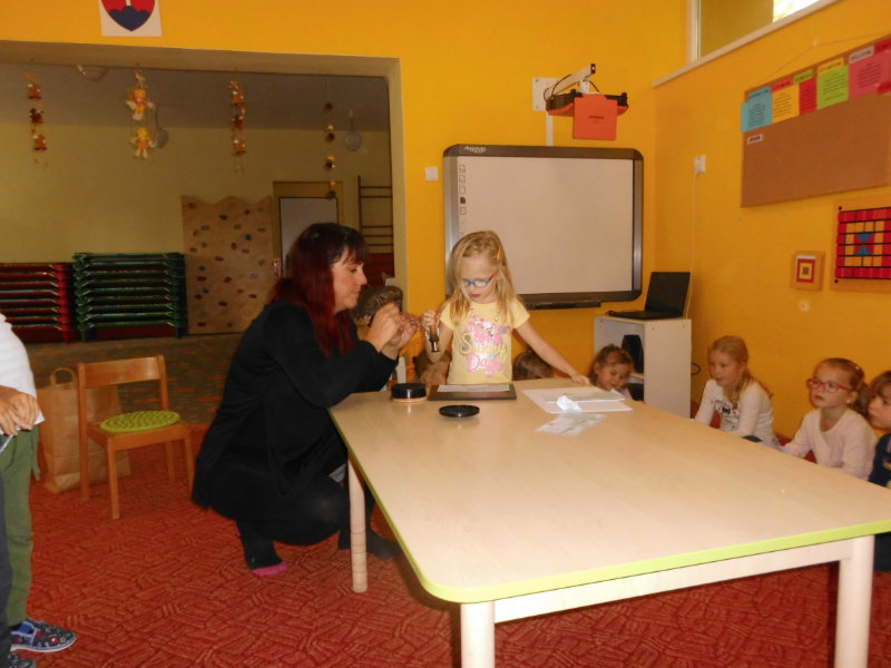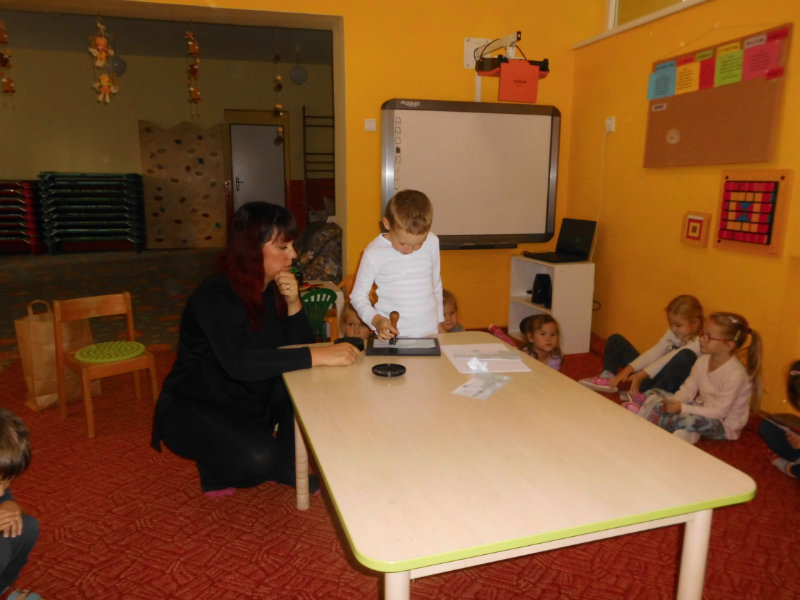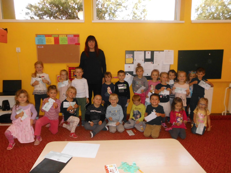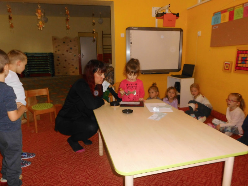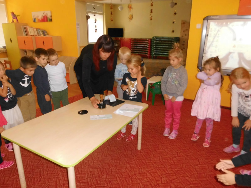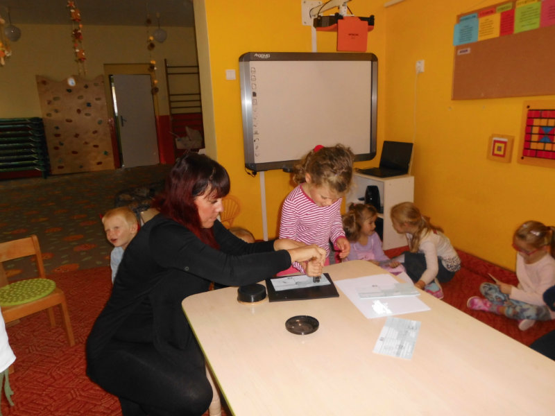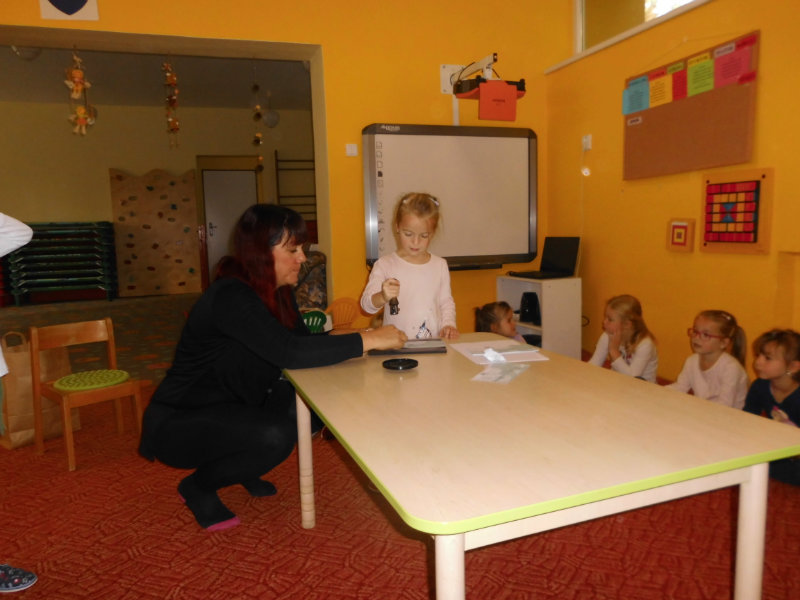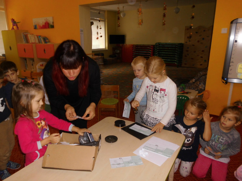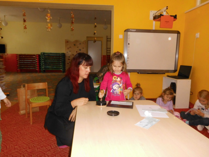 Dnes, v stredu. 26.9.2018 nás prekvapilo klopanie na dvere. Prišla k nám teta Gabika, mamička Ondríka Pitlíka, z pošty, ktorá nám na utvrdenie vedomostí o pracovných profesiách priniesla veľa poznatkov a skúseností zo svojej práce. I my sme mali možnosť vyskúšať si razítkovanie šekov, obálok, posielanie balíkov. Jej rozprávanie bolo zaujímavé a veľmi sa nám páčilo. Ako odmenu sme dostali pero, žetóny a sladkú čokoládku, ktorú nám poslali tety poštárky. Ďakujeme teta Gabika.