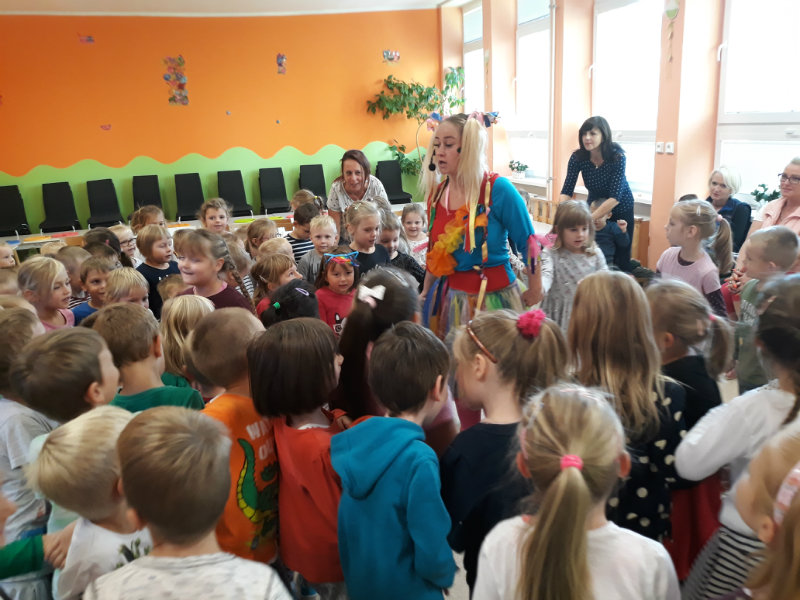 Dňa 28.9.2018 bola naša materská škola plná spevu, hudby, tanca, radosti. Deti si mohli zaspievať i niečo sa dozvedieť vďaka hudobnému programu Kto s čím pracuje. Ďakujeme Simsalale za veselú návštevu.