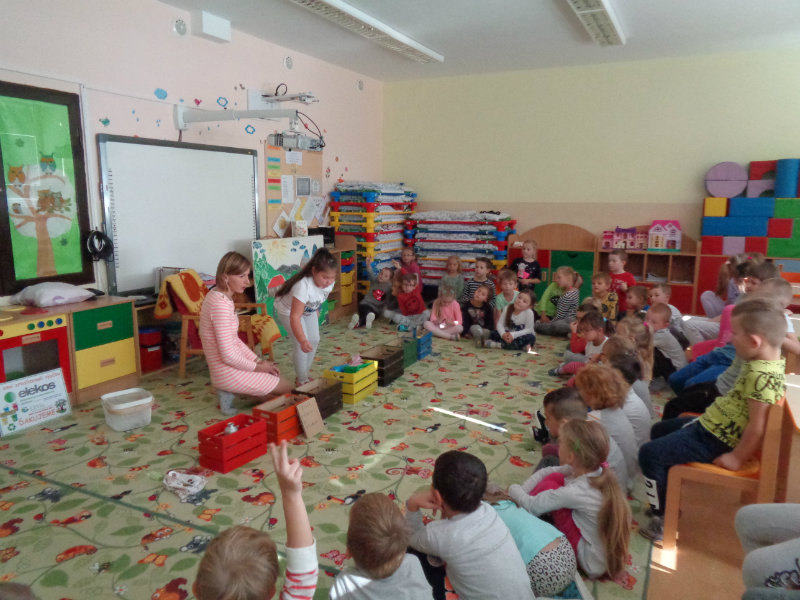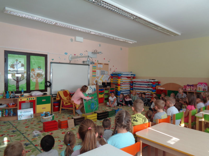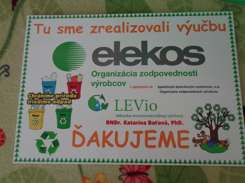 Dňa 9.10.2018 navštívila triedy predškolských detí pani RNDr. Katarína Baťová, PhD., ktorá pútavou formou porozprávala deťom o tom, ako trpí naša planéta Zem tým, že ľudia zabúdajú na triedenie odpadu a zachovávanie čistoty v prírodnom prostredí. Deti ako zvieratká jej pomohli roztriediť rôzne druhy odpadového materiálu - plasty, kovy, sklo, papier, biologický odpad a iné. Ďakujeme pani lektorke environmentálnej výchovy a organizácii Elekos, ktorú zastupovala.