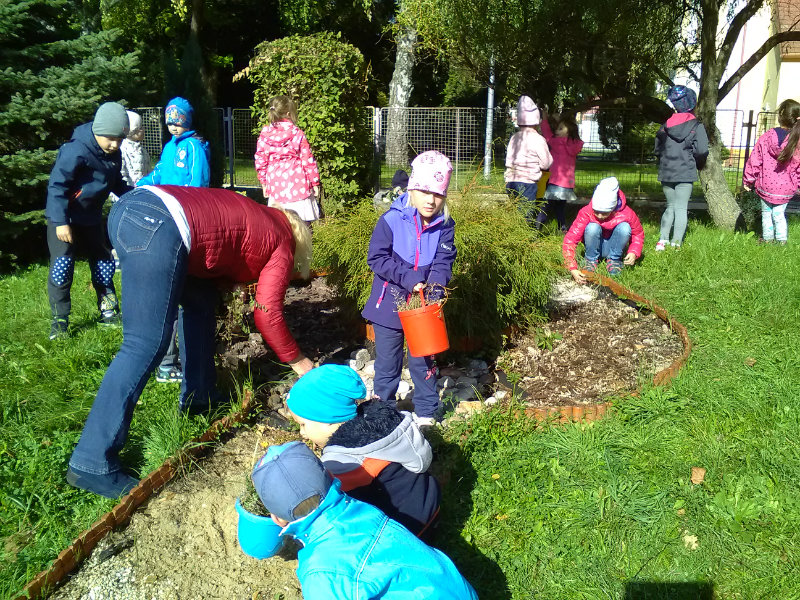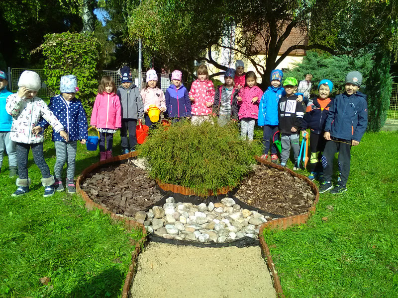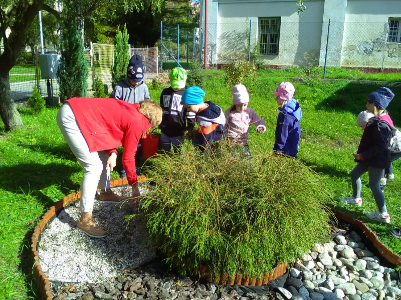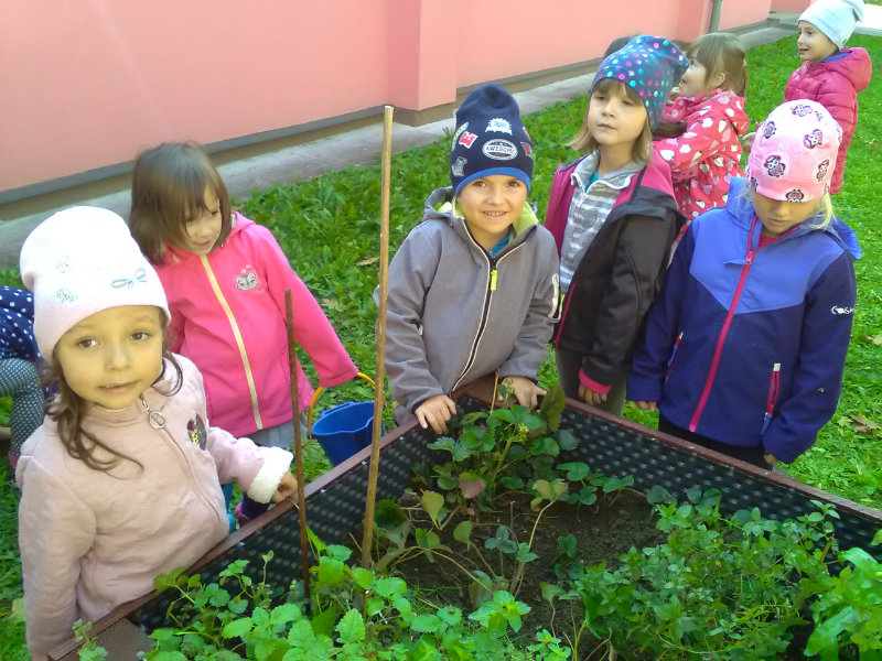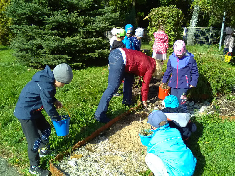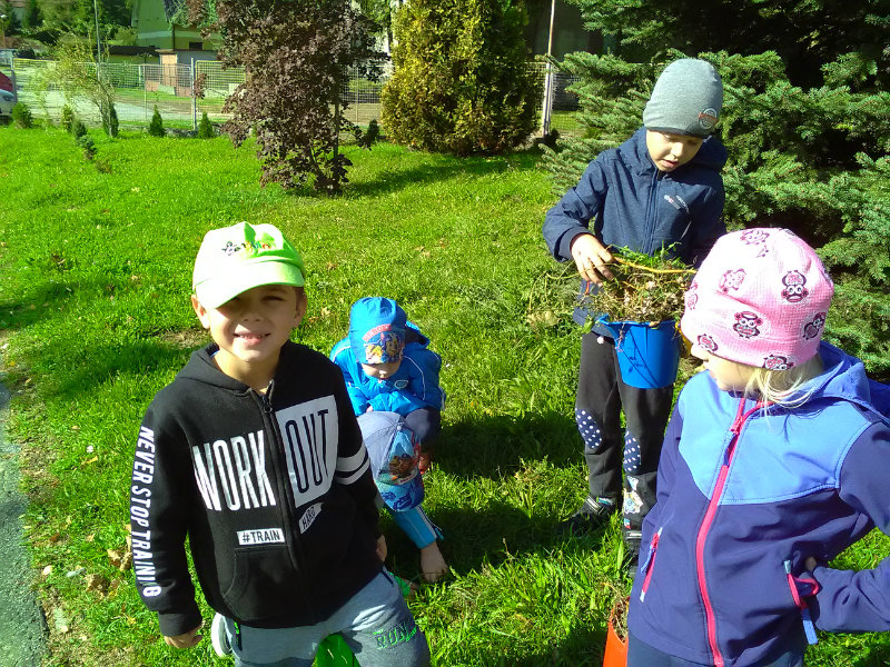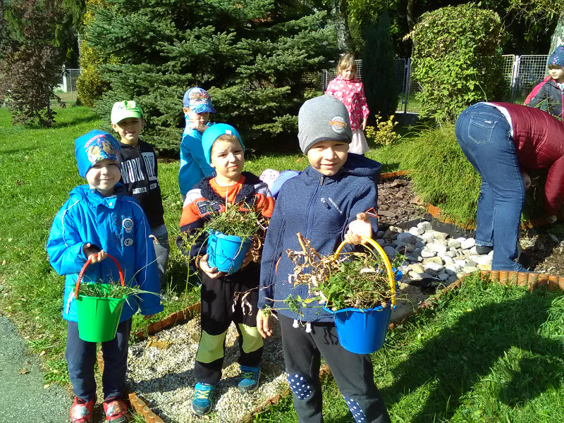 Spoločne s pani učiteľkou sme vyčistili pocitový chodník a pozberali úrodu z našich minizáhrad.