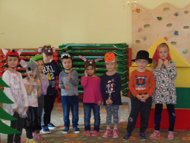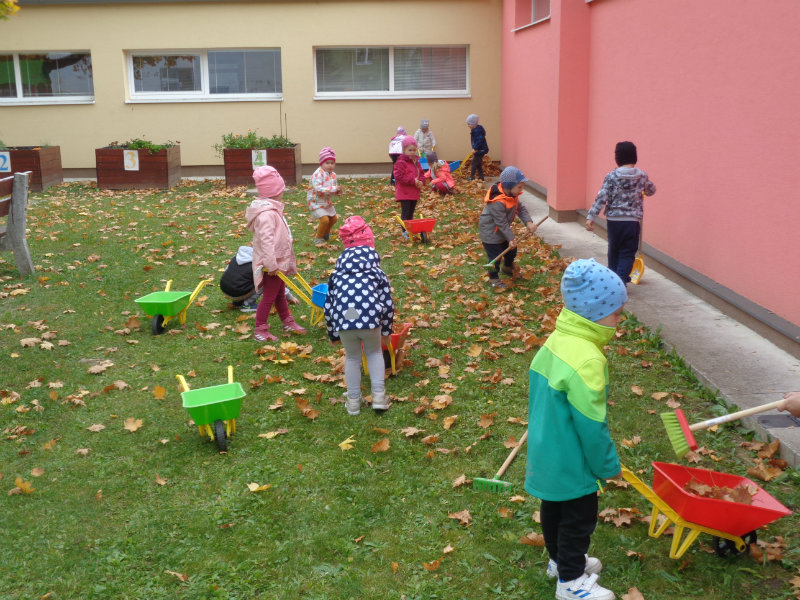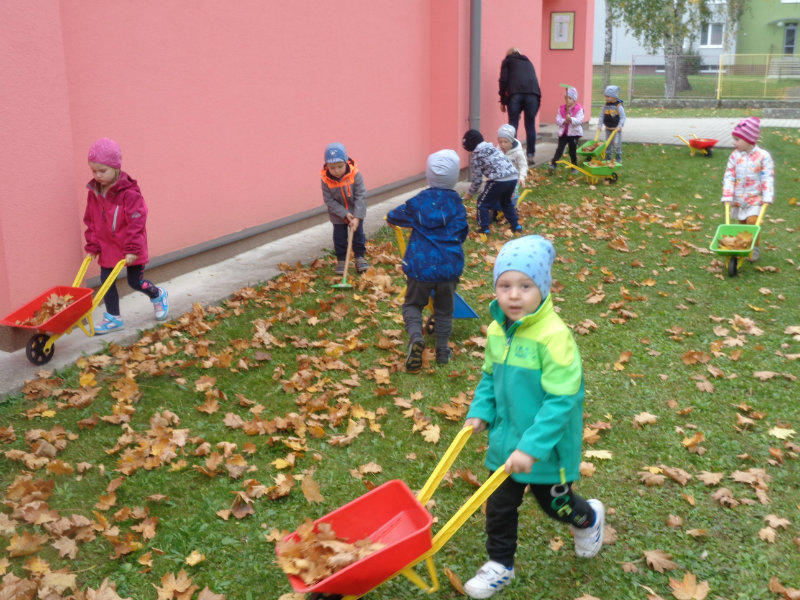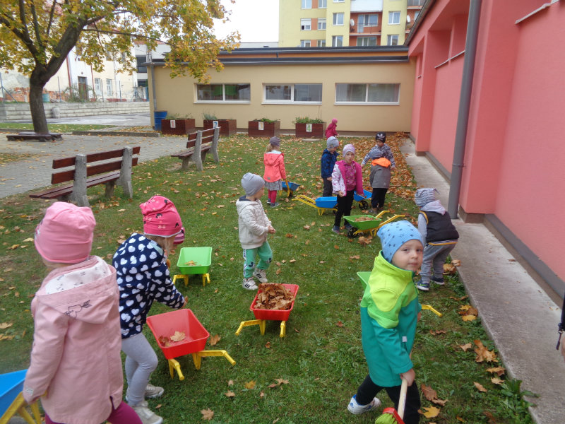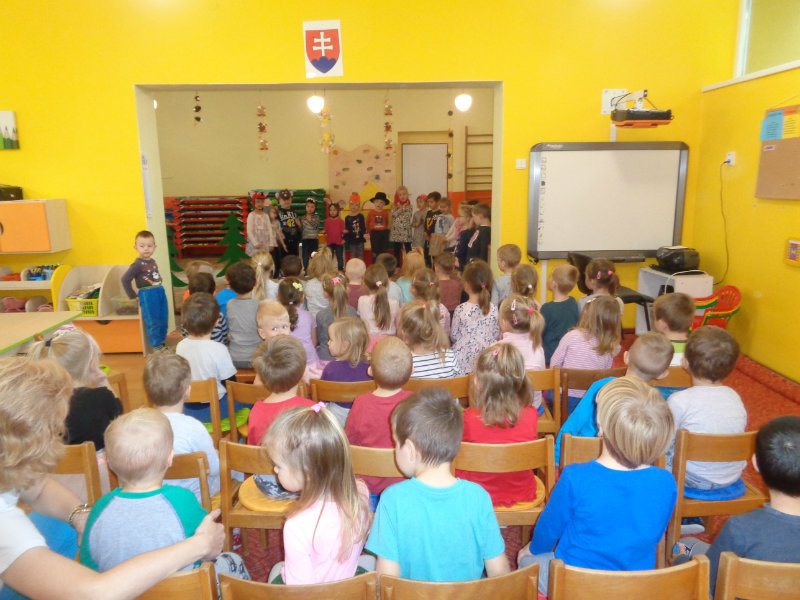 Naša prvá jeseň v materskej škole bola pestrá. Spoločne sme si vyrobili "tetku Sovu" - maskot našej triedy, doma s rodičmi zostrojili všeličo z prírodnín, maľovali, lepili, či upratovali dvor.Navštívili sme i kamarátov v triede č.3, ktorí nám zahrali divadielka "O repe" a "O Pampúšikovi".