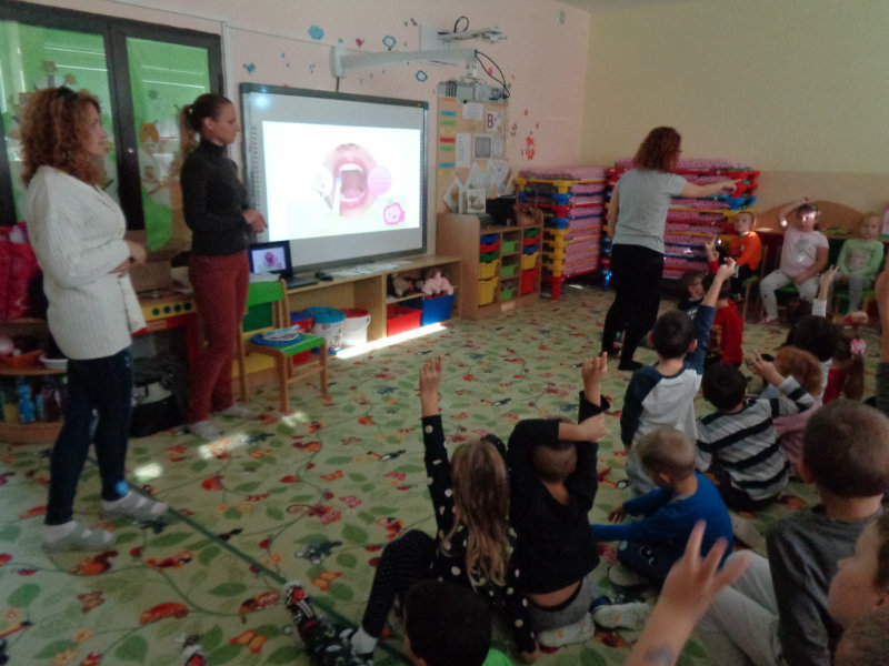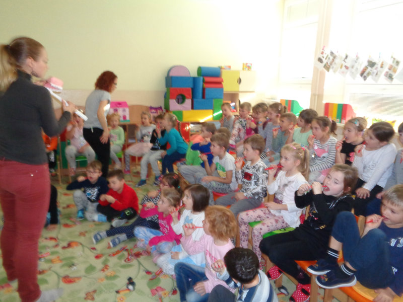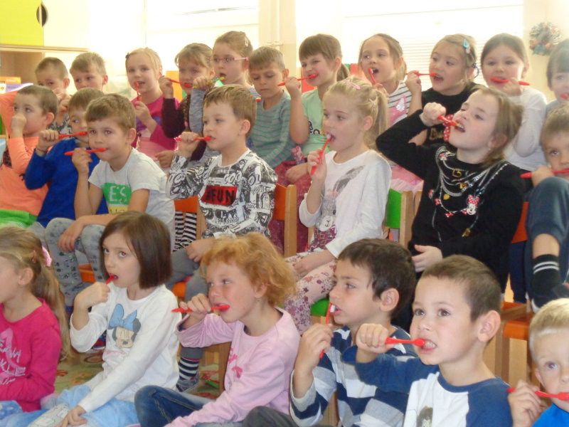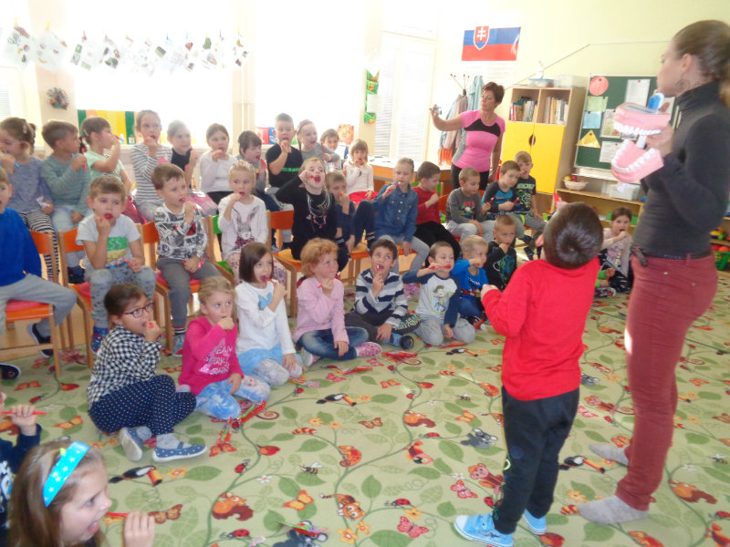 Dňa 5.11.2018 nás v MŠ navštívili dve milé mamičky, pani Lisá a pani Izakovičová, aby nám v rámci prevencie a starostlivosti o naše zúbky ukázali, ako sa máme o ne správne starať, čistiť ich či zdravo jesť. A výsledok určite bude žiarivý, veď čo je krajšie ako zdravý detský úsmev?
