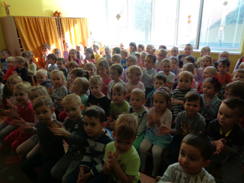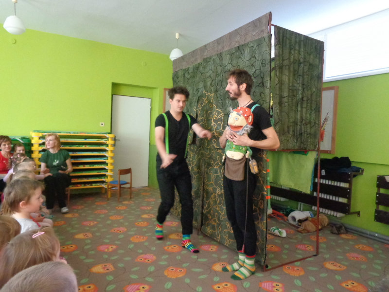 Dňa 7.novembra do našej materskej školy prišli divadelníci "Na hojdačke" a zahrali nám divadielko Tdpaslík. Veľmi sa nám páčilo, čo všetko prežili počas kalendárneho roka a za tento čas sa Kubko naučil vyslovovať písmenko "r".