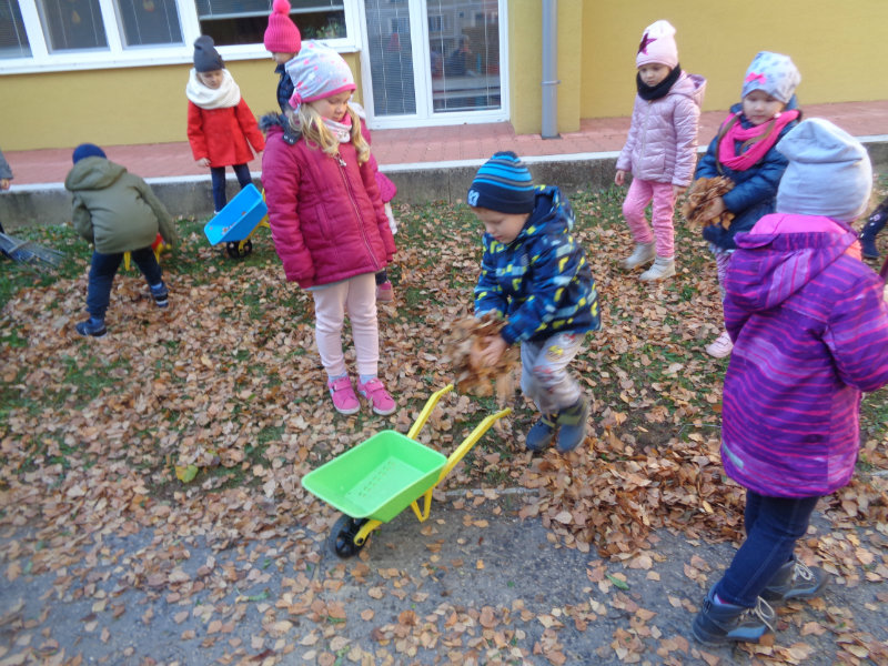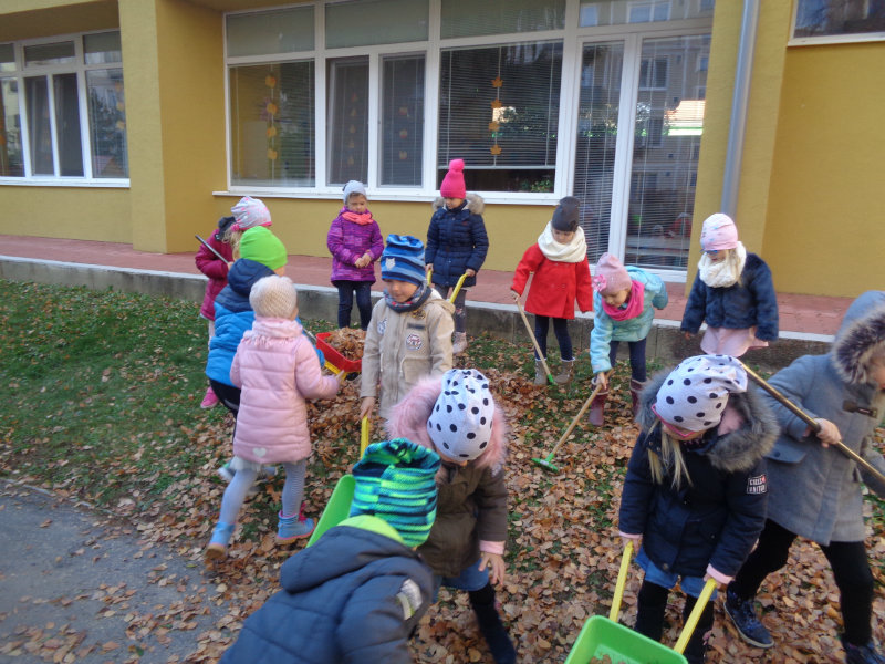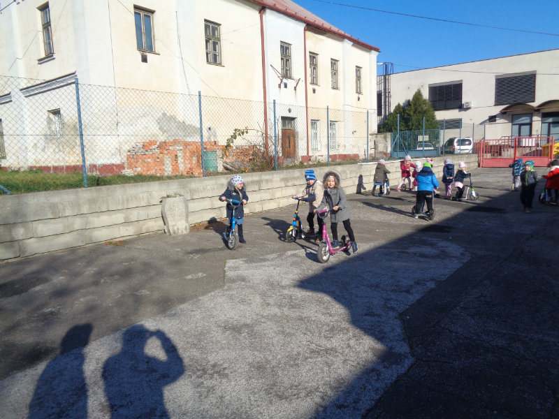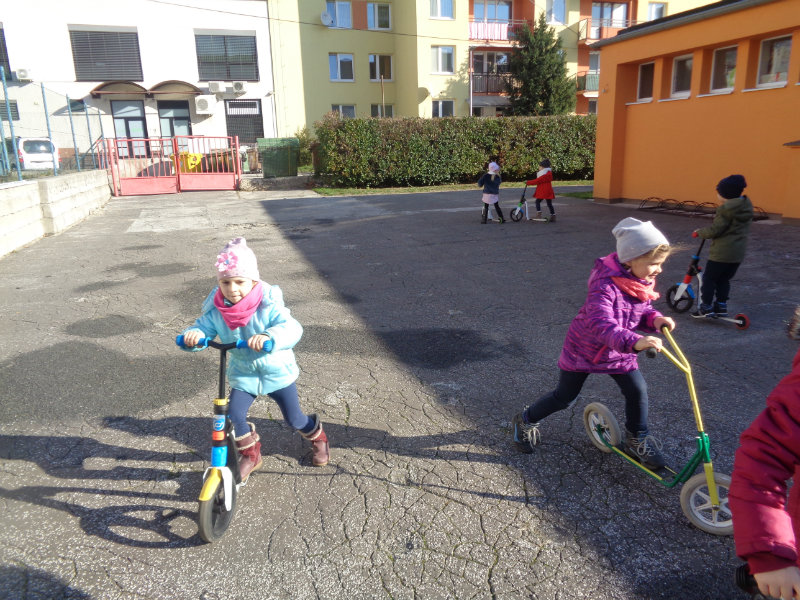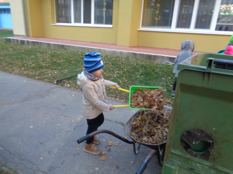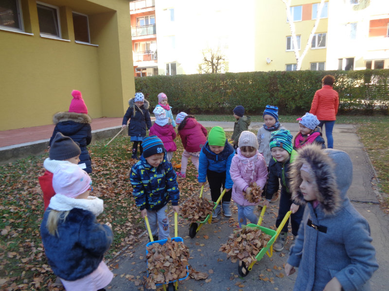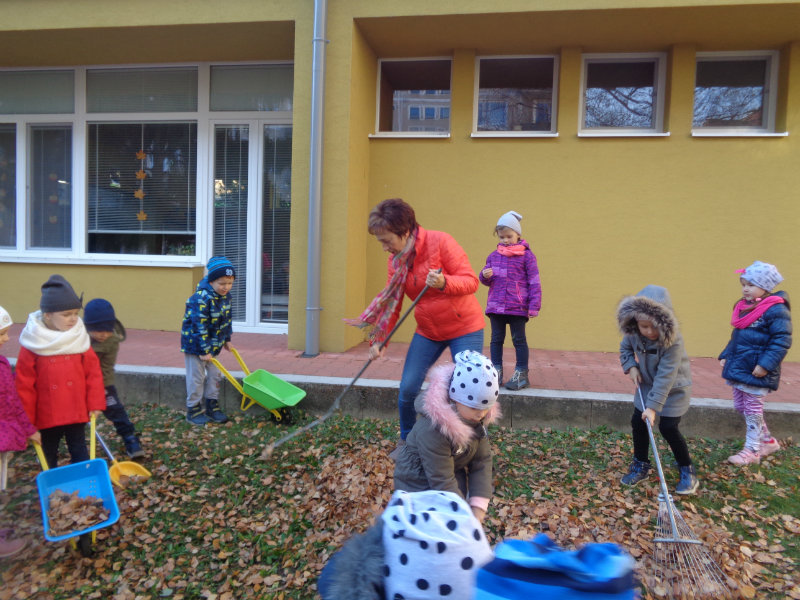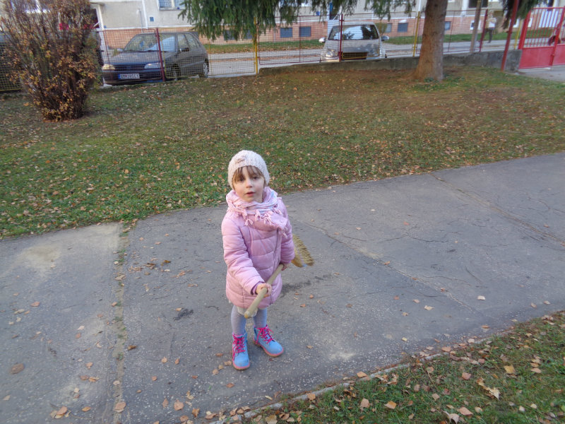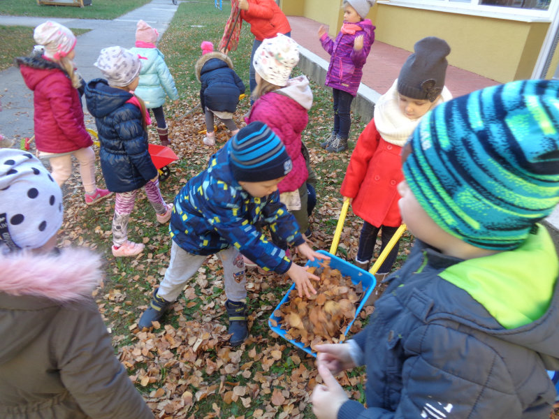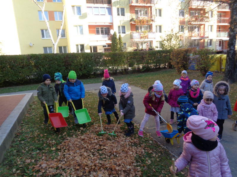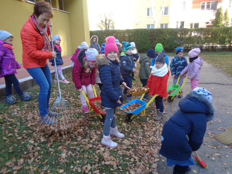 Vo štvrtok, 15.11., sme si zobrali do rúk hrabličky, fúriky, metličku a lopatku a snažili sa pomôcť ujovi Paľkovi pri upratovaní školského dvora . Pretože sa nám veľmi darilo, pani učiteľky Olinka a Ivetka nás odmenili vozením sa na kolobežkách a pretekmi v behu.