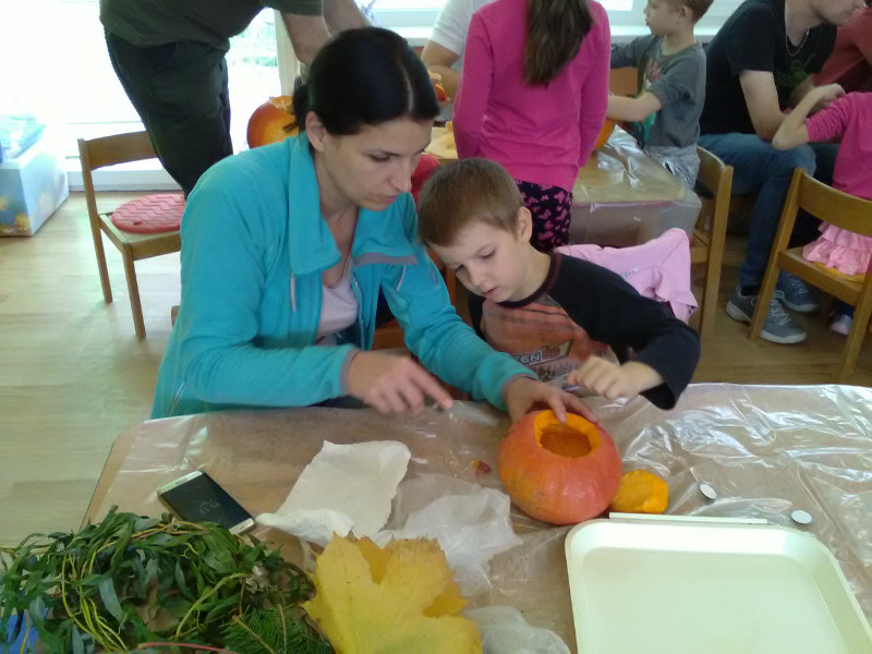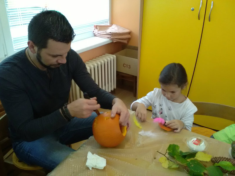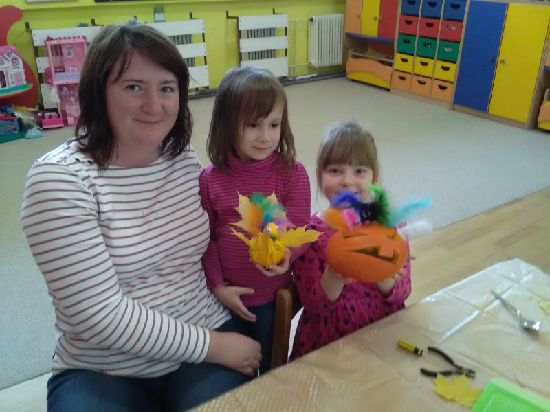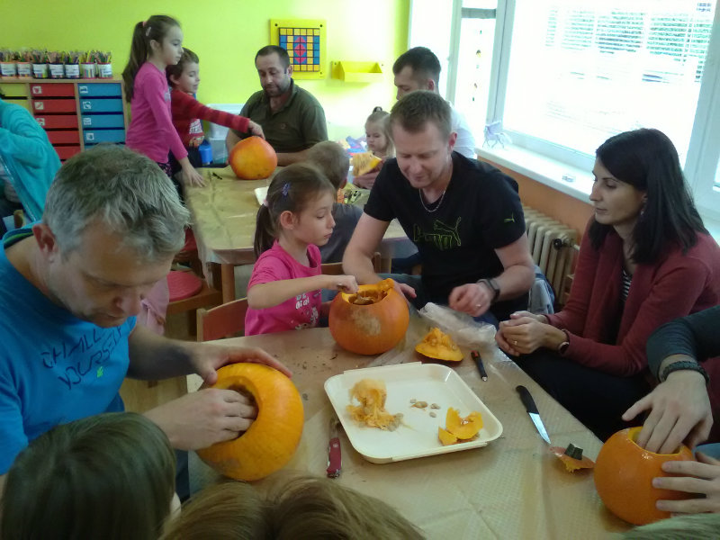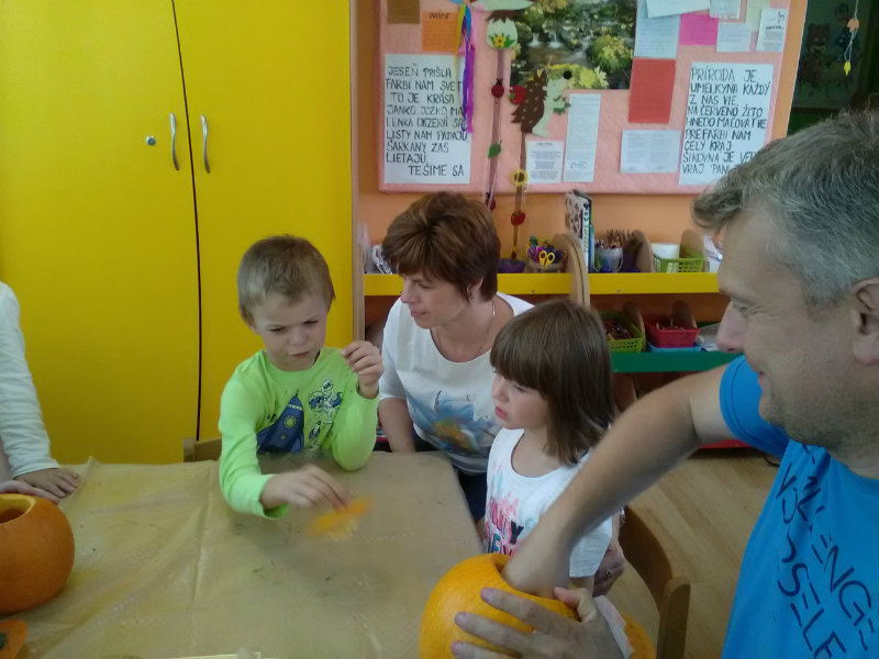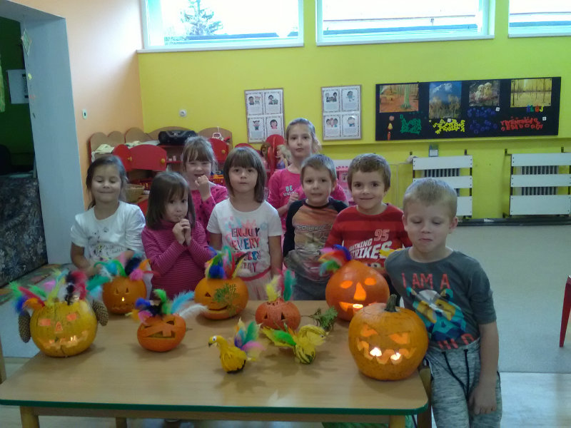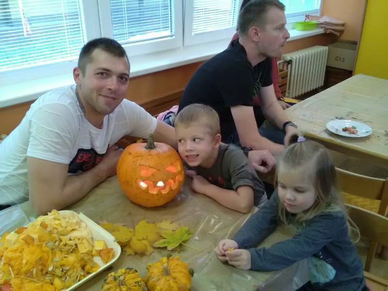 Vo štvrtok, 25.10.20185 sme sa stretli na tvorivom popoludní deti a rodičia. Zaspievali sme si, zarecitovali básne s jesennou tematikou. Naše šikovné ruky dlabali, vyrezovali, až vznikli strašidelné svetlonosy. Ozdobili sme ich prírodninami, farebnými pierkami. Na záver nám rodičia zapálili sviečky a ich plamienky blikali zo strašidielok. Odmenou nám bolo pohostenie od mamičiek Katky a Lenky.