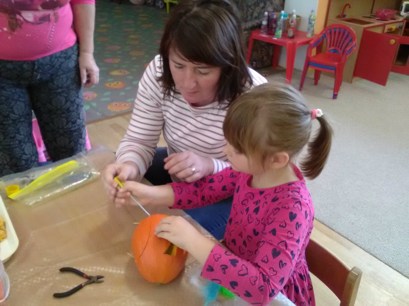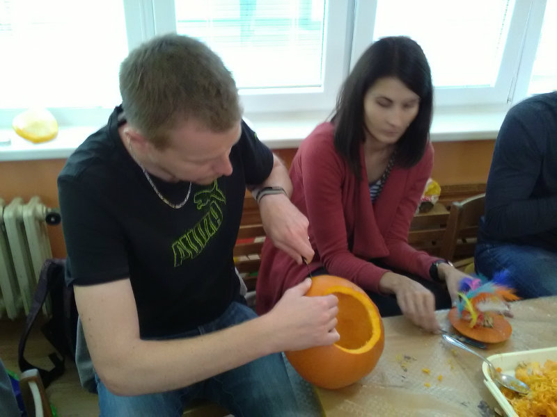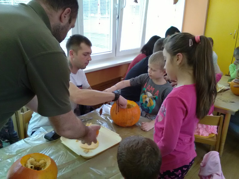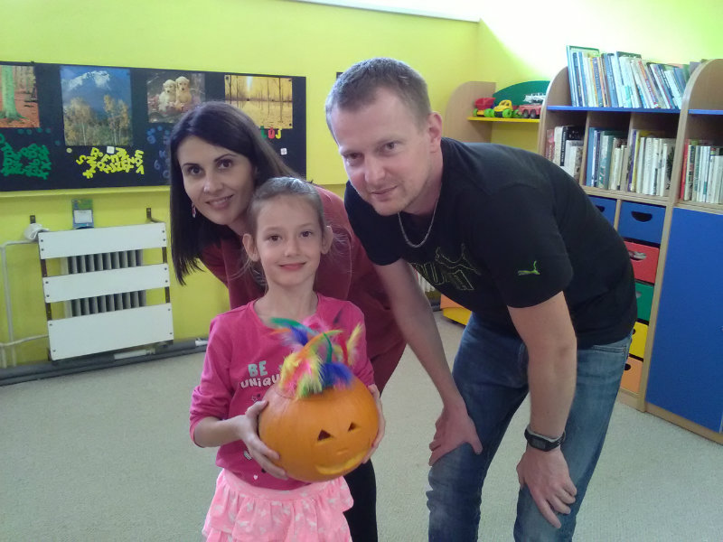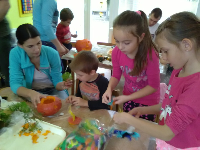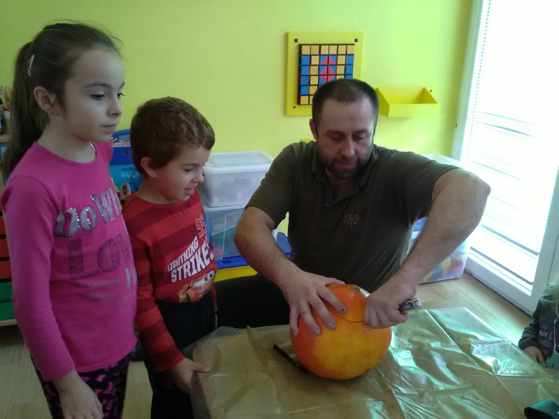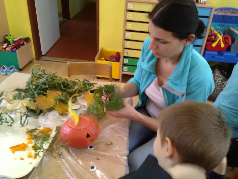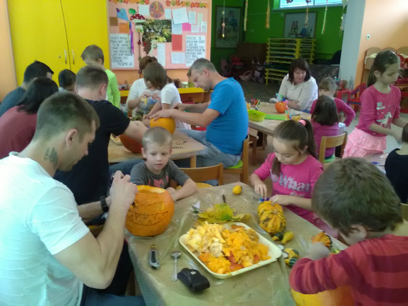 Vo štvrtok, 25.10.20185 sme sa stretli na tvorivom popoludní deti a rodičia. Zaspievali sme si, zarecitovali básne s jesennou tematikou. Naše šikovné ruky dlabali, vyrezovali, až vznikli strašidelné svetlonosy. Ozdobili sme ich prírodninami, farebnými pierkami. Na záver nám rodičia zapálili sviečky a ich plamienky blikali zo strašidielok. Odmenou nám bolo pohostenie od mamičiek Katky a Lenky.