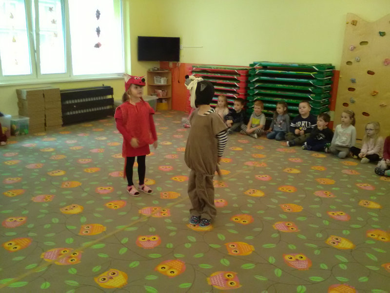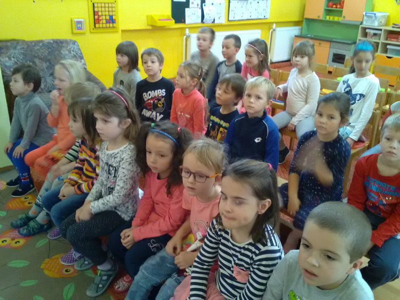 My, deti 3. triedy MŠ pri cukrárni, sme si s pani učiteľkami Olinkou a Ivetkou pripravili pre kamarátov v sychravom jesennom počasí divadielko "Chorý vlk". Deťom sa divadielko o vĺčikovi s chorým chrupom veľmi páčilo, za čo nás odmenili potleskom a sladkosťou.