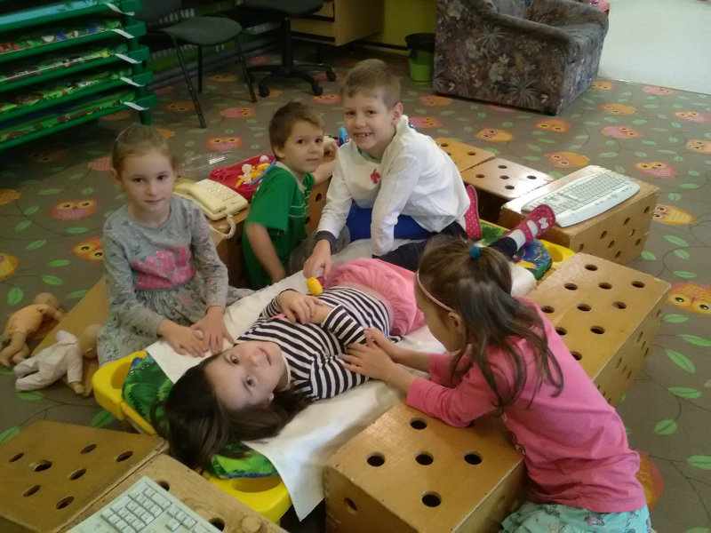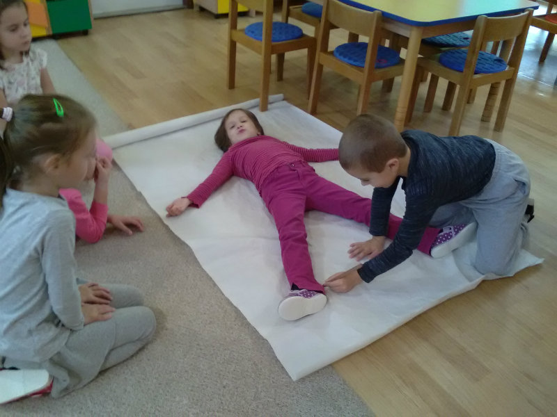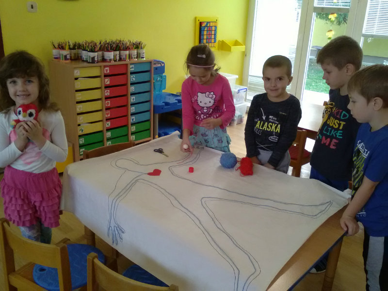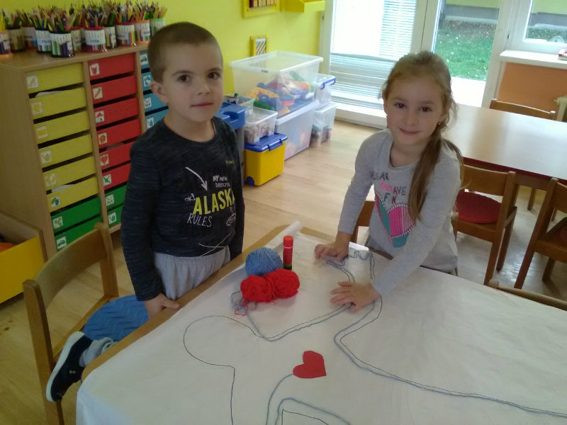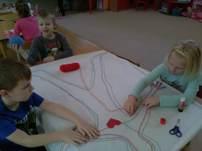 V rámci Týždňa zdravia sme si s pani učiteľkami Milkou a Soničkou pripravili z kamarátov modely a vytvorili krvný obeh, mozog . Práca sa nám veľmi podarila. Naše poznatky sme využili v hre na lekárov.