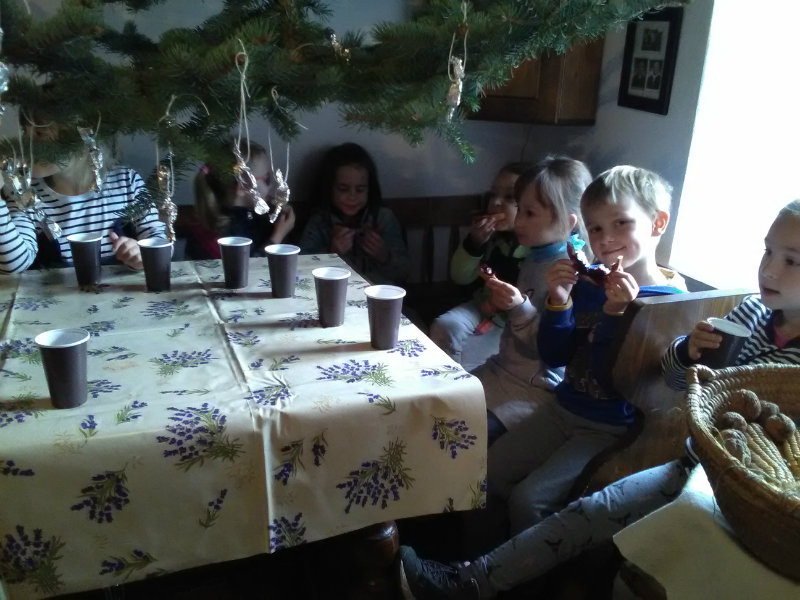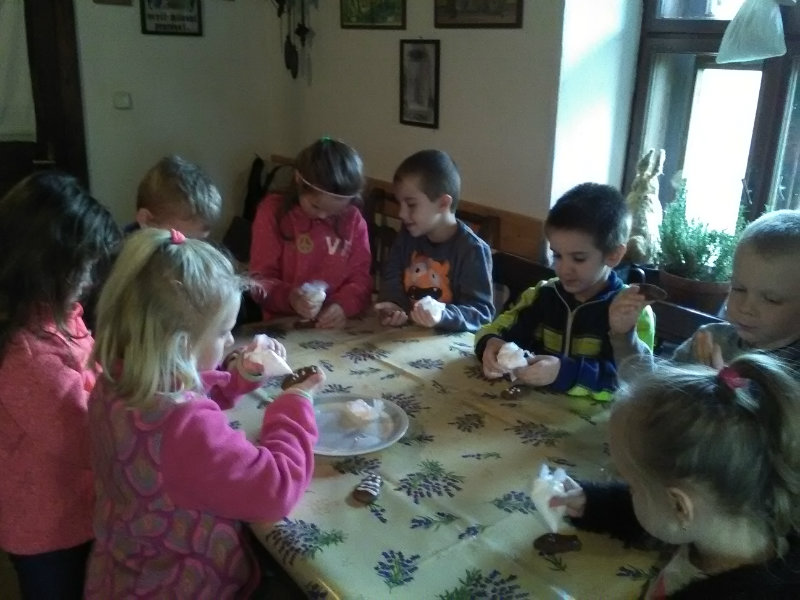 V pondelok, 26.novembra sme si my, predškoláci, urobili výlet s pani učiteľkami Soničkou, Milkou a Olinkou na Gazdovský dvor. Tu nám tety ukázali starodávne predvianočné i vianočné zvyky, samy sme si vyrobili salónky, pochutili na medovníčkoch, lekvárovom chlebíku a čajíku. Bolo nám vynikajúco.