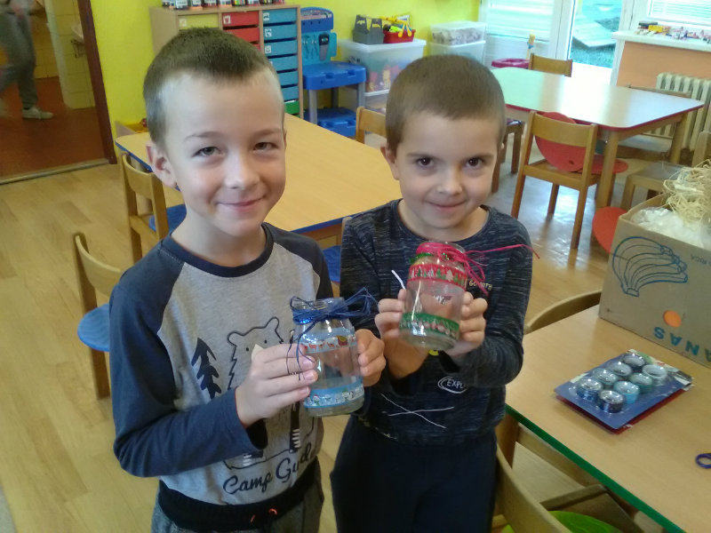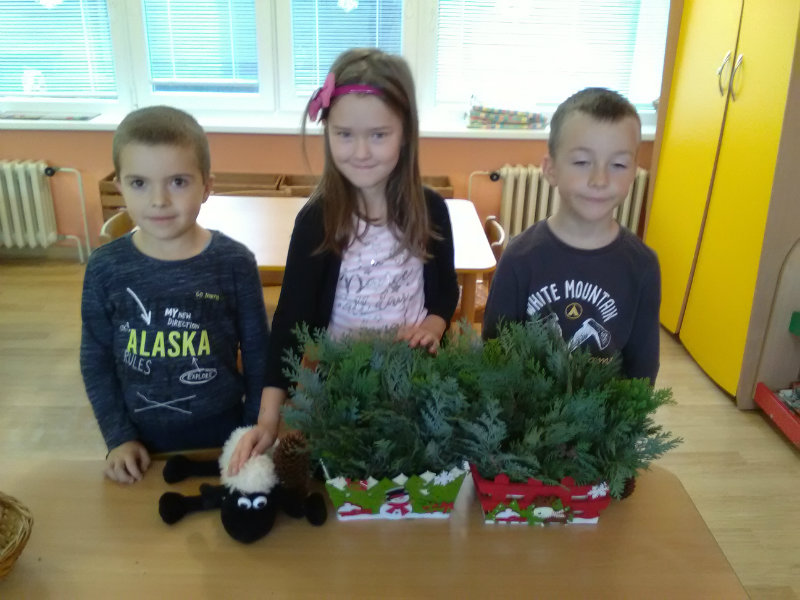 My, deti 4. triedy MŠ pri cukrárni sme si s pani učiteľkami Soničkou a Milkou krásne vyzdobili škôlku vianočnými svietnikmi.