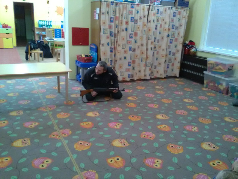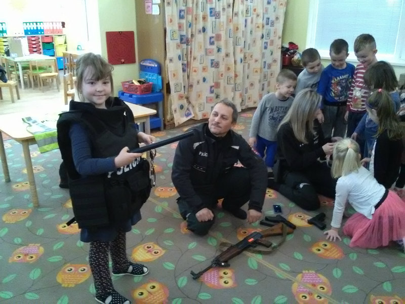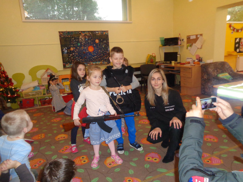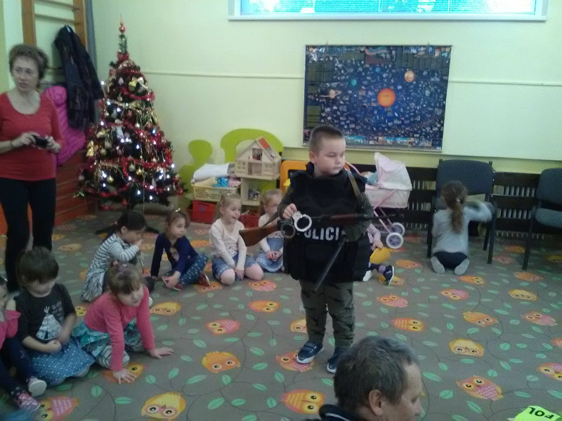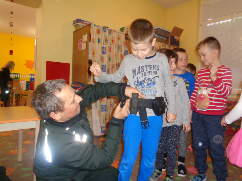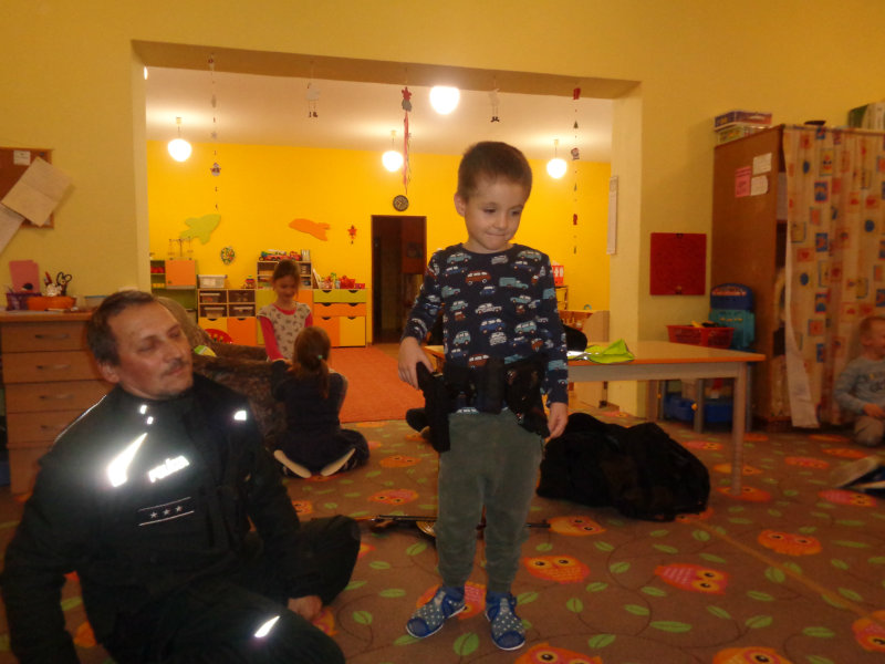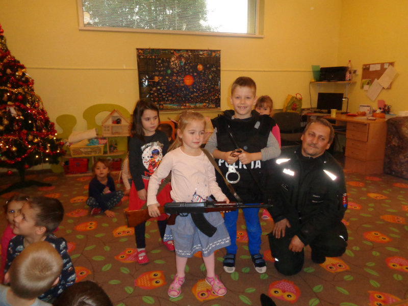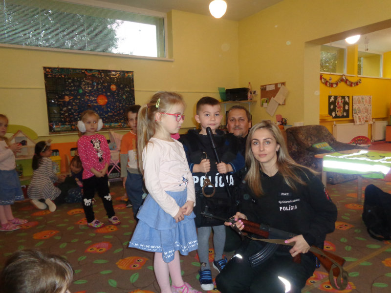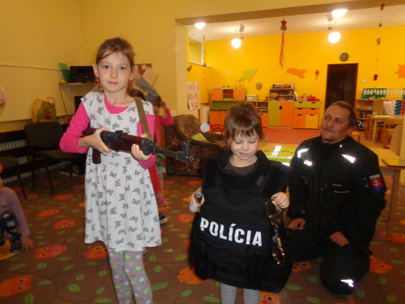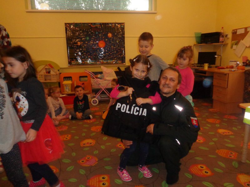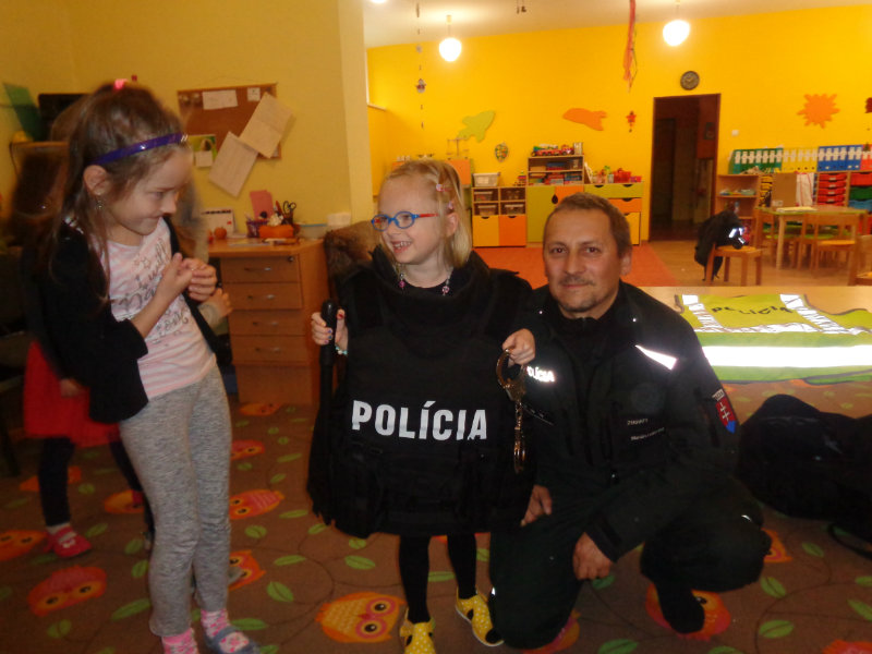 V pondelok, 3. decembra, nás do materskej školy prišli navštíviť policajti, ujo Halienka s kolegyňou Alexandrou. Zaujímavou formou nám porozprávali, aké nebezpečenstvá na nás čakajú na ulici a ako sa pred nimi chrániť. Najviac sa nám páčilo, že sme si mohli vyskúšať policajtskú vestu, zbrane, opasok, Ďakujeme.