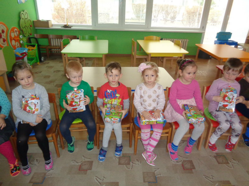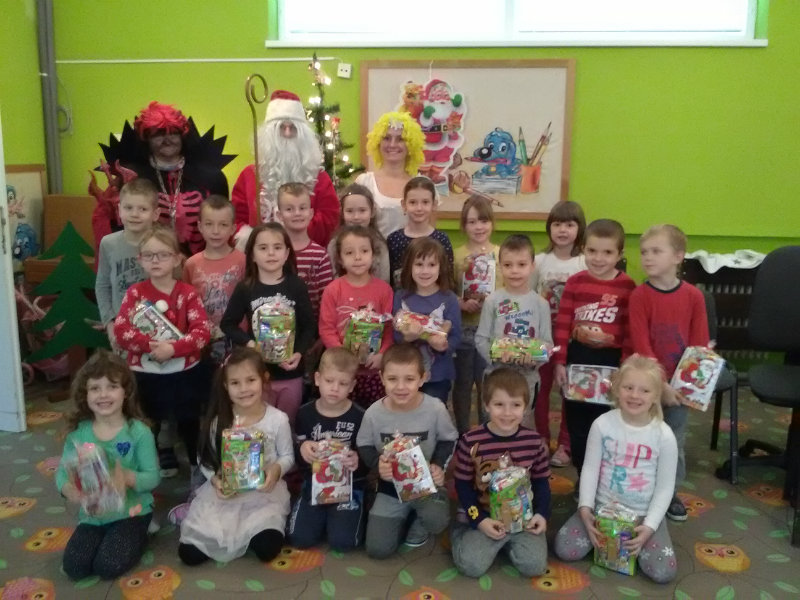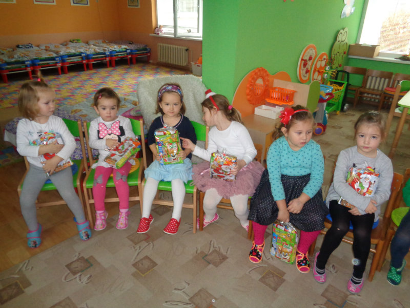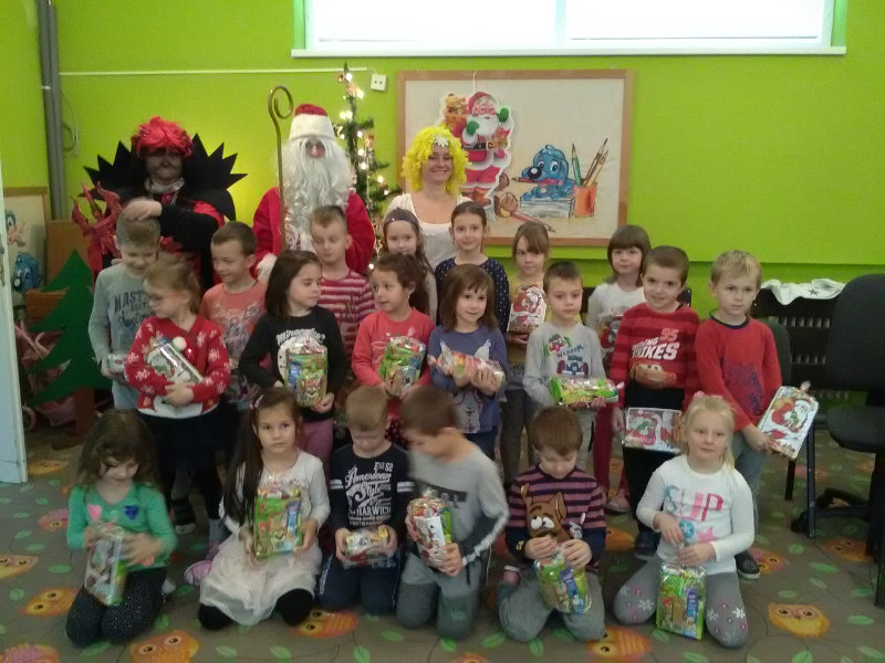 V utorok. 4. decembra k nám do MŠ pri cukrárni zavítal Mikuláš. Zato, že sme dobre poslúchali celý rok, nás odmenil balíčkom plným sladkostí.