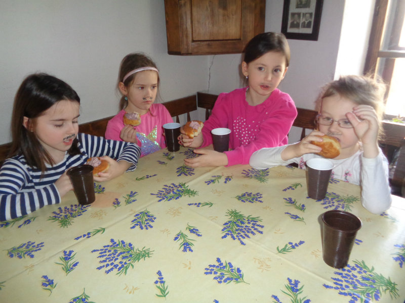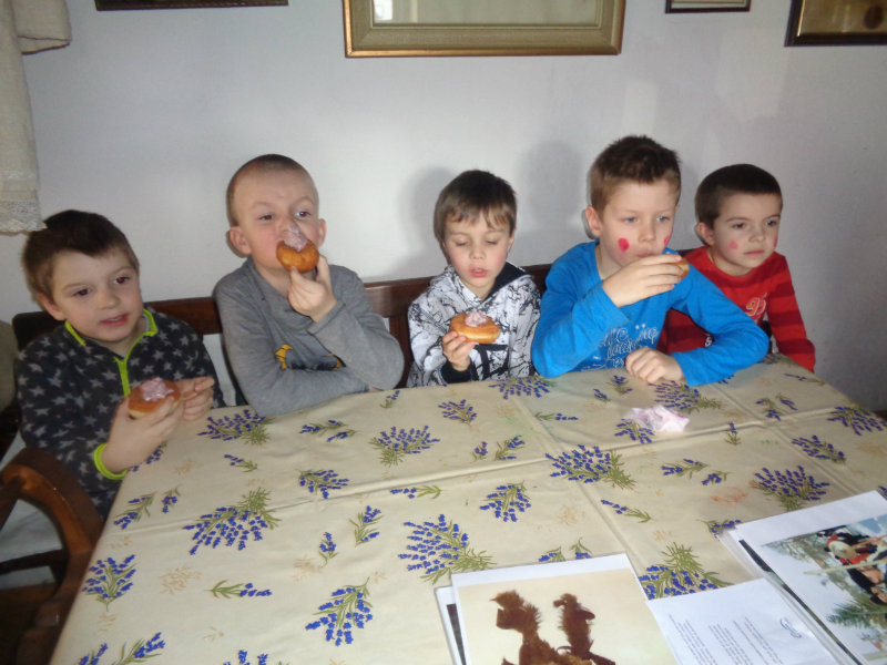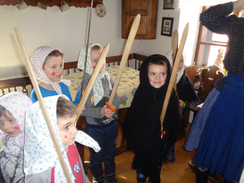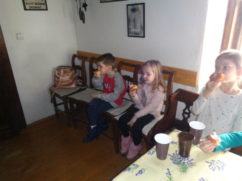Dňa 15.2.2019 sme navštívili Gazdovský dvor. Tu sme spoznali mnohé fašiangové zvyky, ktoré sme si i samy vyskúšali. Tety pre nás pripravili sladkú odmenu -vynikajúce fašiangové šišky s ovocnou penou.