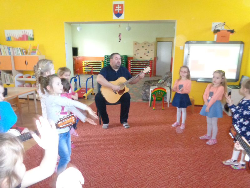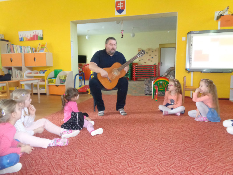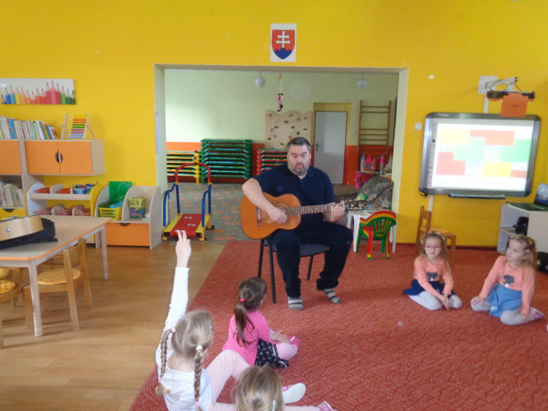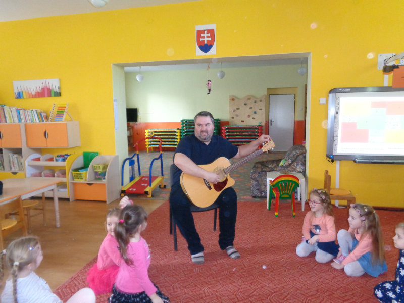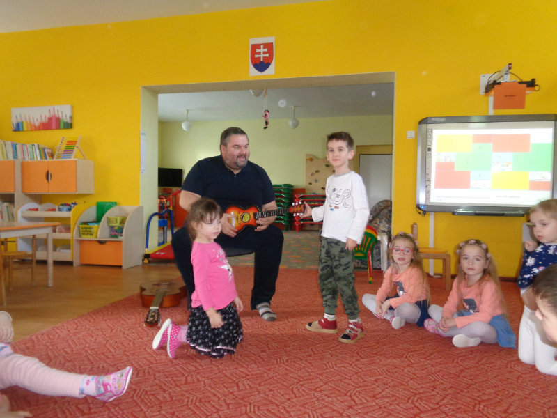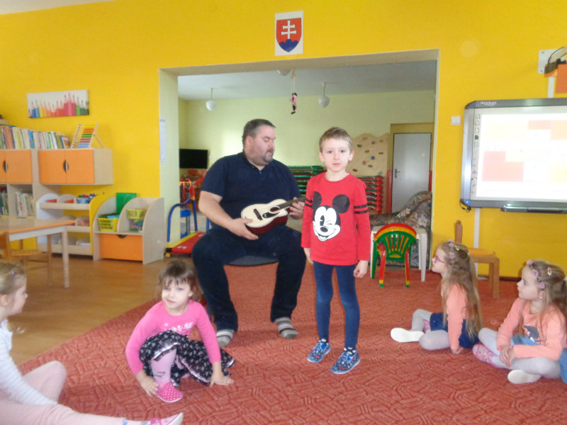 V utorok, 26.2.2019 nás v materskej škole, v 3. triede prekvapil ujo Peťo so svojou gitarou. Zahral, zaspieval , čo sa nám veľmi páčilo.Ďakujeme za príjemné dopoludnie. Priniesli sme si hudobné nástroje a zahrali a zaspievali s ujom Peťom Pitlíkom, Ondríkovým tatinom. Ďakujeme za príjemné dopoludnie.