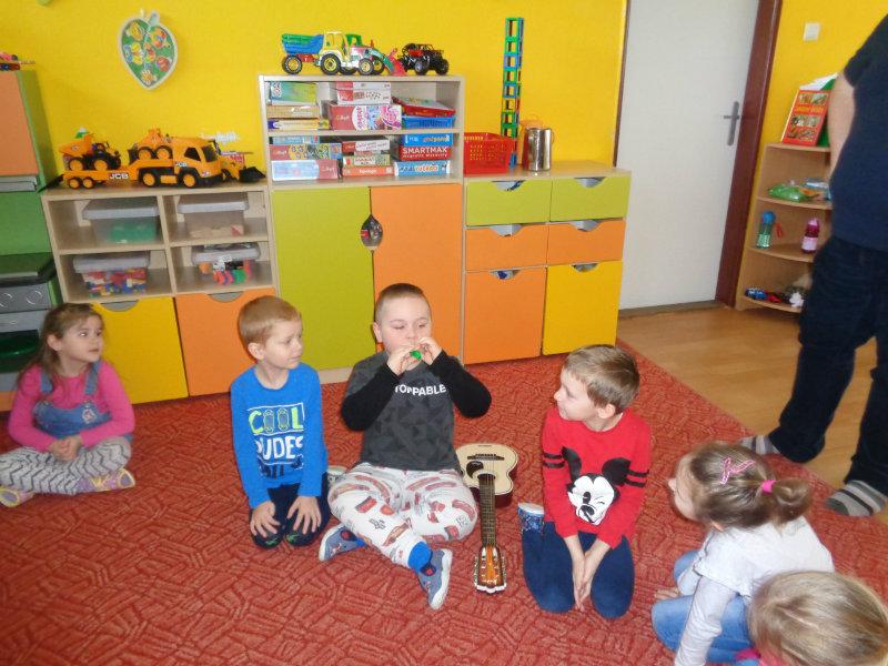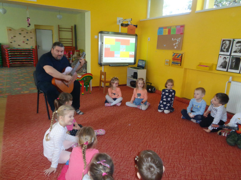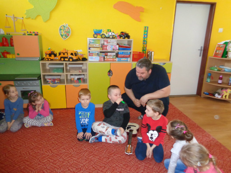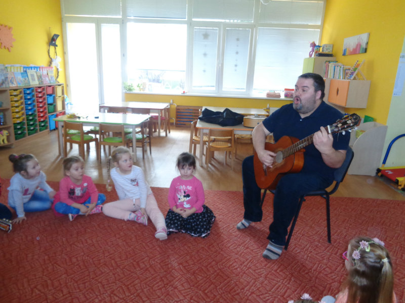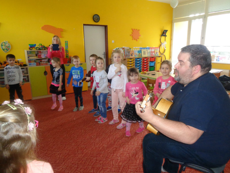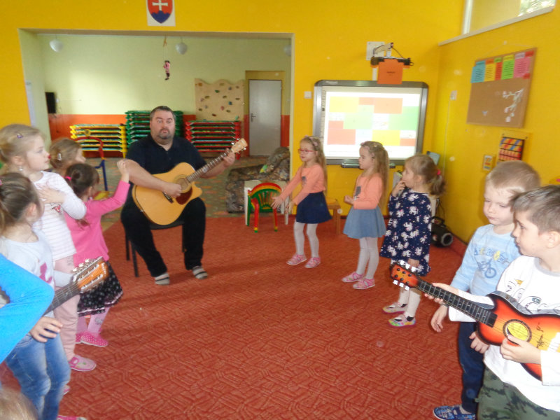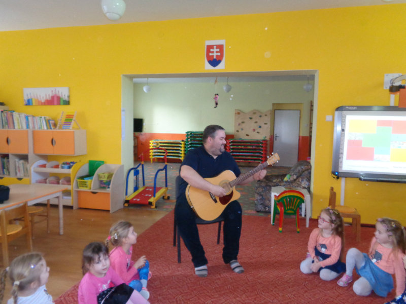 V utorok, 26.2.2019 nás v materskej škole, v 3. triede prekvapil ujo Peťo so svojou gitarou. Zahral, zaspieval , čo sa nám veľmi páčilo.Ďakujeme za príjemné dopoludnie. Priniesli sme si hudobné nástroje a zahrali a zaspievali s ujom Peťom Pitlíkom, Ondríkovým tatinom. Ďakujeme za príjemné dopoludnie.