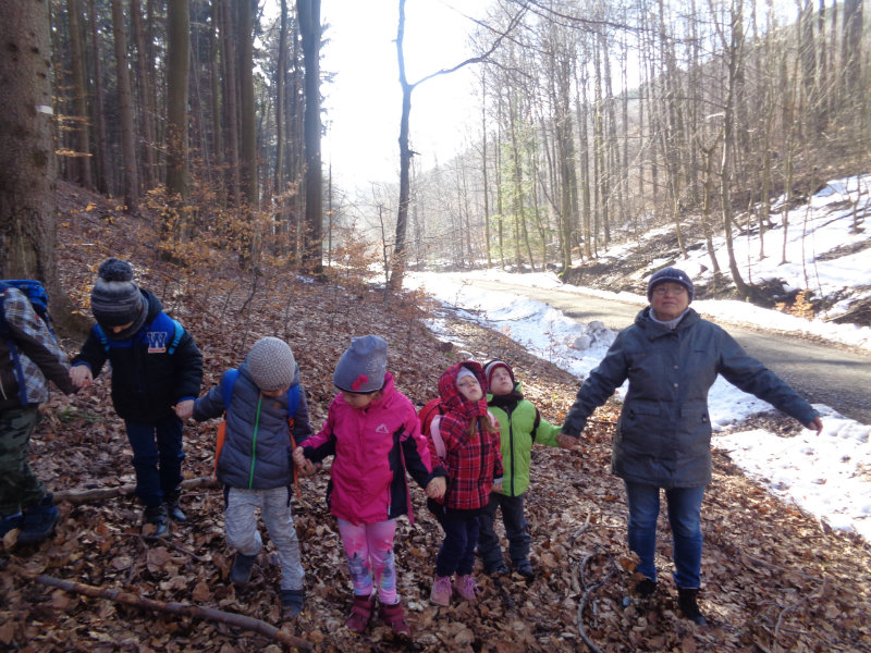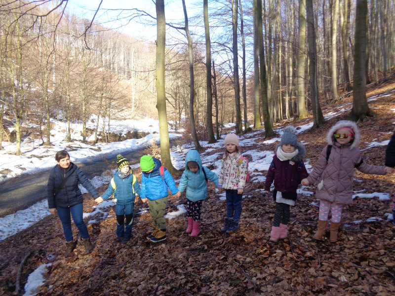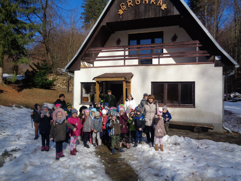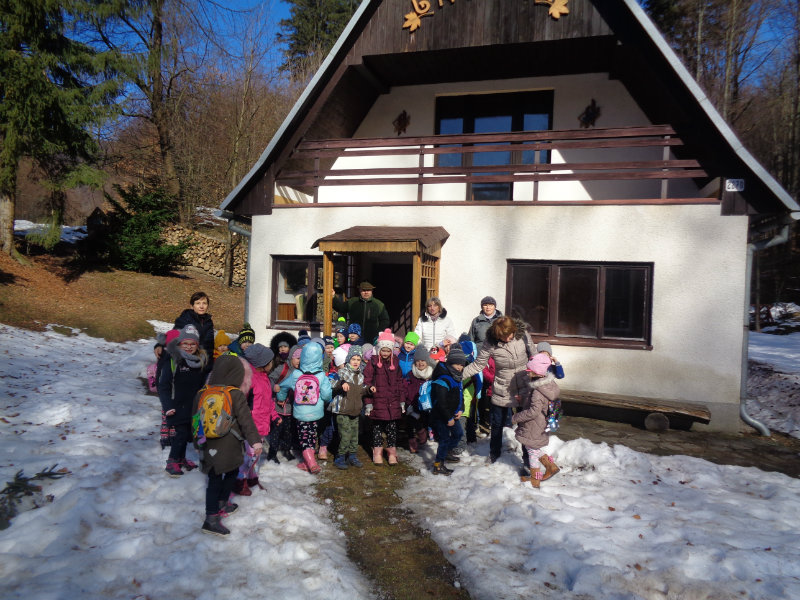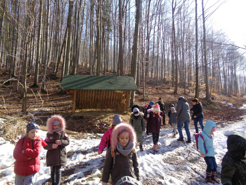Dňa 27.2.2019 sme v spolupráci s LESOTUROM v Starej Turej absolvovali turistickú vychádzku do Topoleckej. Tu sme pozorovali prácu koníka pri zvážaní dreva z lesa, hľadali a hádali sme lesné zvieratká a na koniec našej dlhej cesty sme prikŕmili lesné zvieratká. Po ceste domov sme ešte mali malú zástavku na poľovníckej chate Grúnka, kde na nás čakalo milé prekvapenie - pohostenie v podobe chlebíka džemového a omasteného s cibuľkou a teplý čajík. Ďakujeme tete Mirke a ujovi Jožkovi za prekrásne dopoludnie strávené v lone prírody.