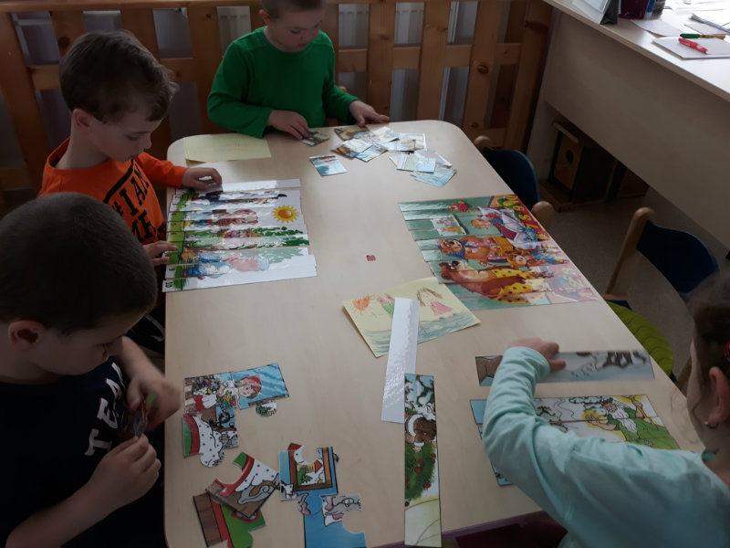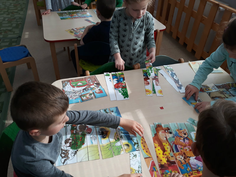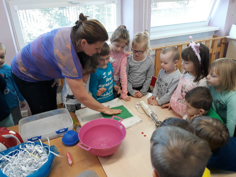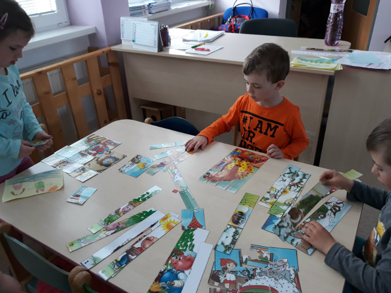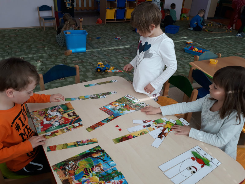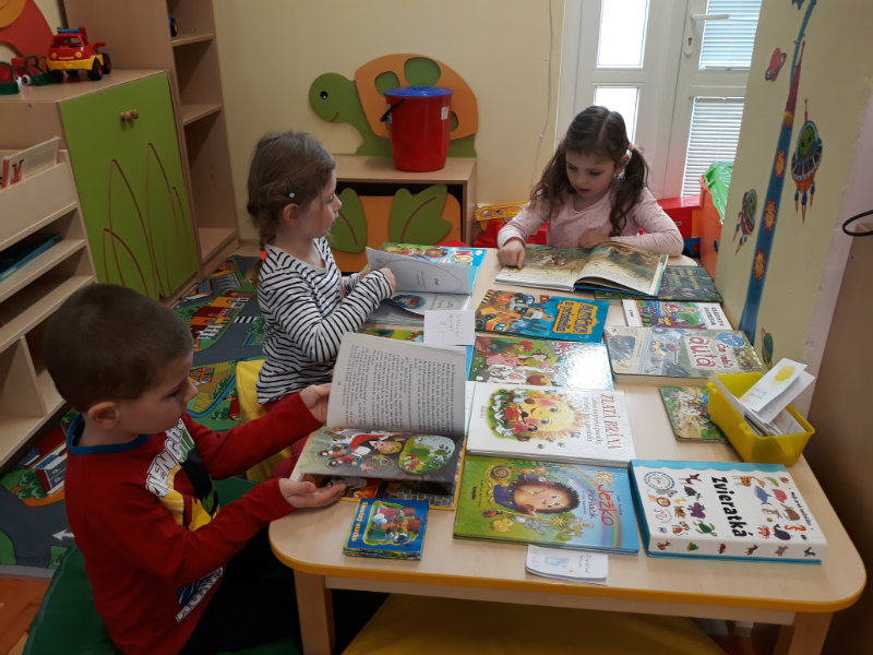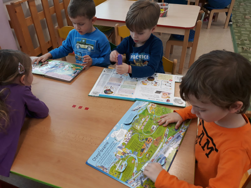 V rámci mesiaca knihy deti najskôr prostredníctvom príbehu o malom semienku zistili odkiaľ máme papier, ako sa zrodí kniha a zážitkovým učením si samotnú výrobu papiera aj vyskúšali. Dramatizovali rozprávky ? O pampúšikovi, Šípovej Ruženke. Pri programovaní robotickej včielky si zopakovali ako Pampúšik putoval. Skladaním puzzle a rozstrihaných obrázkov hádali akú rozprávku vytvorili. Medzi ďalšie aktivity patrila návšteva knižnice, v triede námetová hra na knižnicu a výroba lienkových záložiek. V závere mesiaca marec si deti užili veselé divadelné predstavenie Strašiak Tomáš. Ďakujeme rodičom za zapožičanie rôznych krásnych kníh z domáceho prostredia, z ktorých sme si veľa prečítali a popozerali. Knihy boli a zostanú zdrojom zábavy, poučenia a vzdelania.