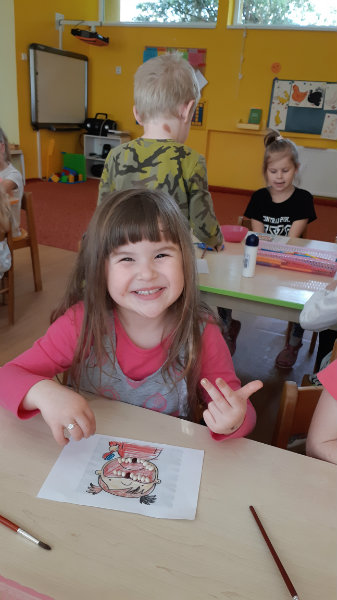 V utorok, 9.4.2019, k nám do 3. triedy prišla teta Antalová, ktorá si pre nás pripravila zaujímavé dopoludnie o ústnej hygiene. Spoločne sme nalepili zúbky deťom na výkrese, ktoré z dôvodu nedostatočnej hygieny prišli o svoj chrup. Ďakujeme tete Alenke za zábavné posedenie.