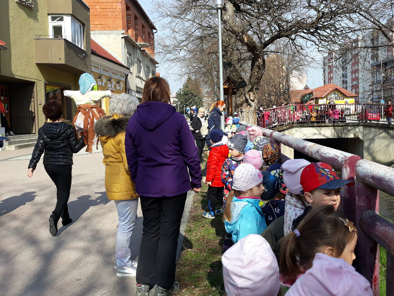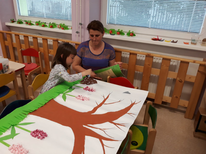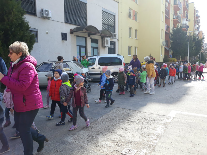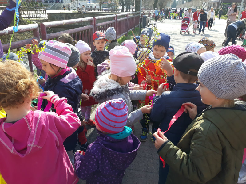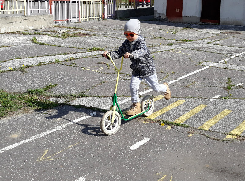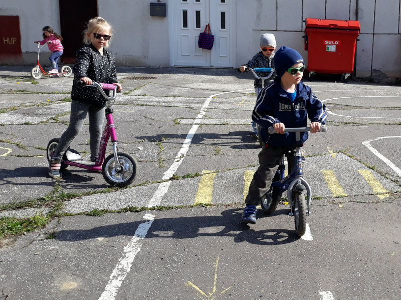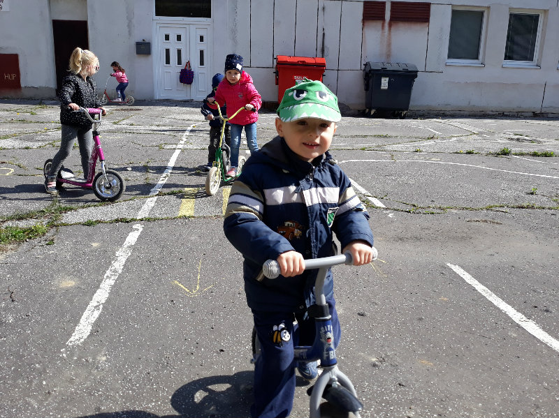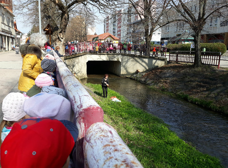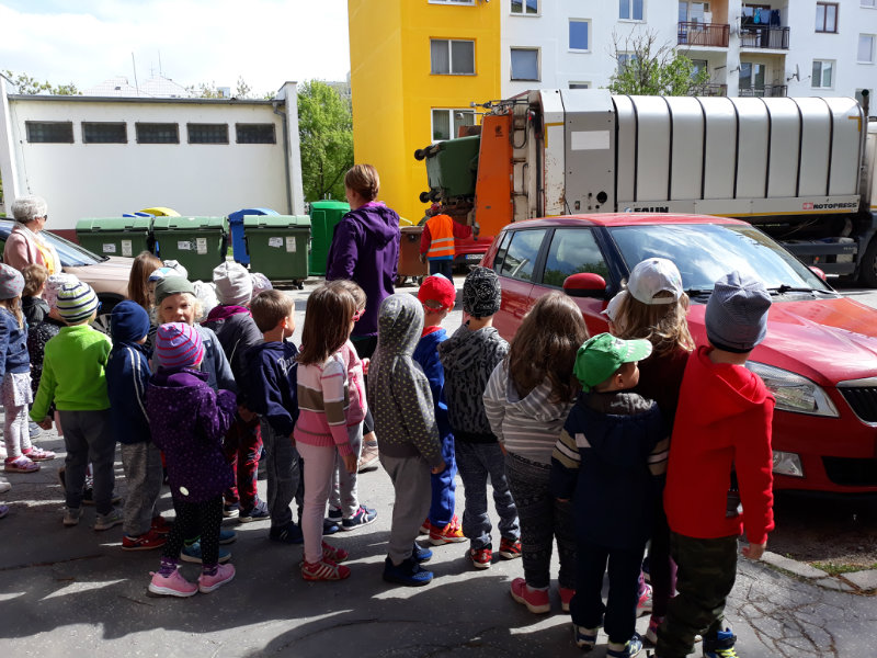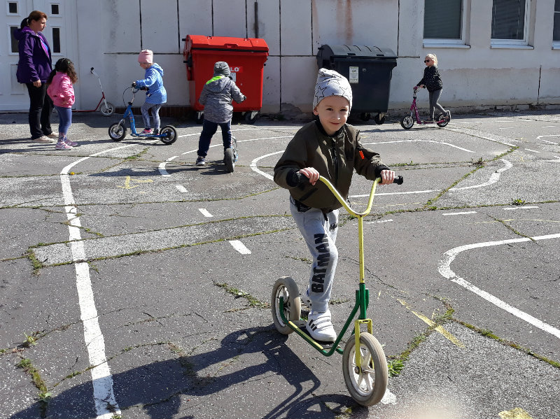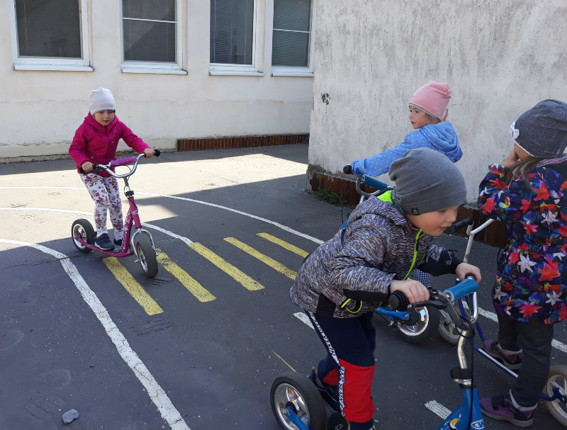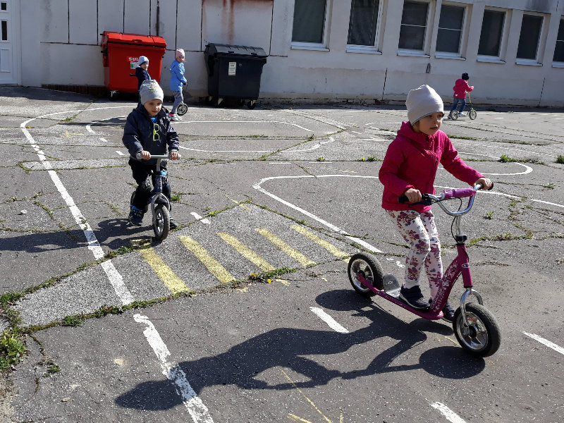 V mesiaci APRÍL sme sa s prichádzajúcou jarou zamerali na jej charakteristické znaky, na Veľkonočné zvyky - účasťou na pálení Moreny, výrobou letečka, výrobou veľkonočných vajíčok. Pri príležitosti Dňa Zeme sa hravou formou deti učili správne zaradiť odpad do kontajnerov, čo patrí a naopak nepatrí do zbernej nádoby, čo vieme z odpadov vyrobiť, na čo nám vlastne slúžia, čím sme sa usilovali viesť deti k poznaniu, že recyklácia odpadkov je dôležitým krokom ku zmenšovaniu hory odpadov okolo nás. Počas vychádzok po meste sme pozorovali krásne jarné kvety, zmeny na stromoch, život v potoku - divú kačku s malými káčatkami. Pri sadení rôznych semienok sme sa zahrali na záhradníkov. Keďže v apríli boli aj pekné slnečné dni, tie sme využili na kolobežkovanie.
