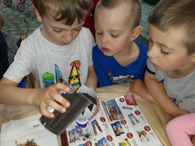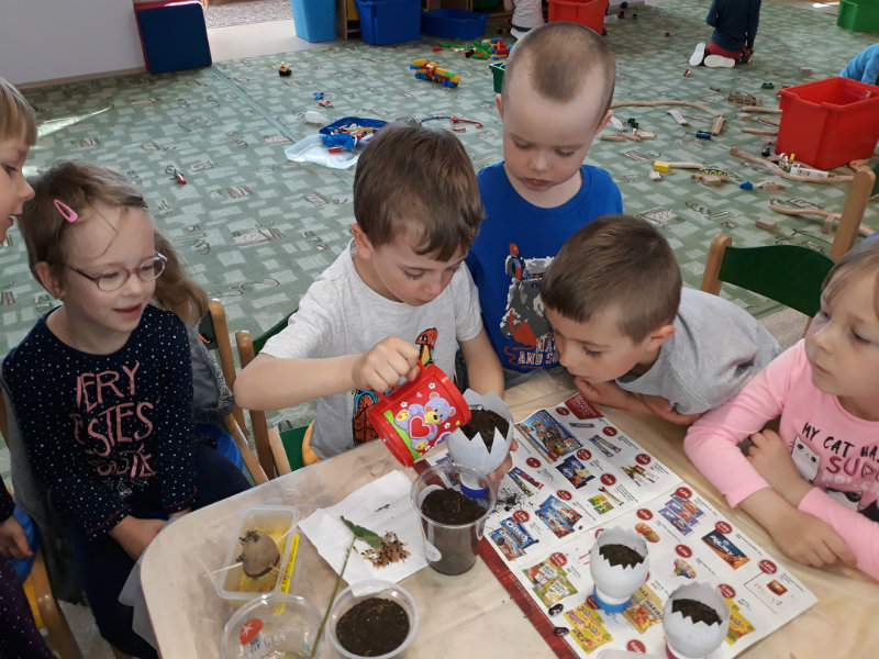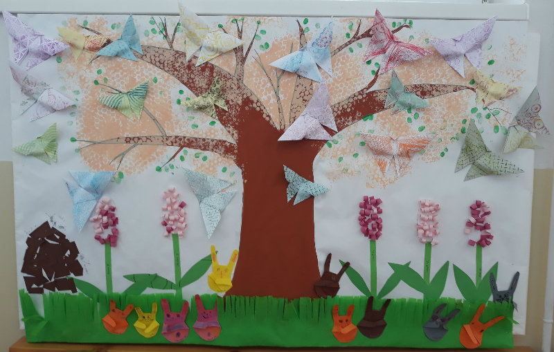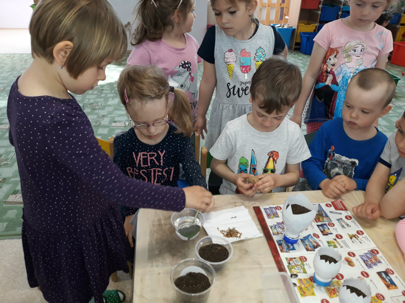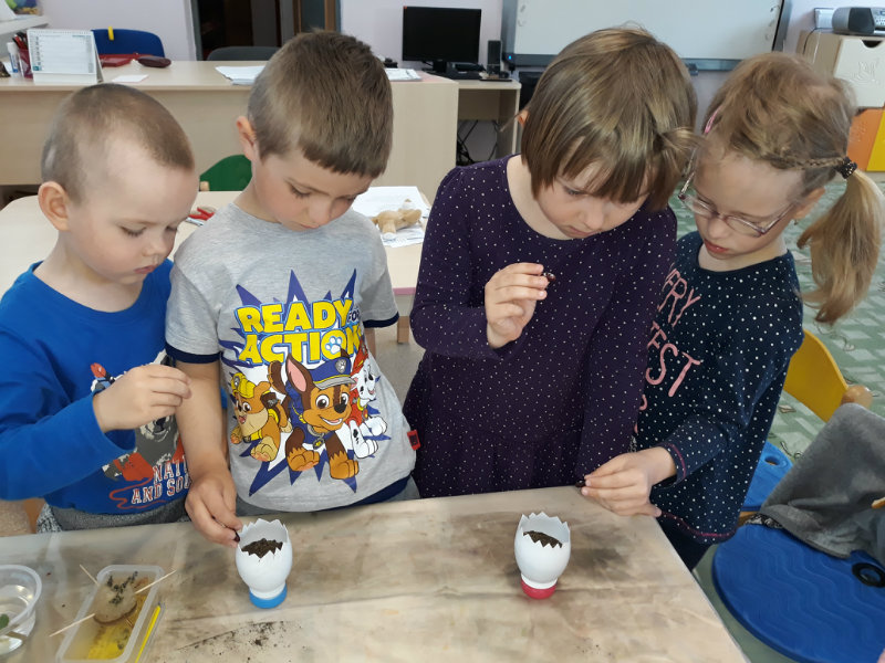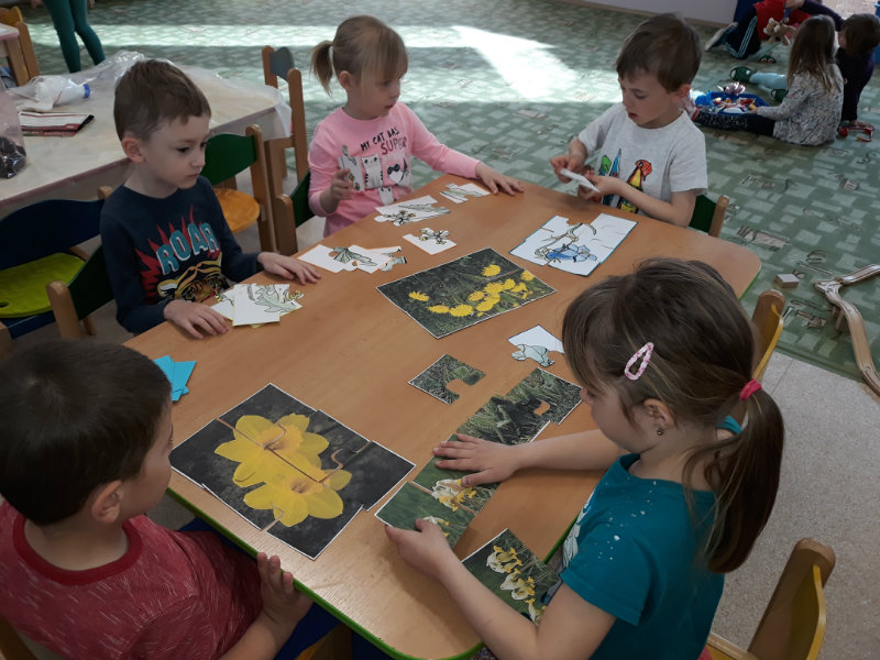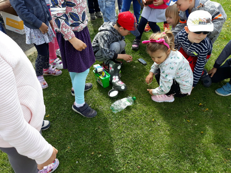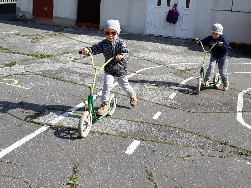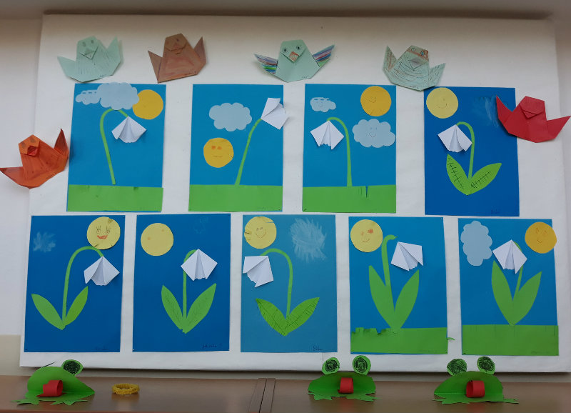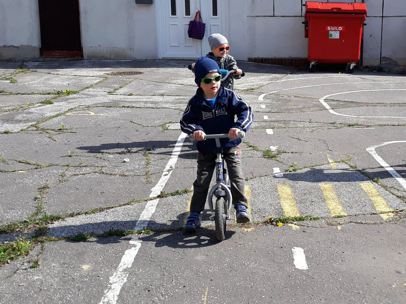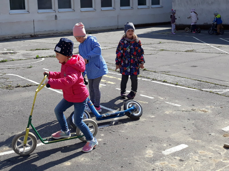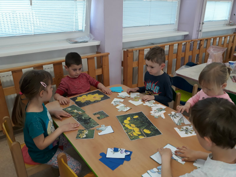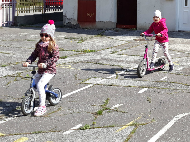V mesiaci APRÍL sme sa s prichádzajúcou jarou zamerali na jej charakteristické znaky, na Veľkonočné zvyky - účasťou na pálení Moreny, výrobou letečka, výrobou veľkonočných vajíčok. Pri príležitosti Dňa Zeme sa hravou formou deti učili správne zaradiť odpad do kontajnerov, čo patrí a naopak nepatrí do zbernej nádoby, čo vieme z odpadov vyrobiť, na čo nám vlastne slúžia, čím sme sa usilovali viesť deti k poznaniu, že recyklácia odpadkov je dôležitým krokom ku zmenšovaniu hory odpadov okolo nás. Počas vychádzok po meste sme pozorovali krásne jarné kvety, zmeny na stromoch, život v potoku - divú kačku s malými káčatkami. Pri sadení rôznych semienok sme sa zahrali na záhradníkov. Keďže v apríli boli aj pekné slnečné dni, tie sme využili na kolobežkovanie.