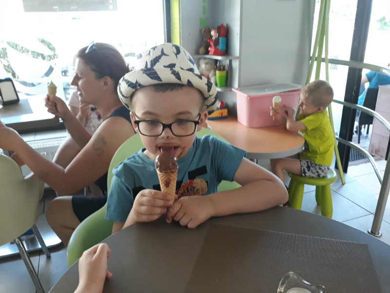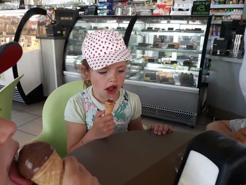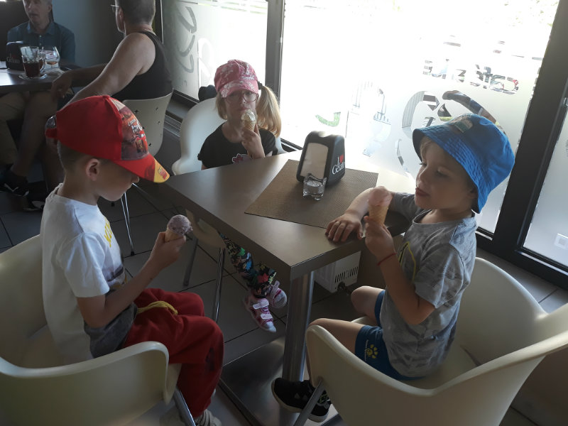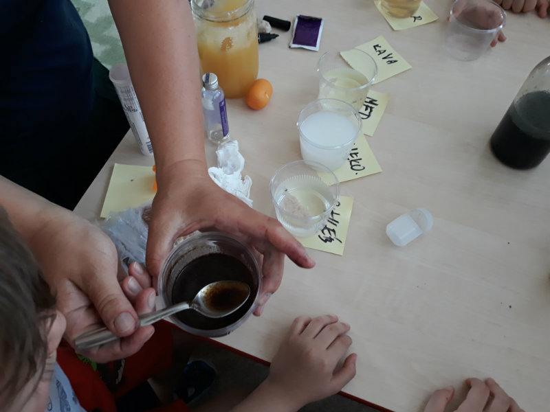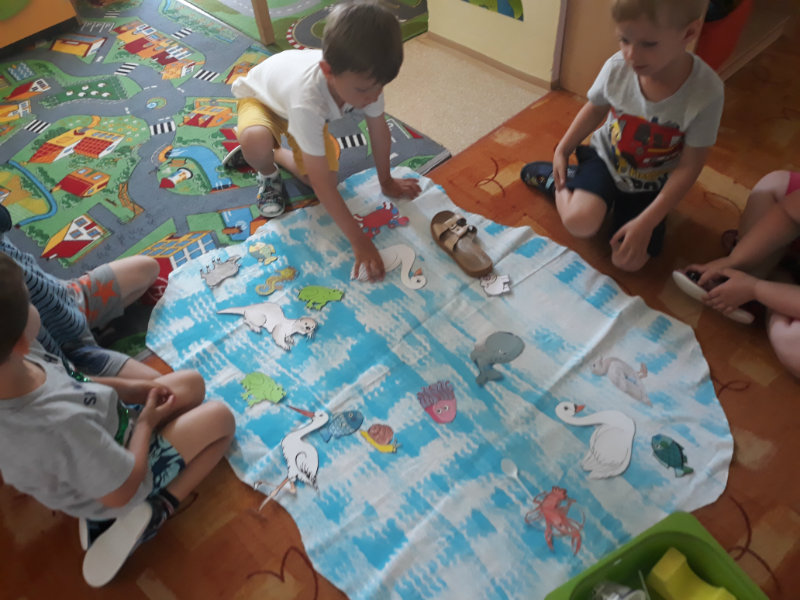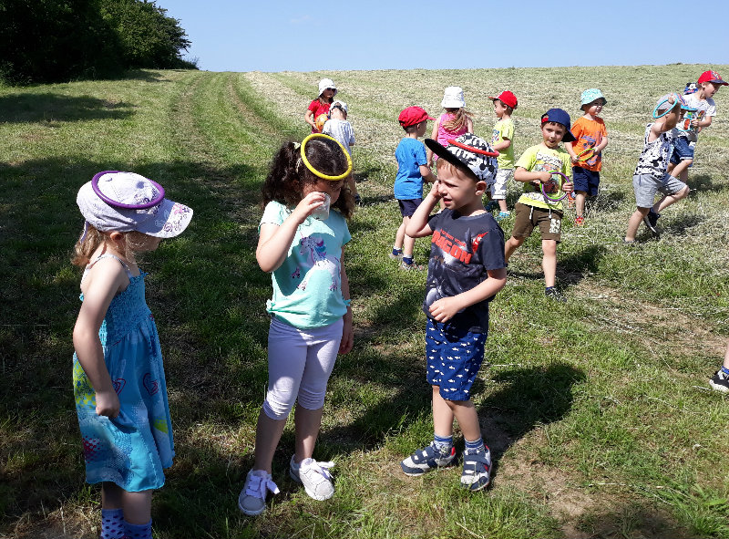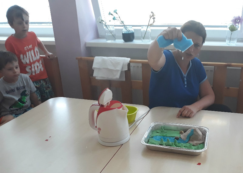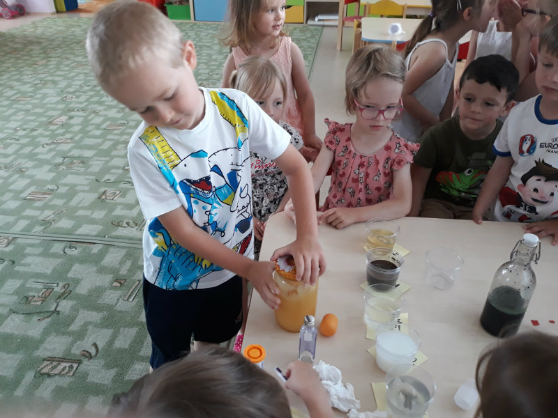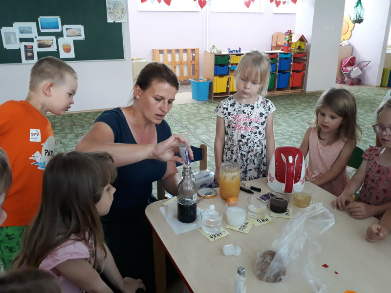 Posledný školský mesiac v roku JÚN sme začali sladkou pochúťkou. Vďaka p. J. Breštenskému si deti pri príležitosti Dňa detí vychutnali osviežujúcu zmrzlinu podľa vlastného výberu v príjemnom prostredí cukrárne. V tomto mesiaci sa počasie skutočne "predviedlo", a na zmrzlinu by sa dalo chodiť každý deň, takže téma O vode prišla práve vhod. Deti sa oboznámili o potrebe a spotrebe vody pre človeka, ako aj pre ostatnú prírodu. Prostredníctvom motivovaného príbehu "O Aničke Priesvitnej", pokusom s vyparovaním vody a piesňou Ako vznikajú mraky deti pochopili podstatu kolobehu vody, že voda je v oblakoch a v podobe dažďa padá na zem. Rozprávali sme si o premenách a úžitku vody. Skúmali a overovali, čo sa vode rozpustí, že rastliny pijú - nasávajú vodu korienkami, čím sme túto tému uzavreli myšlienkou - VODU POTREBUJÚ VŠETCI. Na turistickej vychádzke v blízkej prírode sme sa tiež museli osviežiť vodičkou, pretože nám slniečko doprialo pekné teplé počasie.