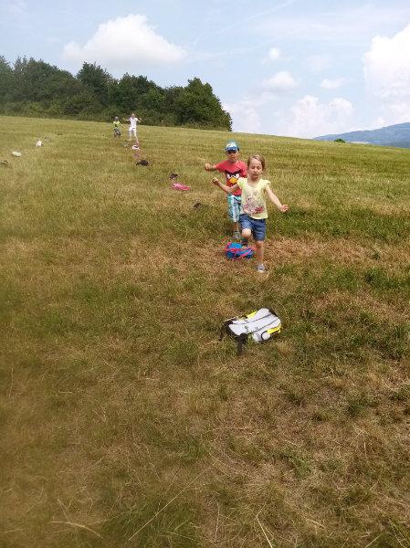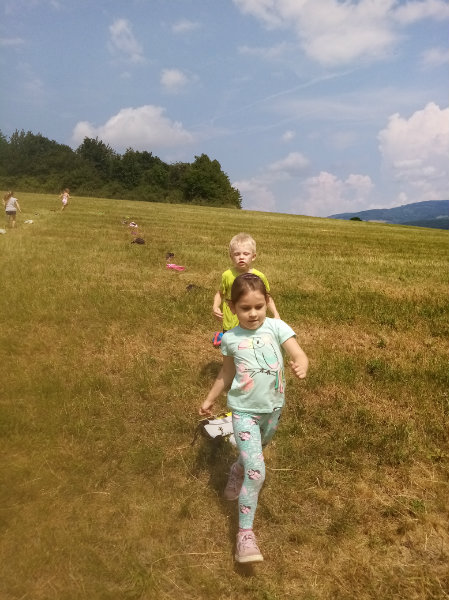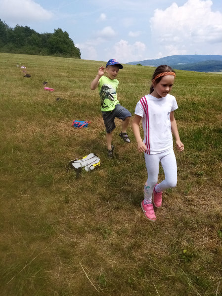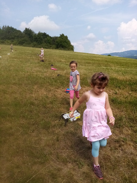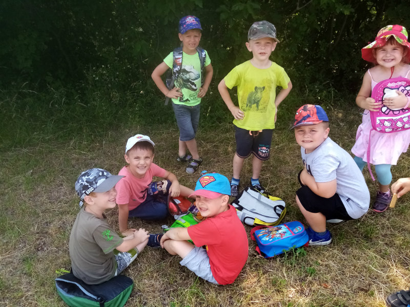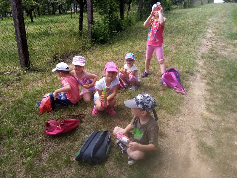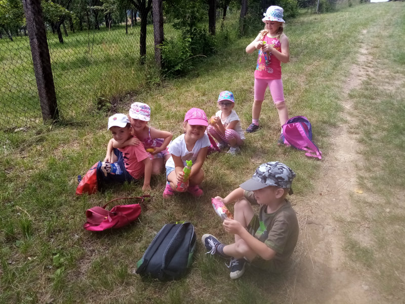V stredu, 19.6. nám slniečko krásne hrialo a vylákalo nás na turistickú vychádzku. Vyšli sme na Drahy. Tu sme súťažili, pretekali, hrali sa a samozrejme sme nezabudli posilniť sladkosťami, ktoré nám zabalili naše mamičky. Bolo nám vynikajúco, ale museli sme sa vrátiť do MŠ, kde na nás už čakal obed.