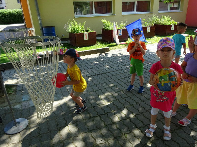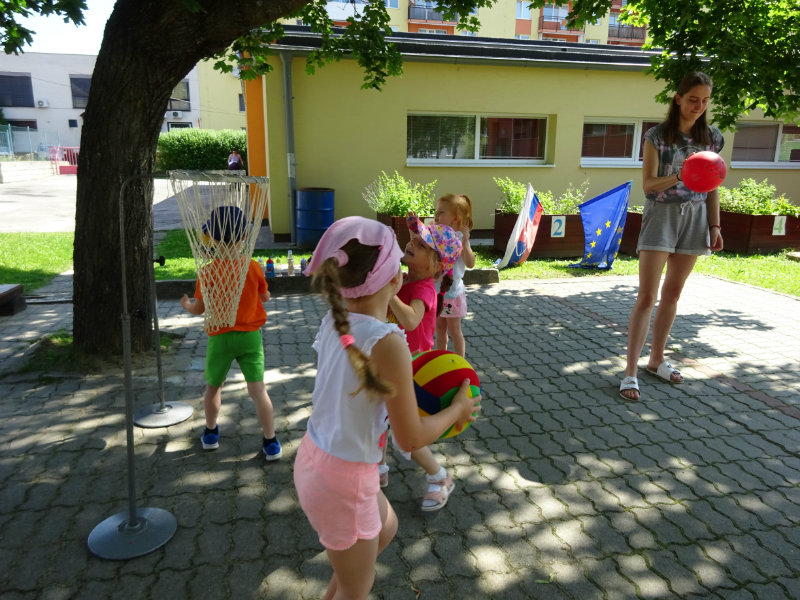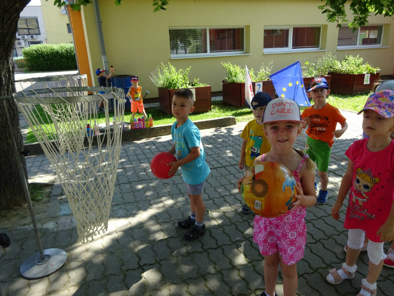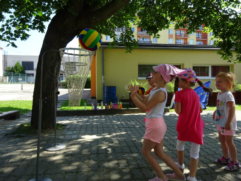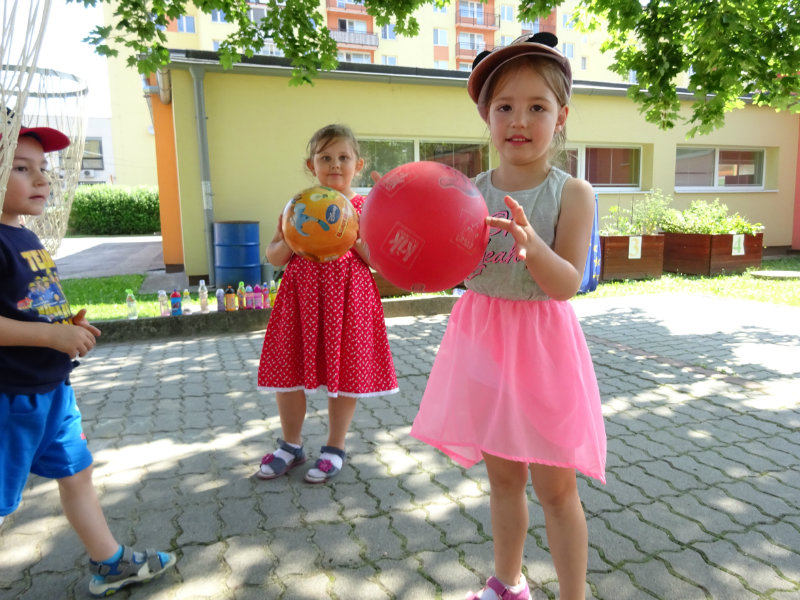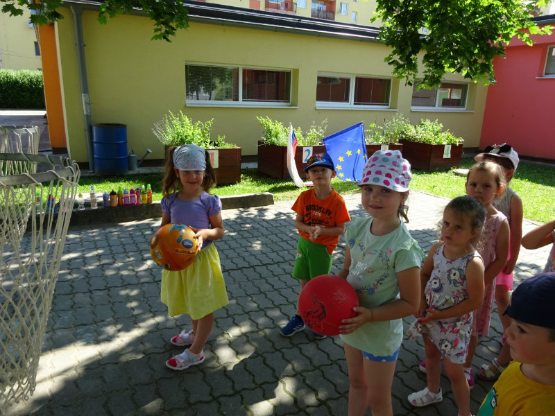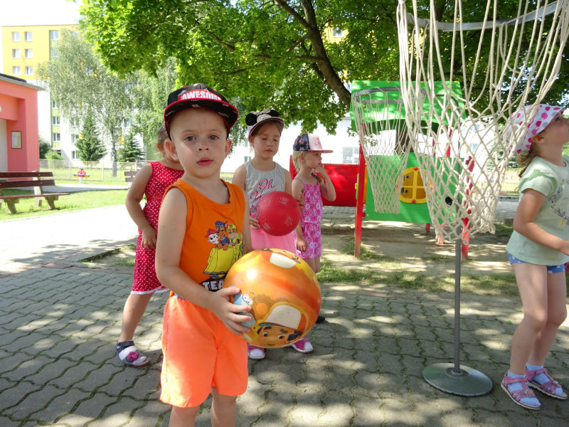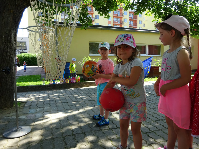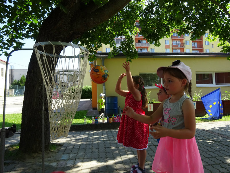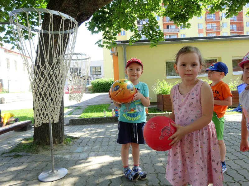 Dnešný rozžiarený deň, 25.6., sme si spestrili športom. Stali sa z nás na chvíľku "svetoví basketbalisti" pod vedením trénerky Táničky. Podujatie sa nám veľmi páčilo.