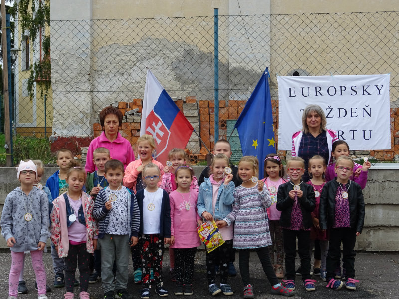 V piatok, 27.septembra, sme si v Materskej škole pri cukrárni v rámci TÝŽDŇA EURÓPSKEHO ŠPORTU urobili Malú olympiádu. Všetci sme súťažili v siedmich olympijských disciplínach. Športové dopoludnie sa naozaj vydarilo. Boli sme šťastne unavení zo súťaženia, ale šťastní tiež i z odmien, ktoré sme dostali vo forme olympijskej medajly a sladkostí.