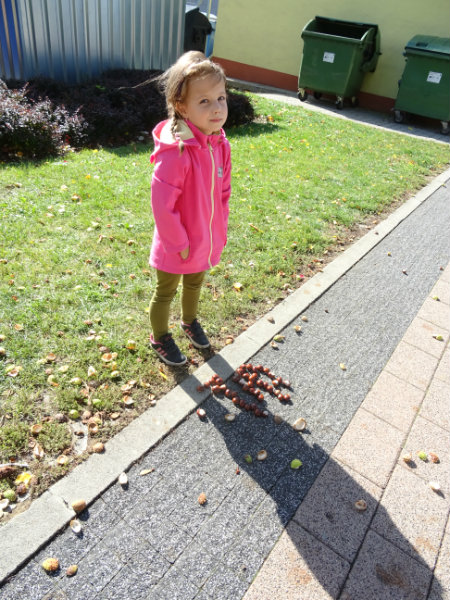 Jesenný vietor nám pripravil v pondelok, 30.septembra príjemné prekvapenie a zasypal námestie gaštanmi. Využili sme príležitosť a vytvorili sme si gaštanové obrázky. Práce sa nám vydarili, posúďte sami...