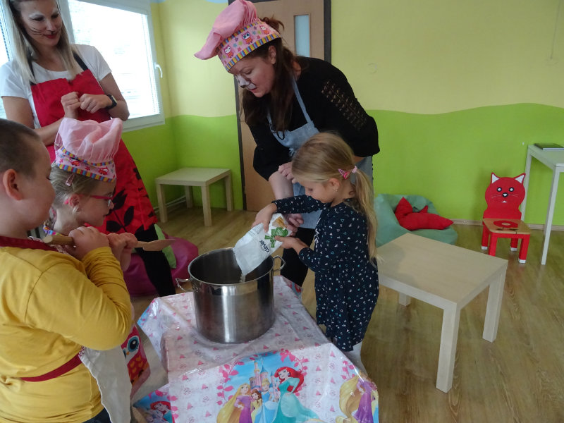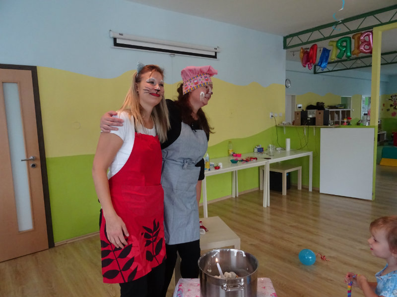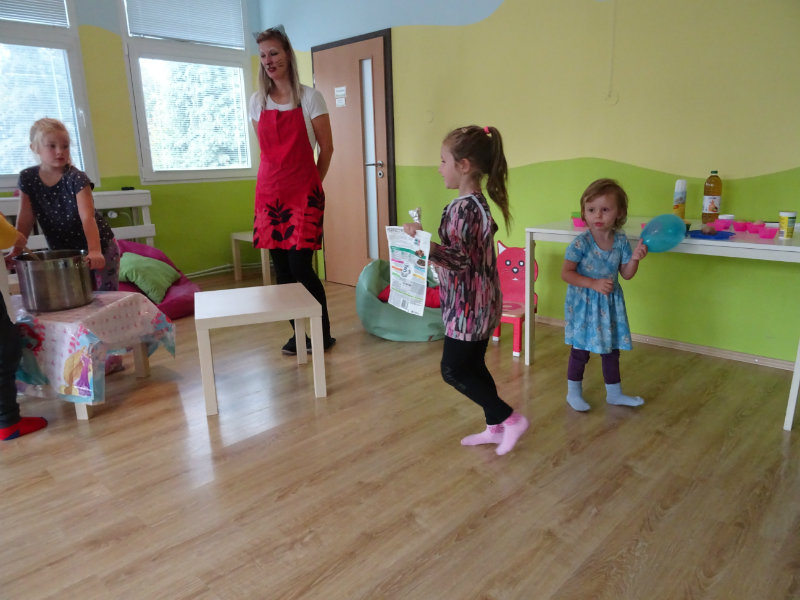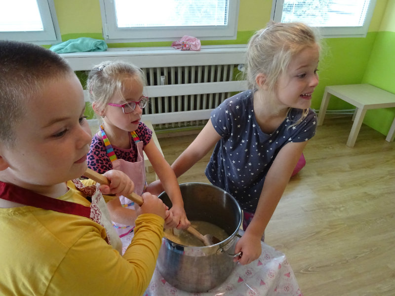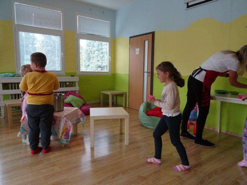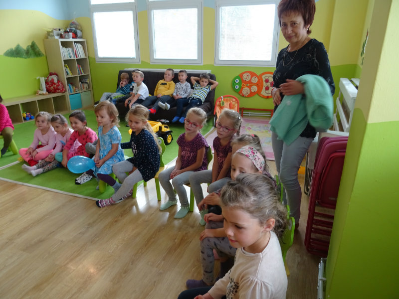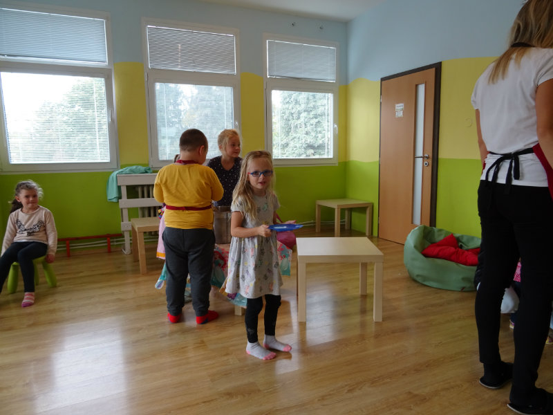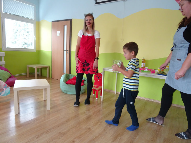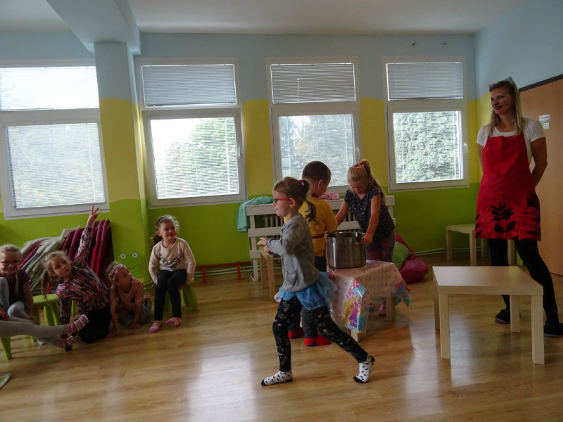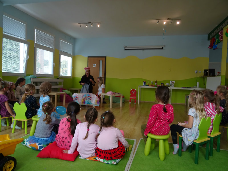 Vo štvrtok, 3.septembra, nás pozvali mamičky do materského centra Žabka. Pripravili si pre nás zaujímavé divadielko o psíčkovi a mačičke, v ktorom sme vystupovali i my. Spoznávali sme suroviny na výrobu torty a varili smeju pre psíčka a mačičku. Potom sme tvorili svietniky s jesennou tematikou a ježkov z listov. Ďakujeme p. Kandríkovej a Kýškovej za prekrásne dopoludnie.