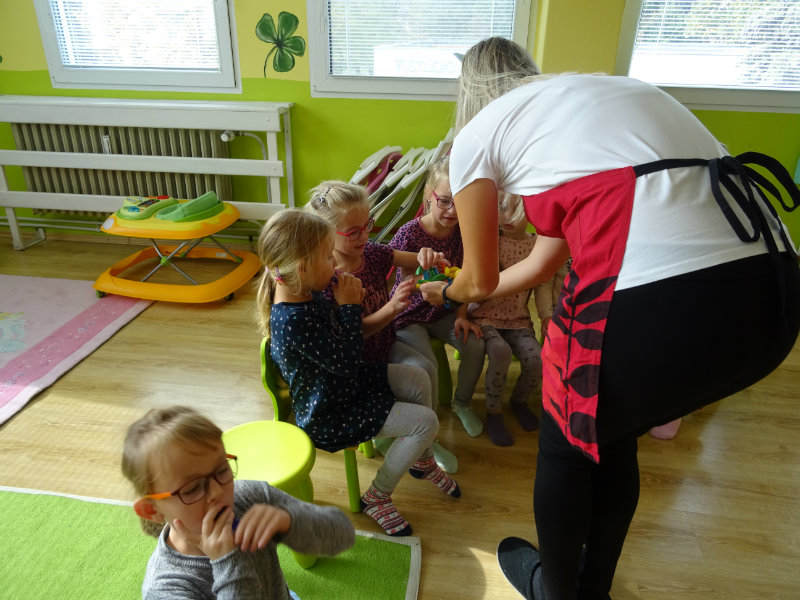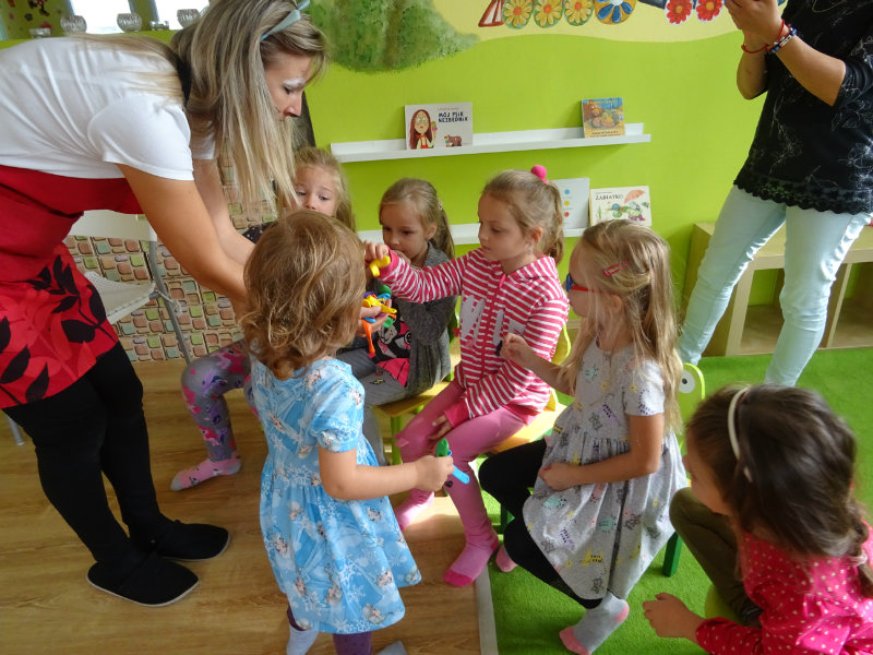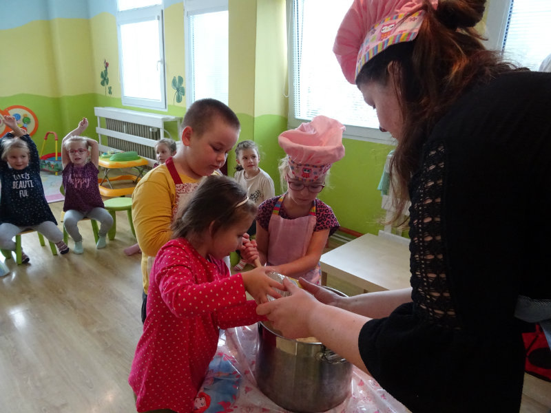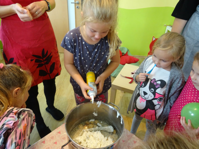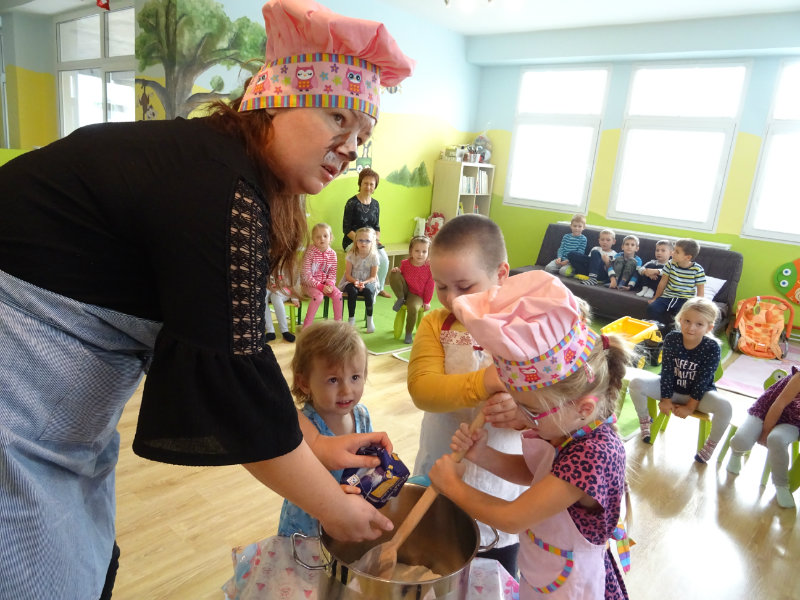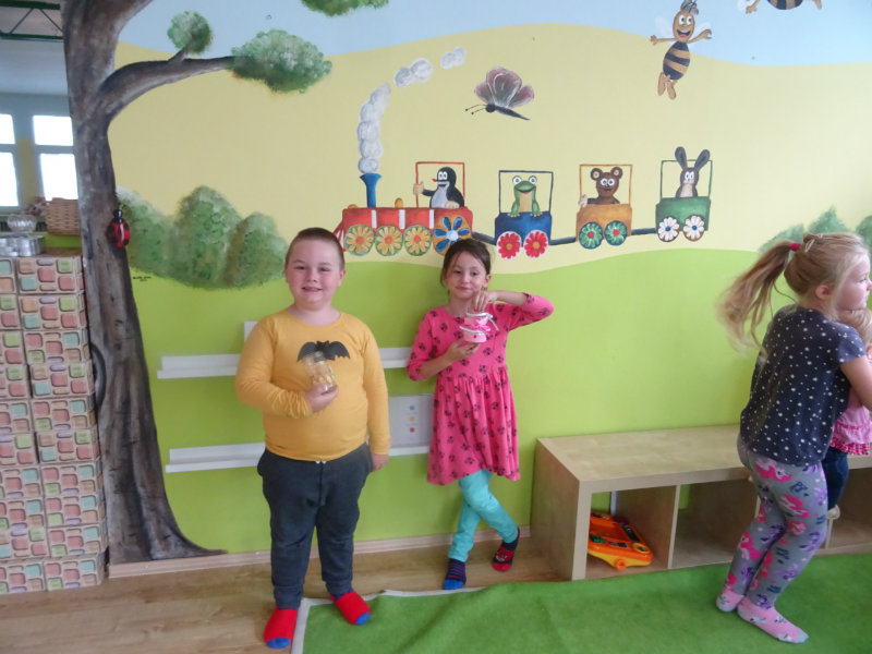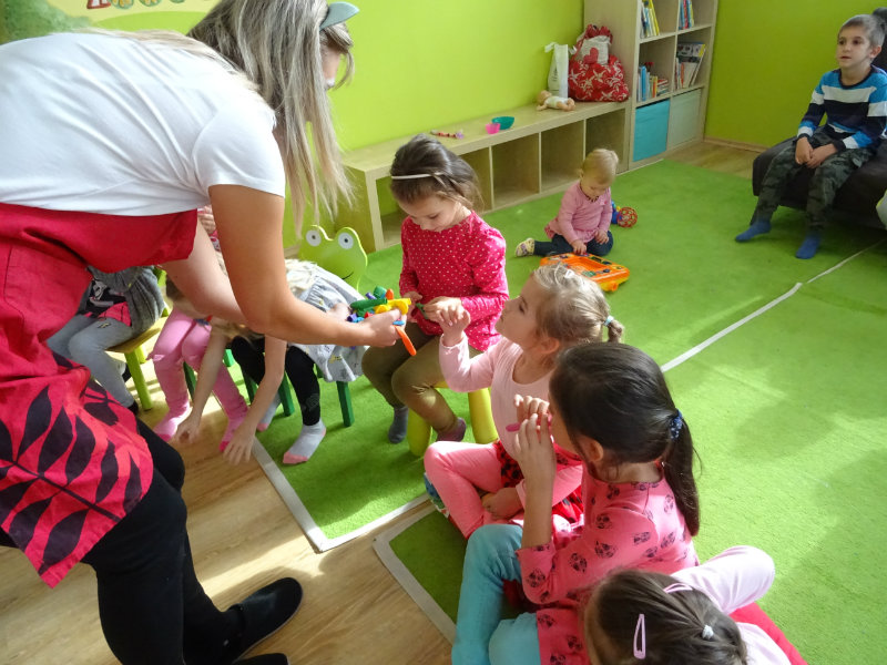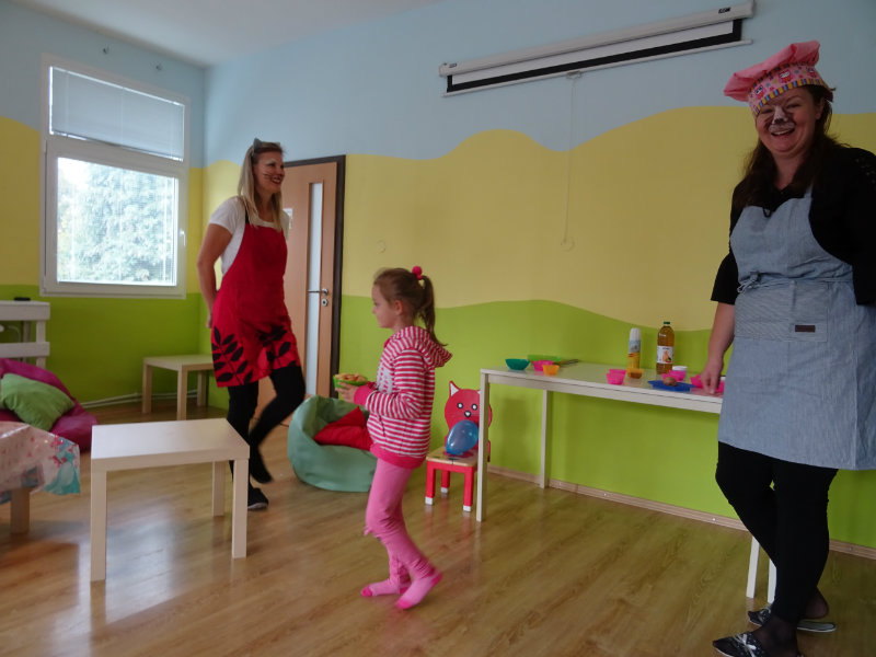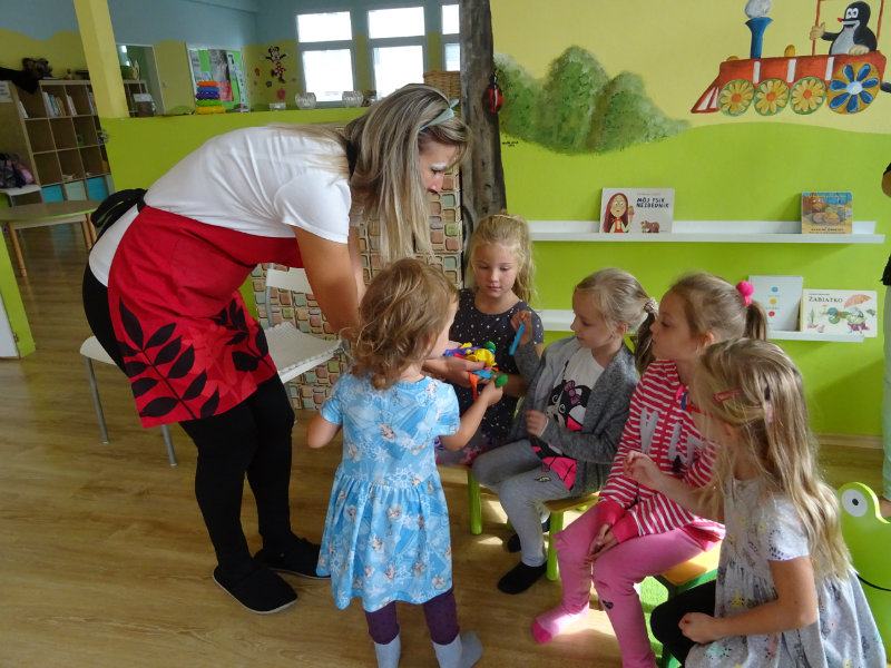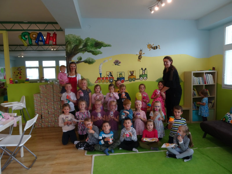 Vo štvrtok, 3.septembra, nás pozvali mamičky do materského centra Žabka. Pripravili si pre nás zaujímavé divadielko o psíčkovi a mačičke, v ktorom sme vystupovali i my. Spoznávali sme suroviny na výrobu torty a varili smeju pre psíčka a mačičku. Potom sme tvorili svietniky s jesennou tematikou a ježkov z listov. Ďakujeme p. Kandríkovej a Kýškovej za prekrásne dopoludnie.