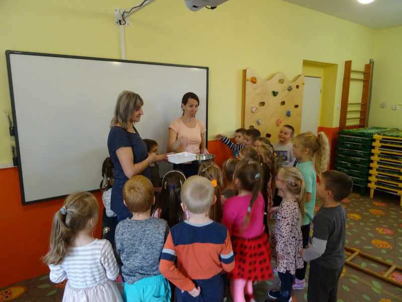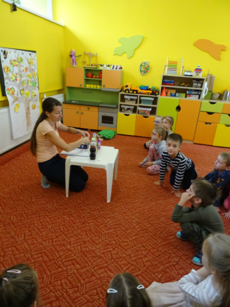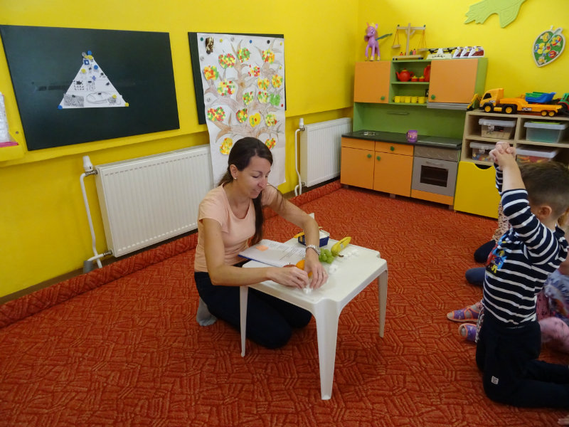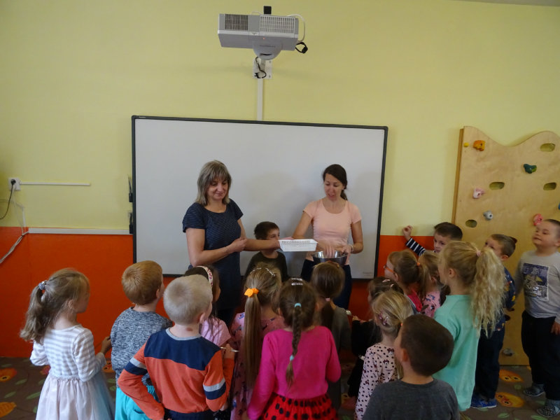 V piatok, 18.9.,sa otvorili dvere 3. triedy a dnu vstúpila mamička dvojičiek Alicky a Evičky, teta Pechová. Pripravila si pre nás veľa zaujímavostí o ovocí, zelenine. Cukor, potrebný pre náš organizmus, i ten nepotrebný, nám starostlivo ukázala v množstve, obsiahnutom v nápojoch i ovocí. Samozrejme, že pre náš organizmus je potrebný a zdravý i pohyb, spoločne sme si zacvičili a prenášali kocky cukru v lyžičke na určené miesto so zdolávaním prekážok. Na záver sme tete Pechovej zatancovali a zaspievali peknú pieseň o zeleninke. Ďakujeme tete Pechovej za zaujímavé a poučné dopoludnie.